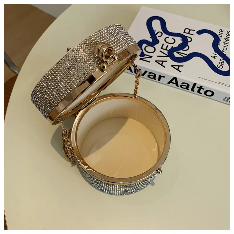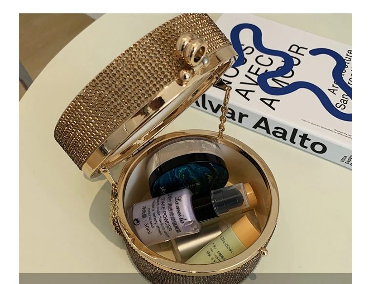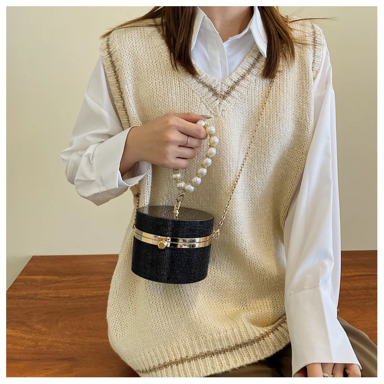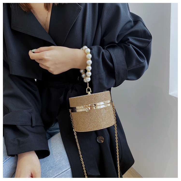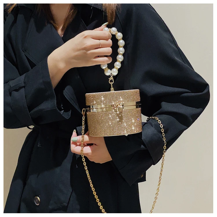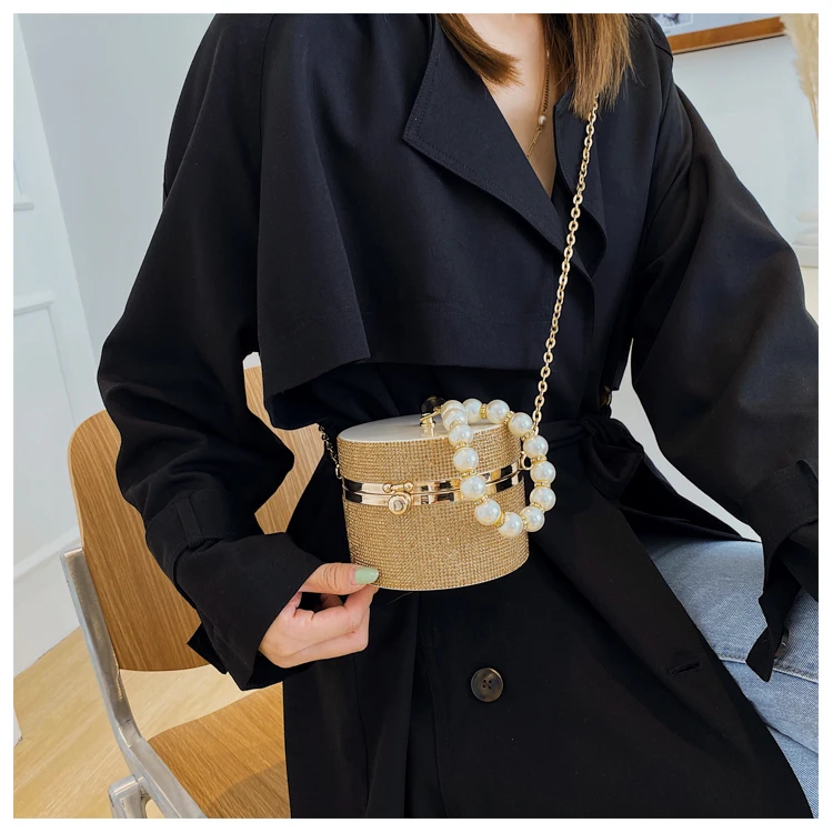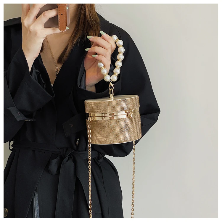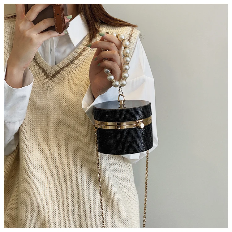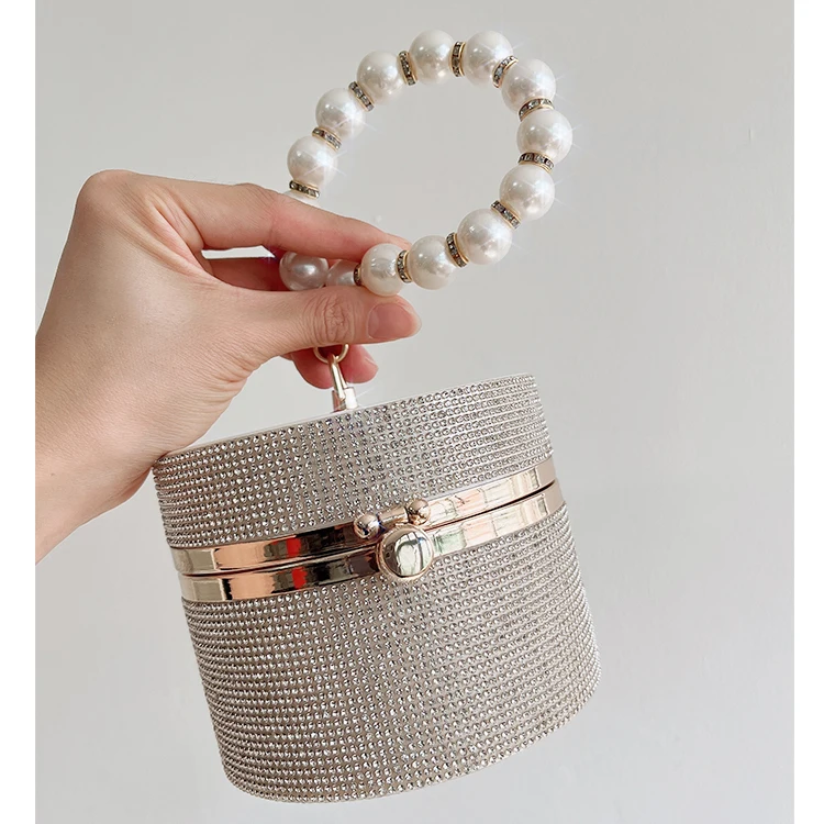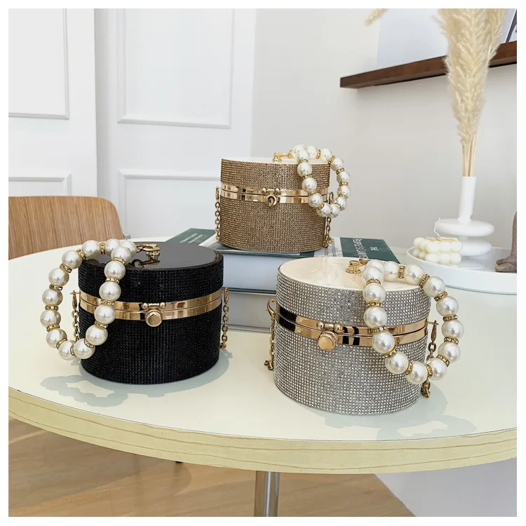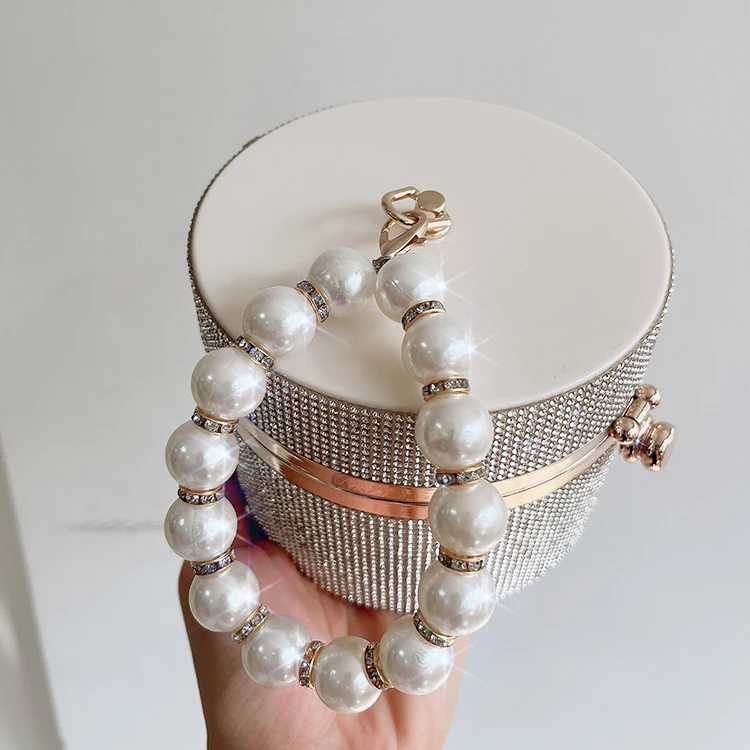 Diamond Acrylic Round Party Clutch Evening Bag for Women Pearl Handles Female Purses and Handbags Small Shoulder Crossbody Bag