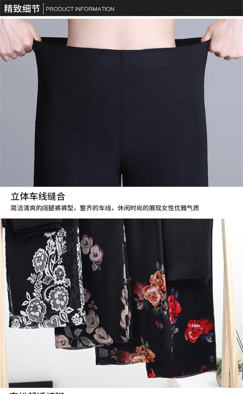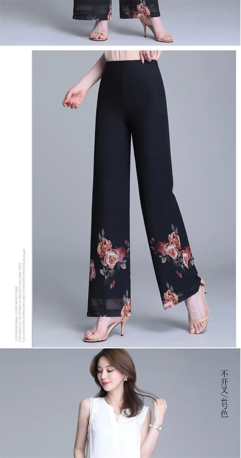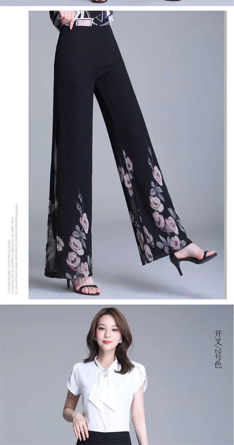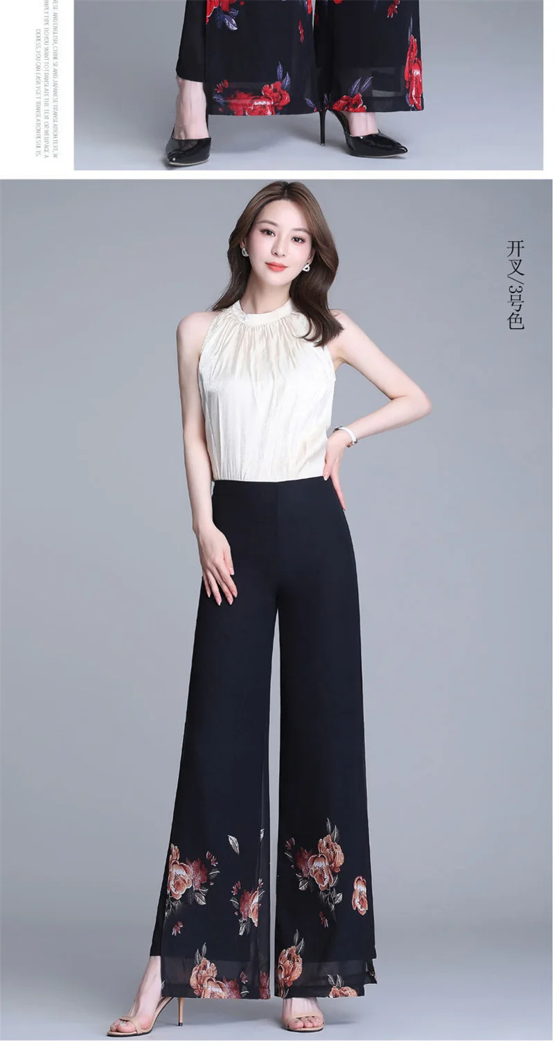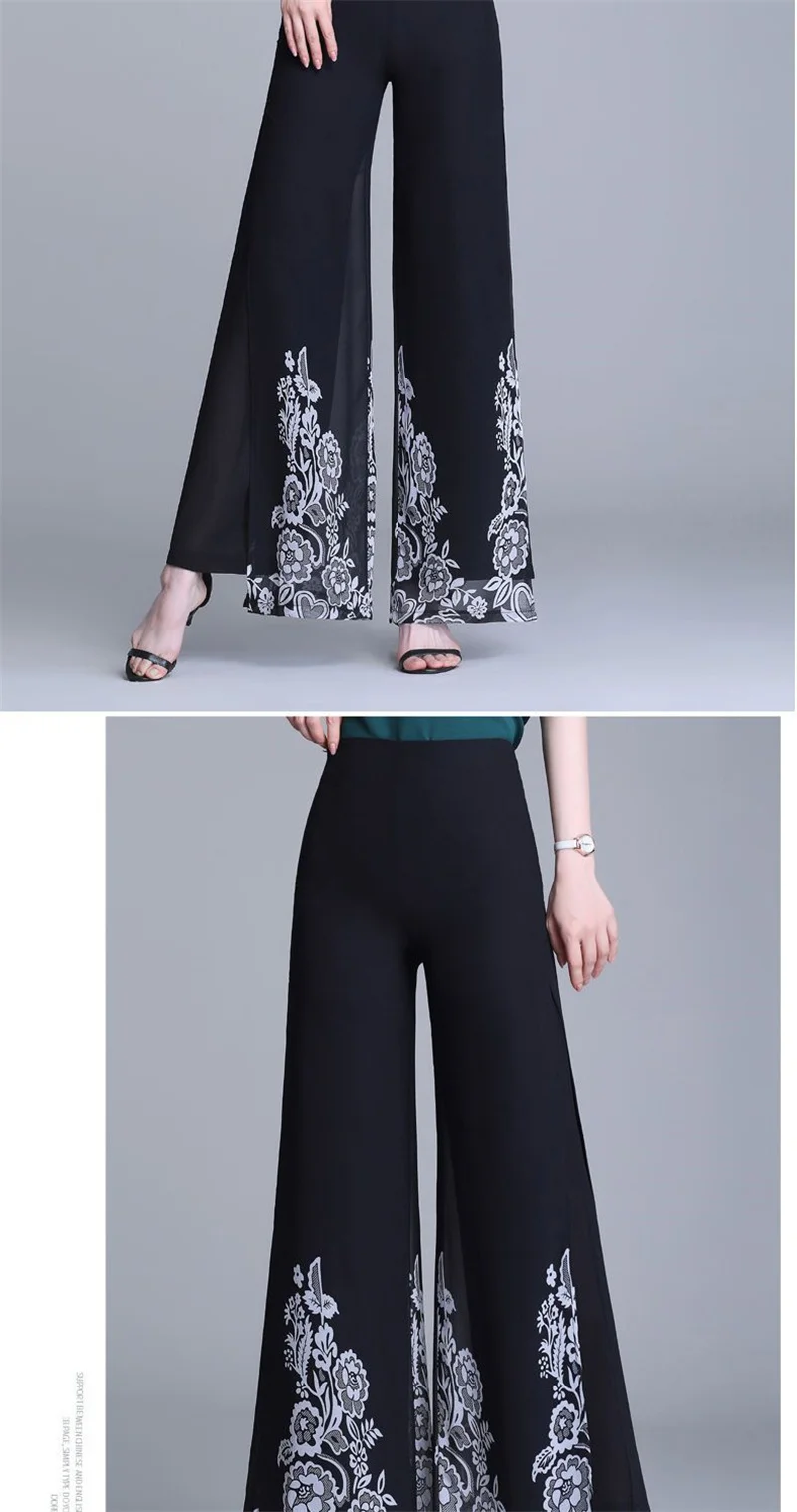 Double Layer Printed Chiffon Wide Leg Pants For Women's Summer New High Waisted Loose Dance Swing Pants Drooping Skirt Pants LA