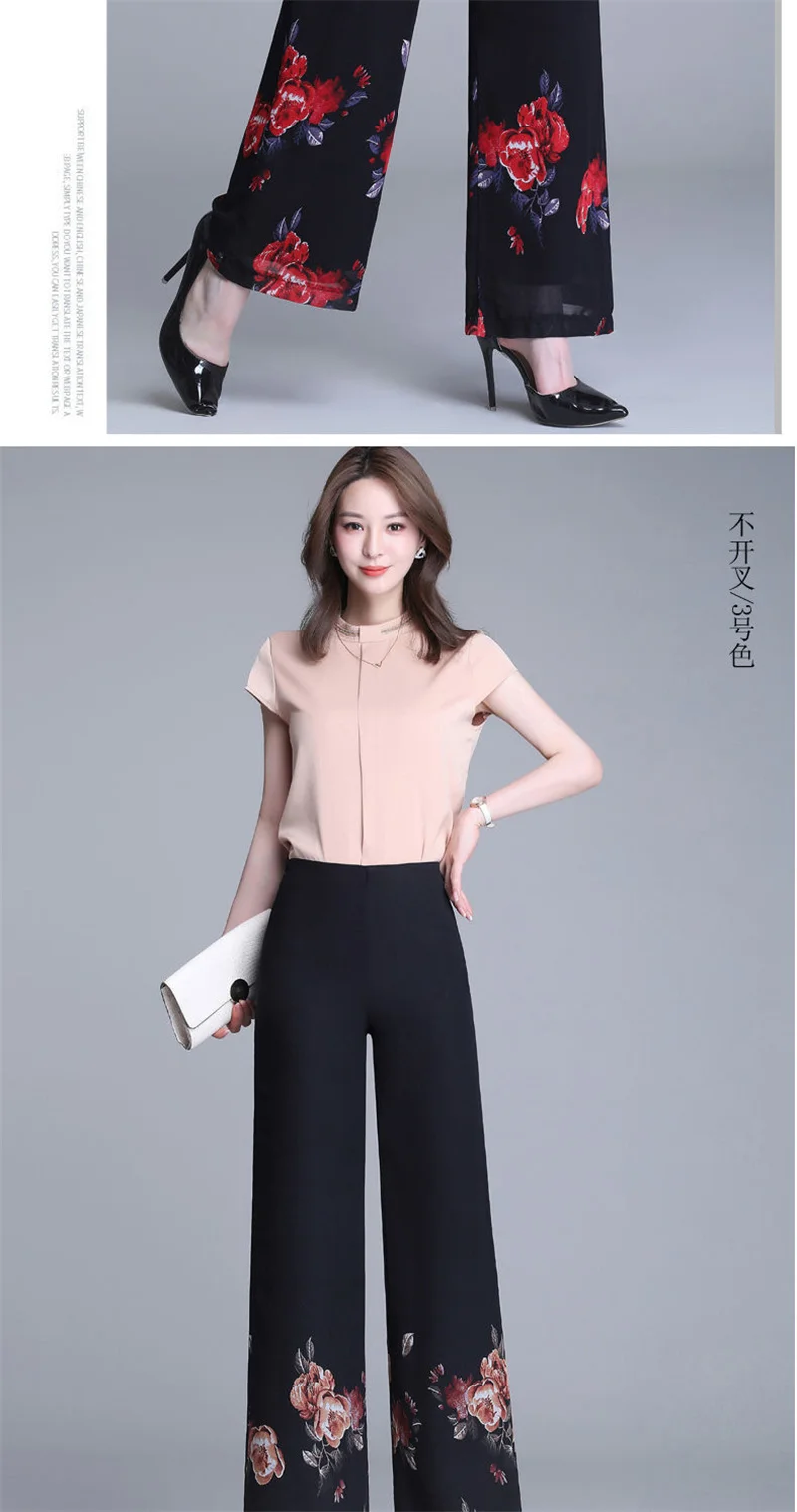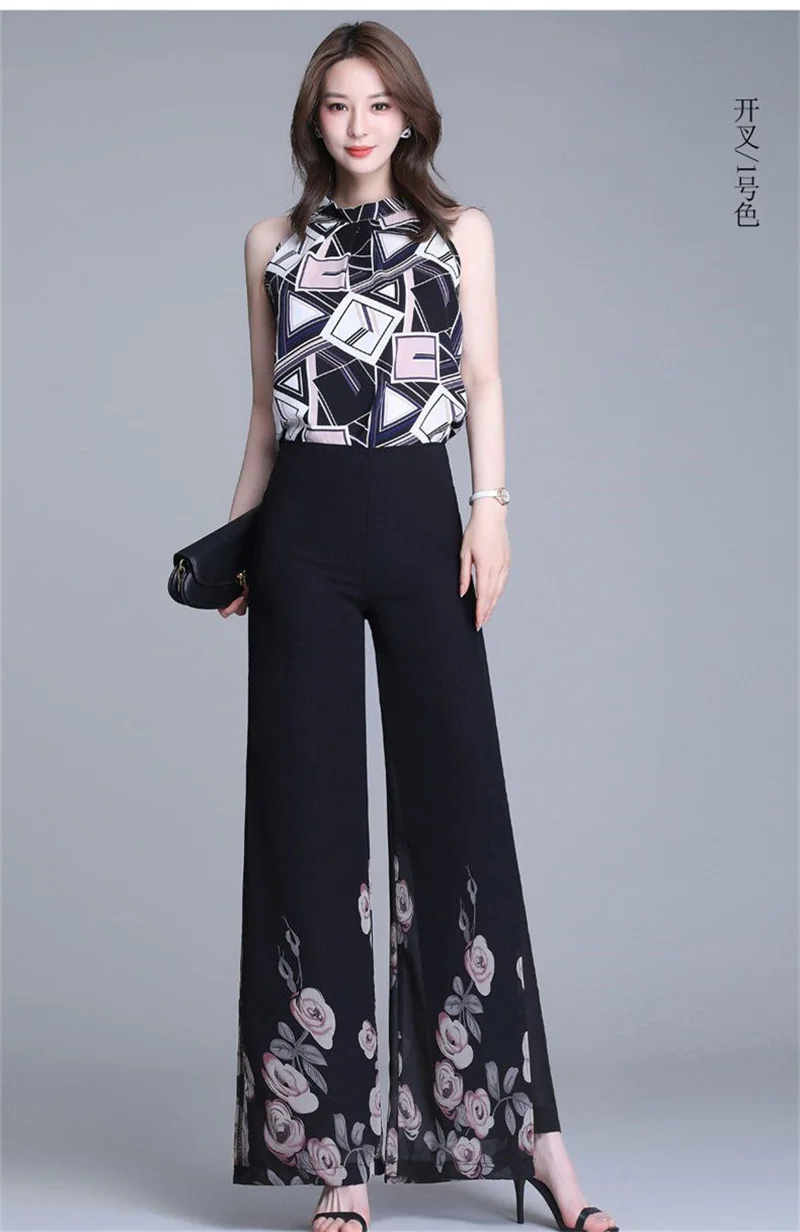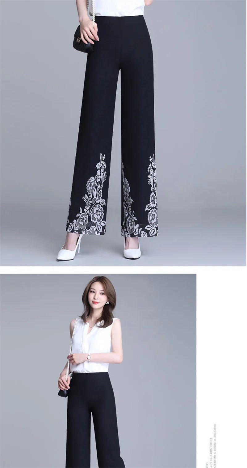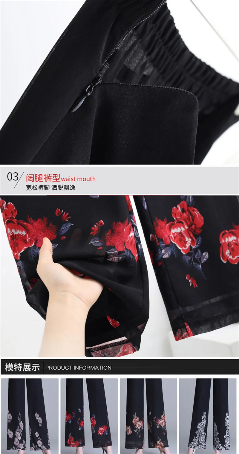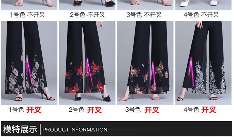 Double Layer Printed Chiffon Wide Leg Pants For Women's Summer New High Waisted Loose Dance Swing Pants Drooping Skirt Pants LA