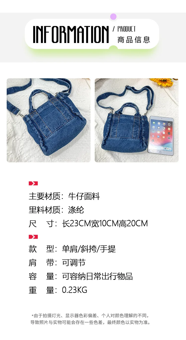 Drop Shipping bolsa feminina Denim Purse Blue Women Small Denim Tote Bag Jean Purses and Handbags for Teen Girls Women