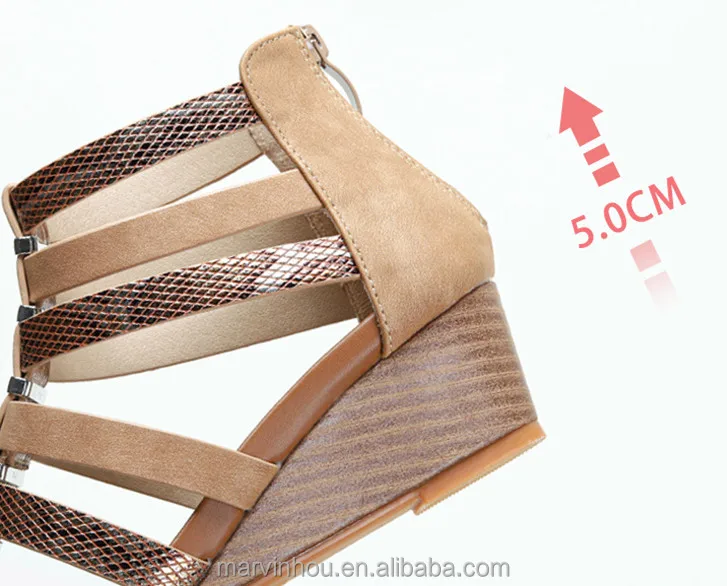 Dropshipping Custom Logo Women's Summer Roman Sandals Wedge Heel Breathable High-Top Zipper Design High Platform Shoes