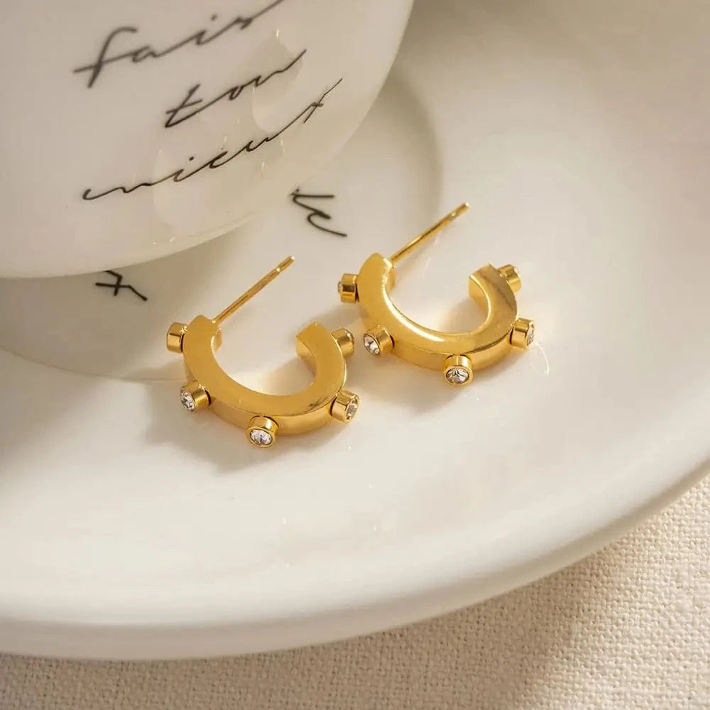 E2168 New Arrival 18K Gold Stainless Steel Metal Geometric Stone Earrings for Girls Women