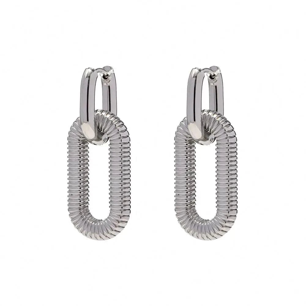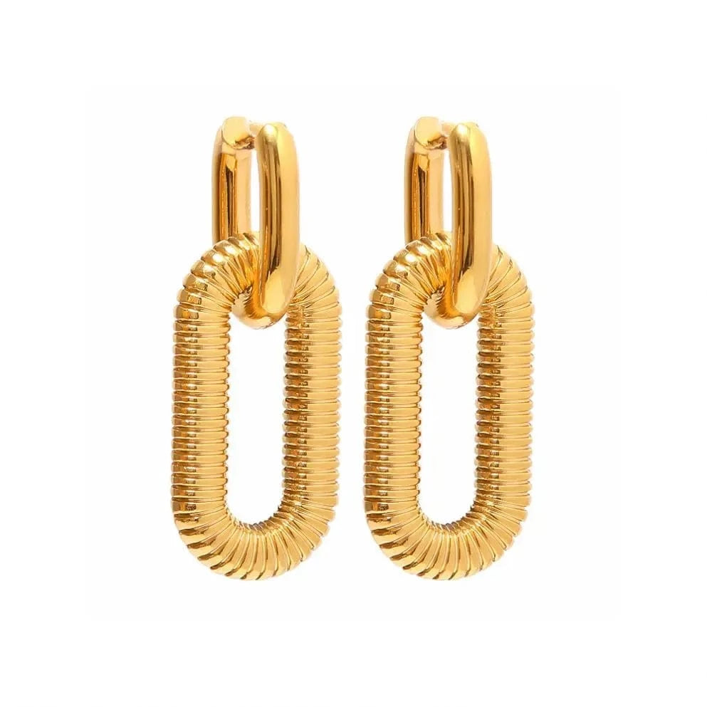 E2207 Exaggerated Chain Pendant Earring Geometric 18K Stainless Steel Gold Plated Double Hoop Earrings