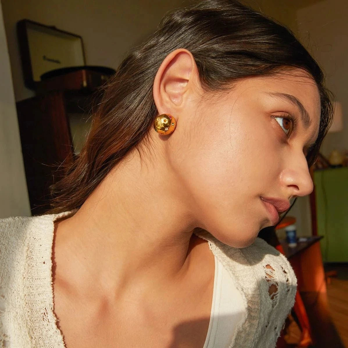 E2984 Gold Silver Plated Ball Earrings Elegant Stainless Steel Stud Earring for Women Fashion Jewelry