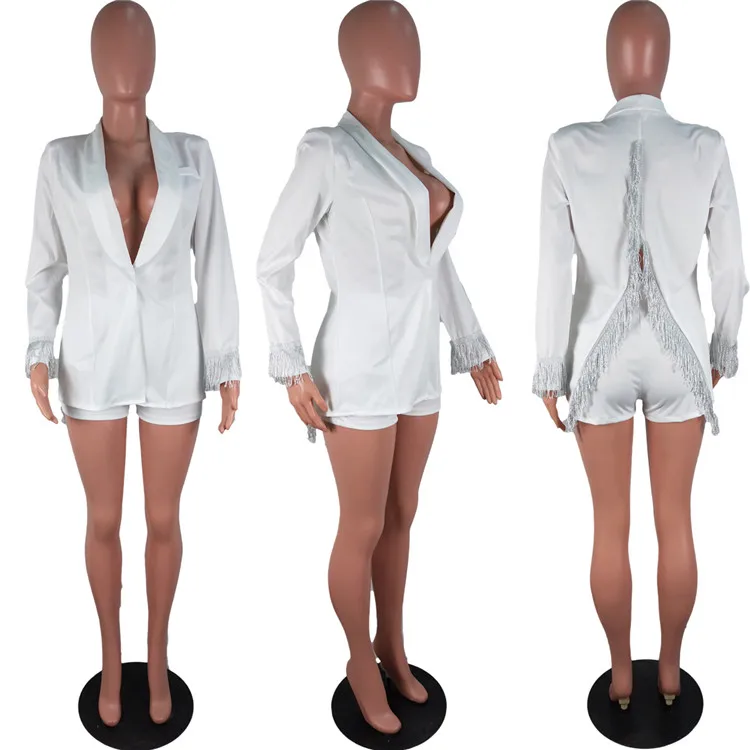 New Arrival Ladies 2 Piece Suit Long Sleeve Tassels Autumn Women Clothing Two Piece Shorts Set