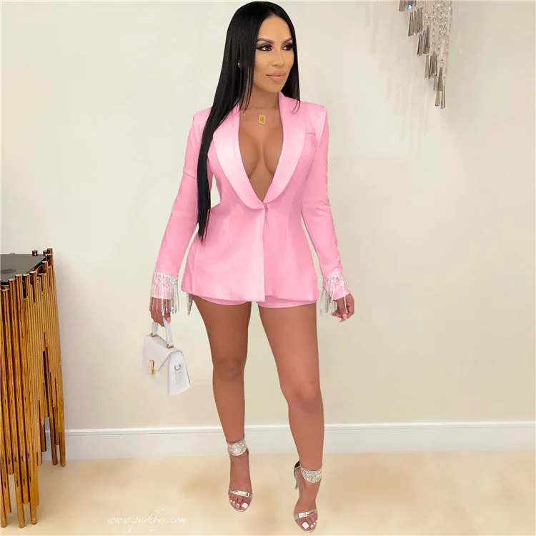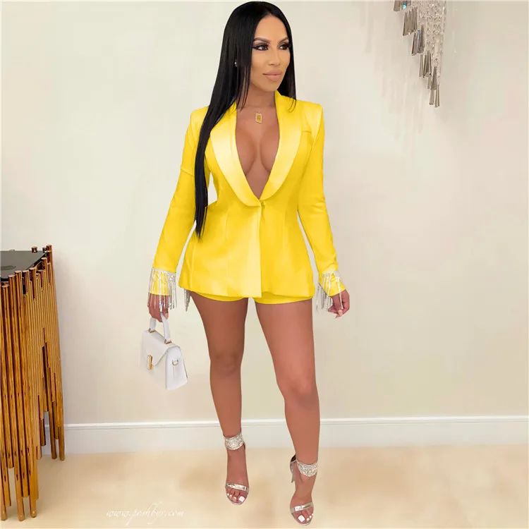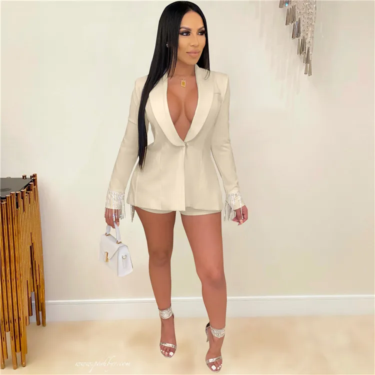 EB-2023 new082504 New Arrival Ladies 2 Piece Suit Long Sleeve Tassels Autumn Women Clothing Two Piece Shorts Set