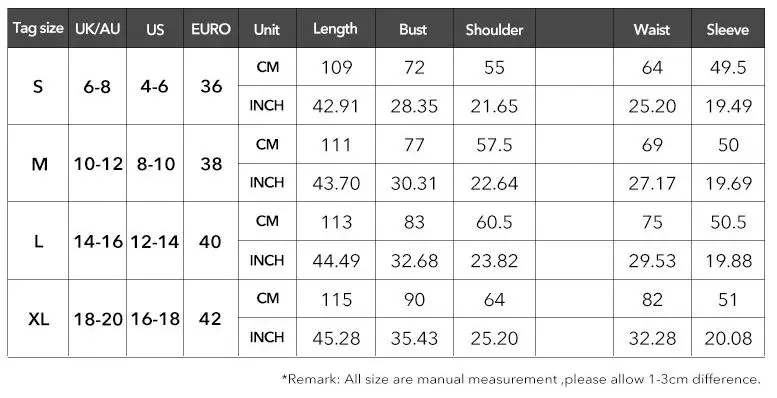 2.Choose the right size according to your own measurements combined with our size chart. Attention:Due to the effect of different monitors and cameras, the goods may look a little bit different from pictures shown online.