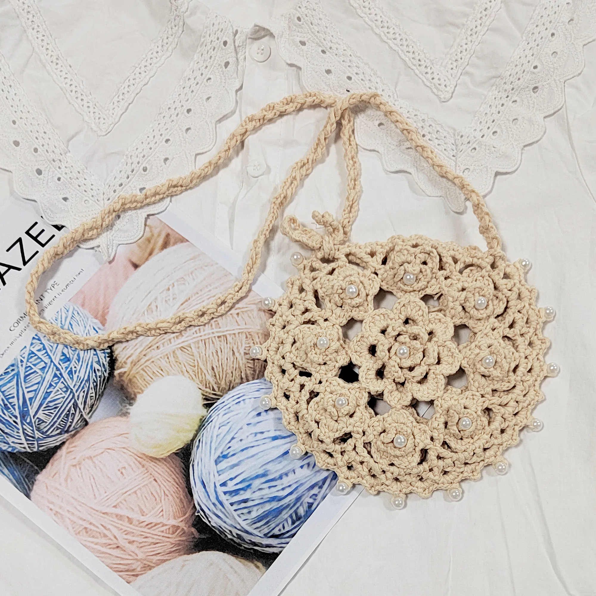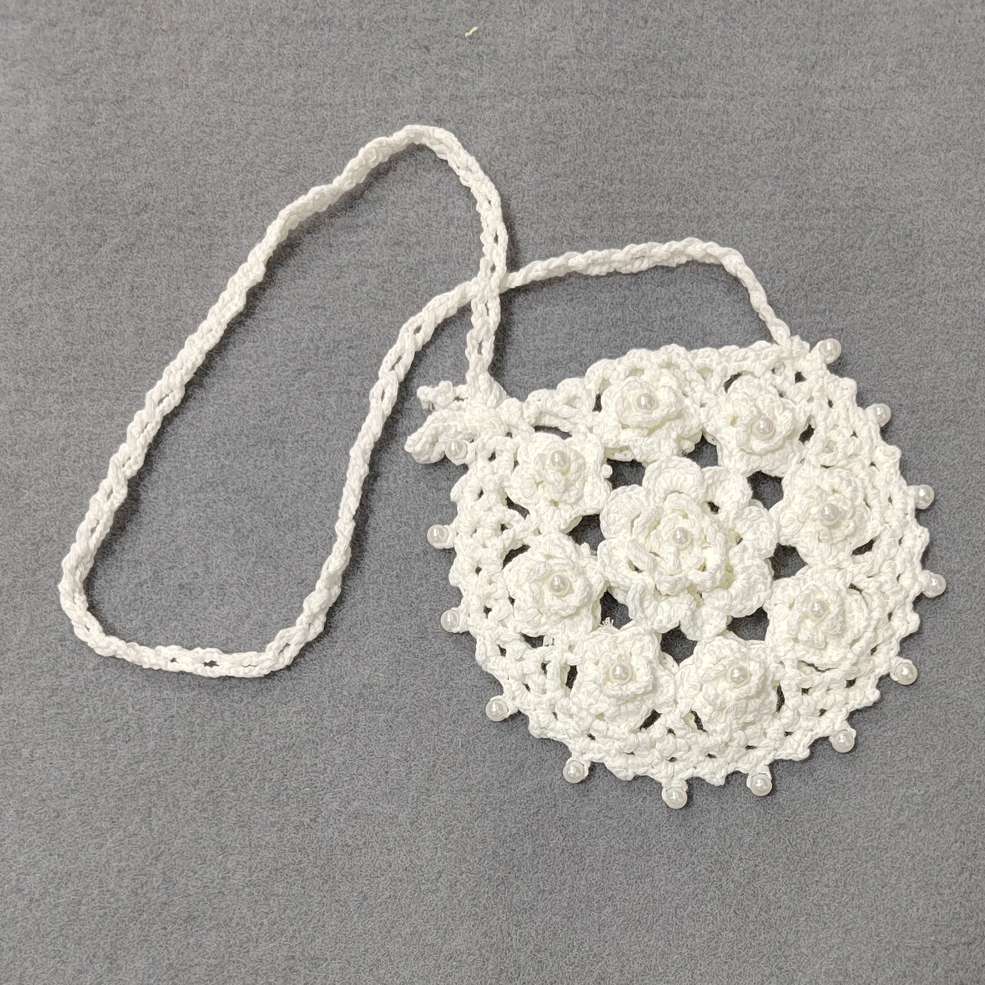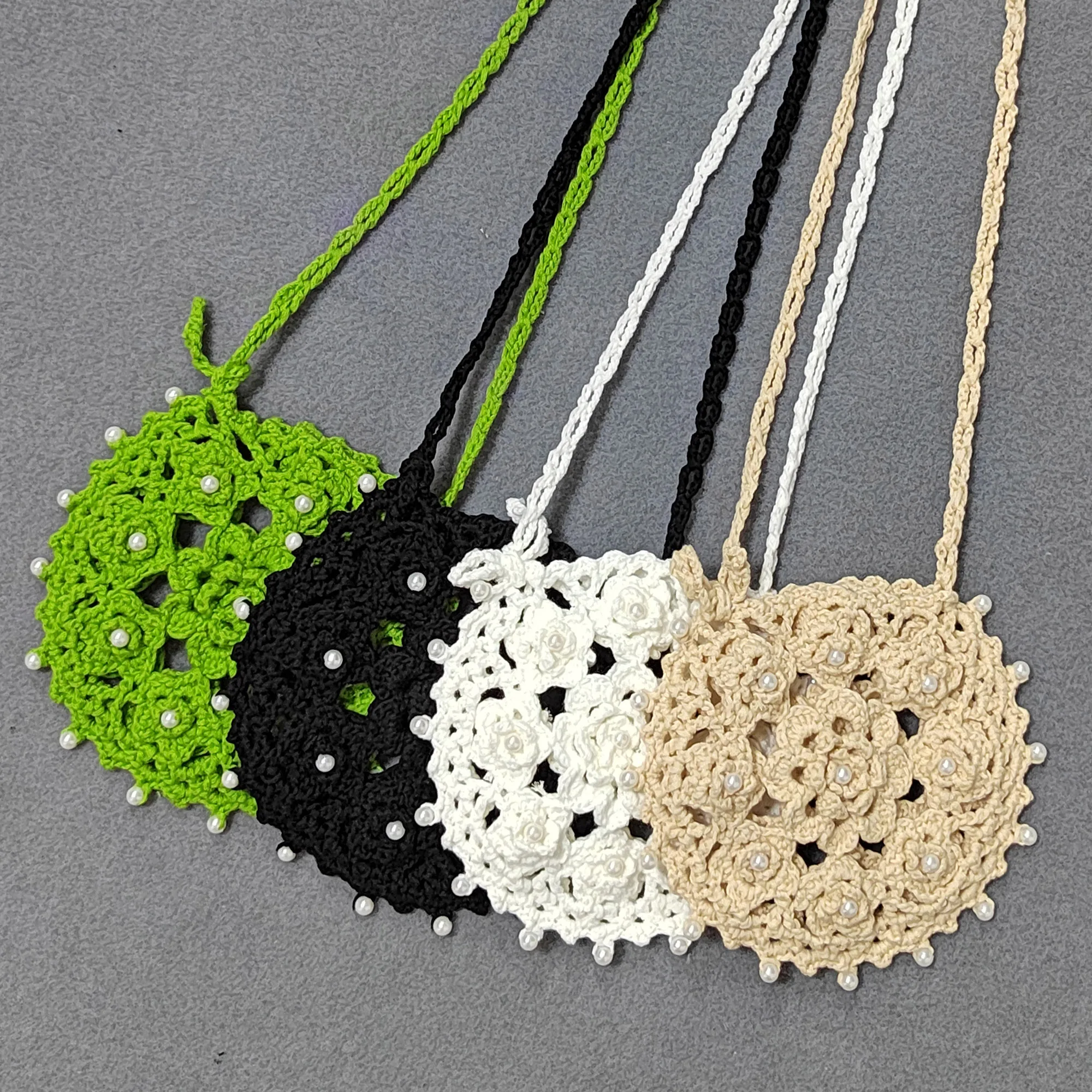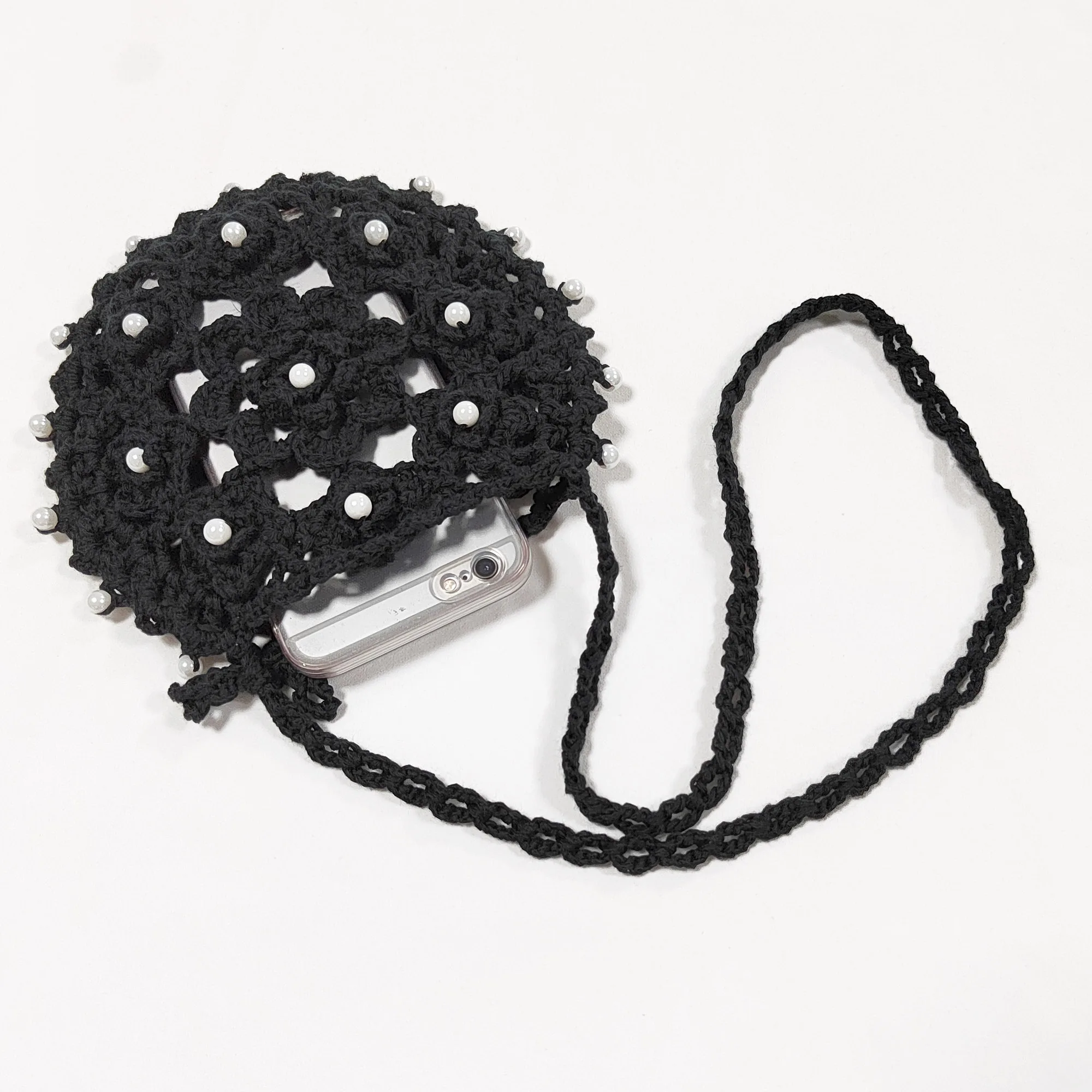 Factory RTS Round Hollow Out Hand Made Crochet Bead Beach Cell Phone Bag
