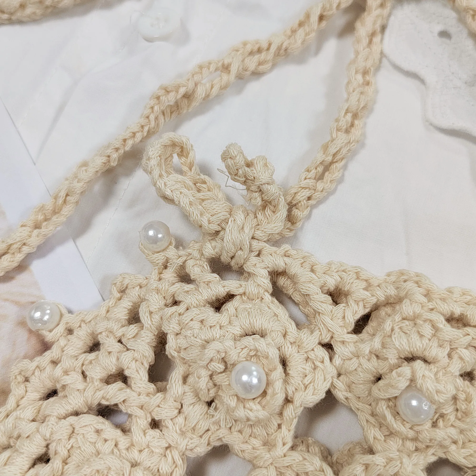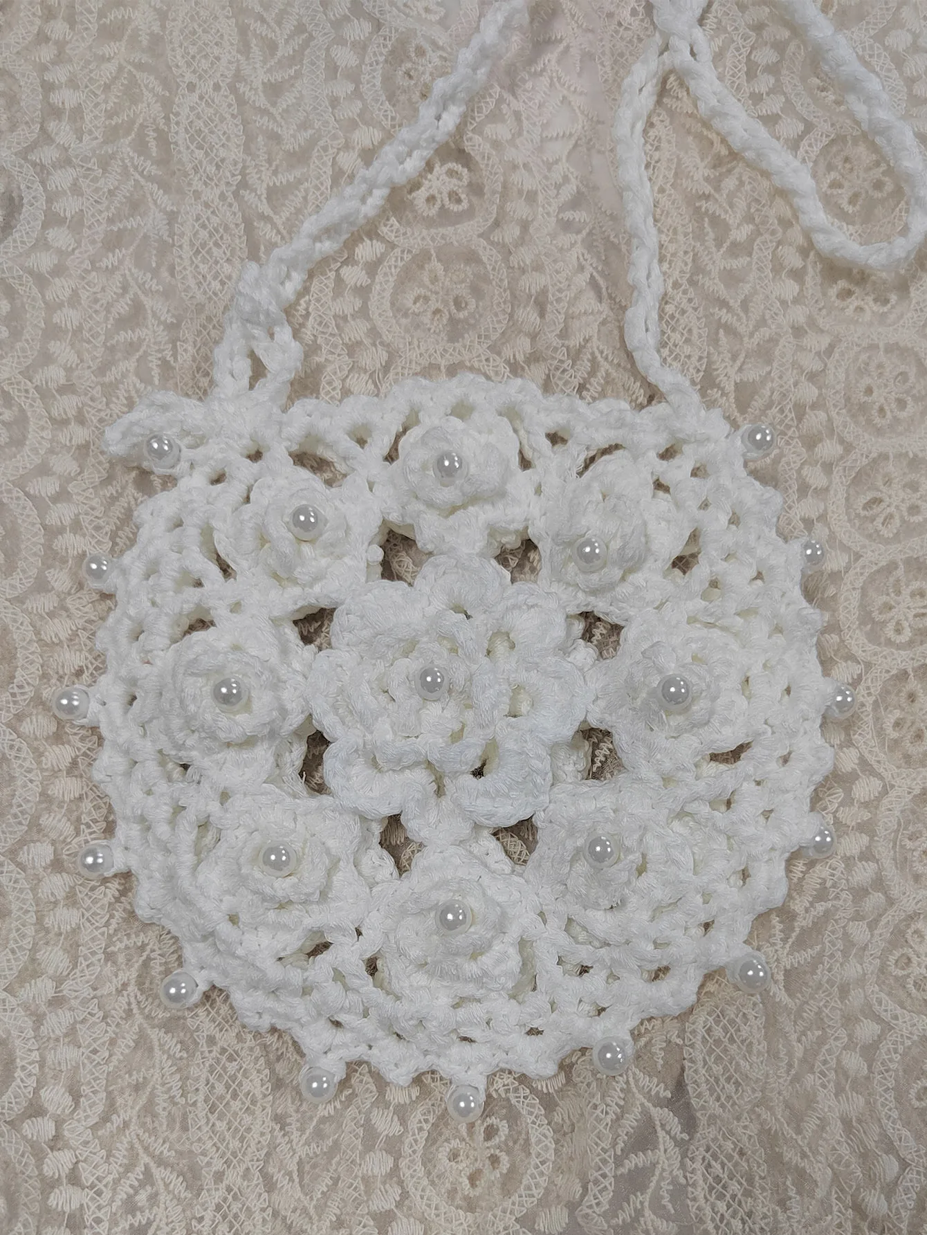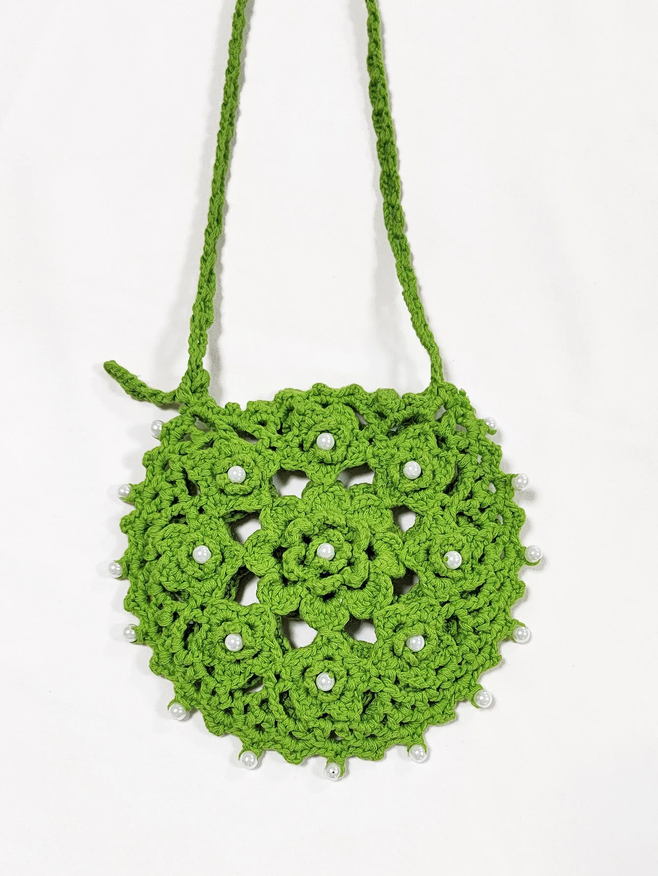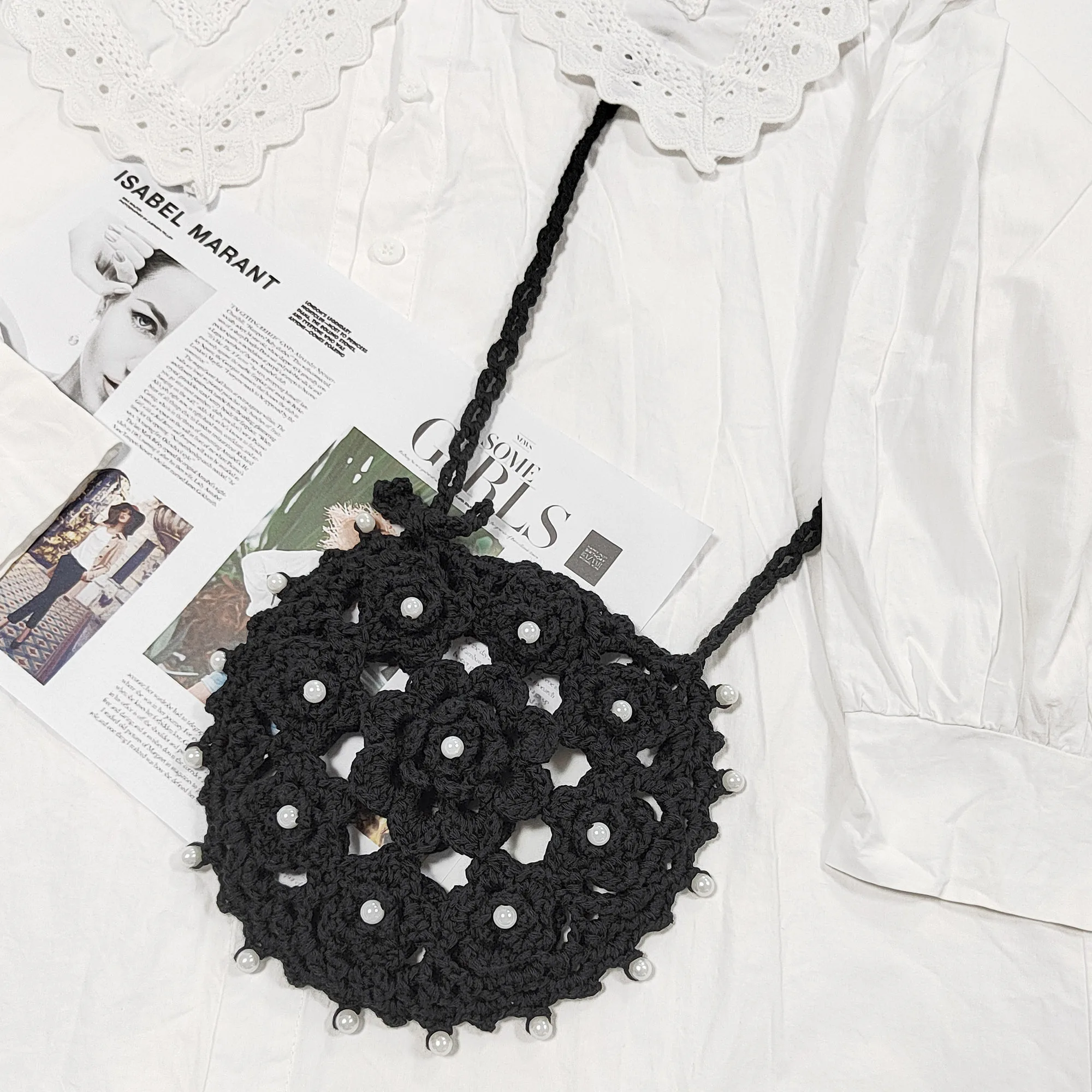 Factory RTS Round Hollow Out Hand Made Crochet Bead Beach Cell Phone Bag