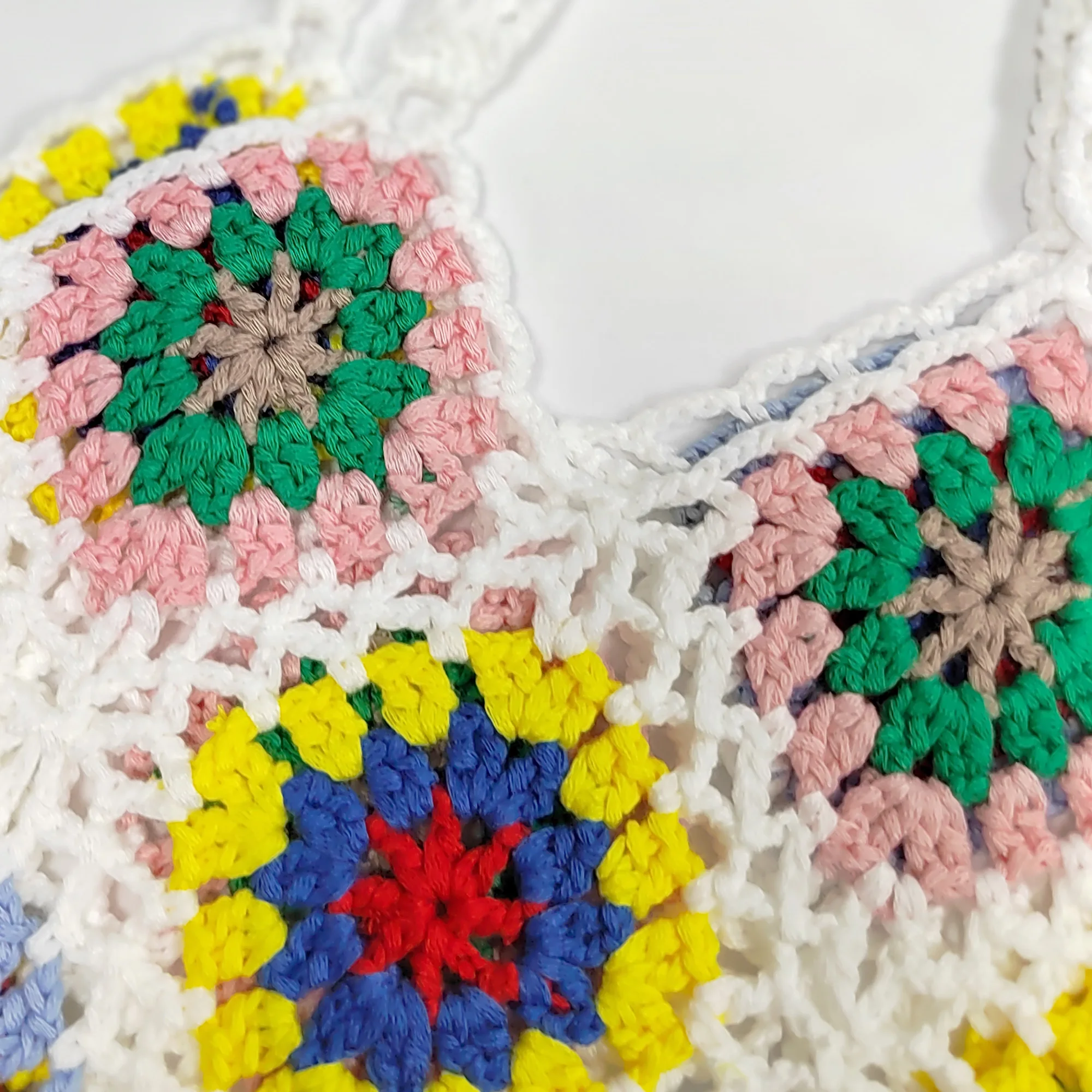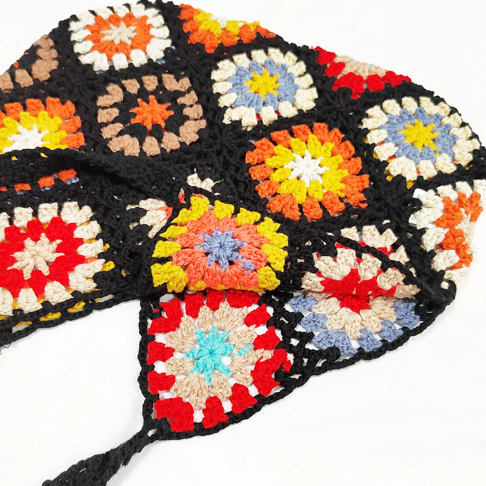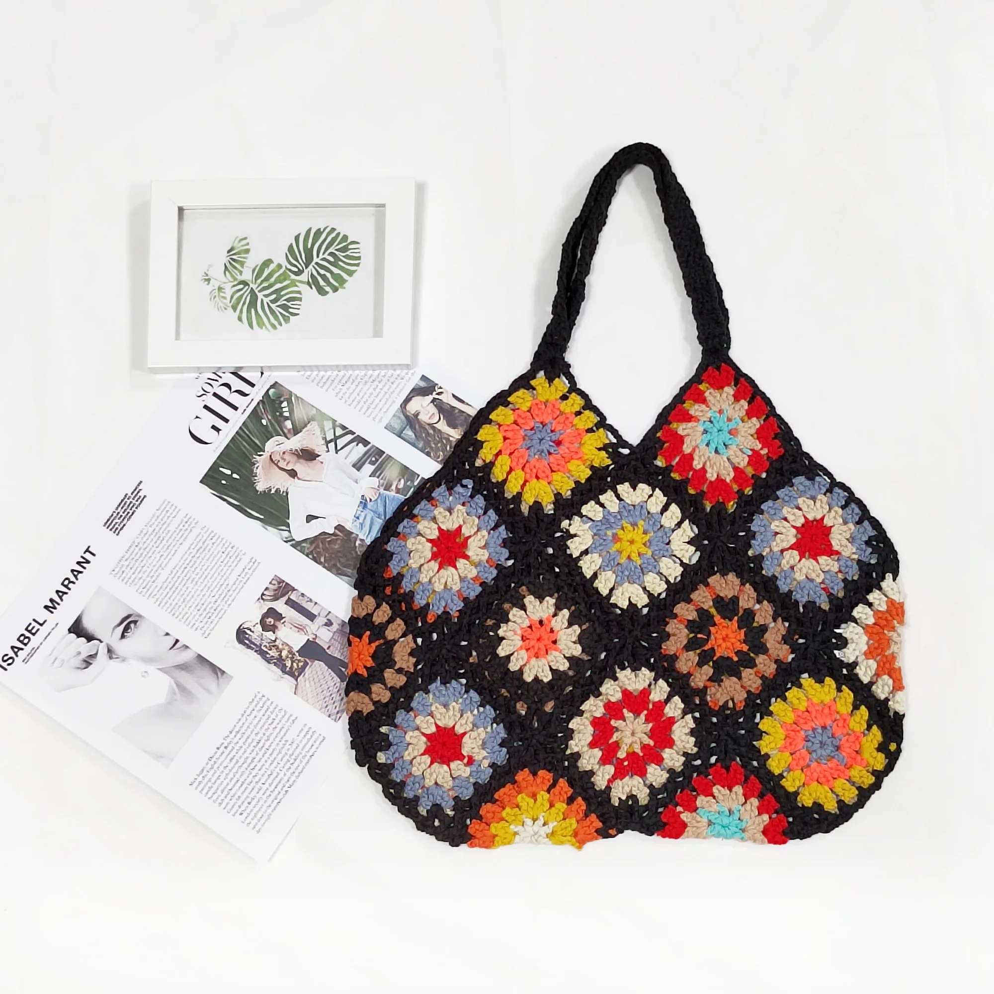 Factory Supply Granny Square Crochet Handmade Shoulder Tote Bag Summer Beach Handbag