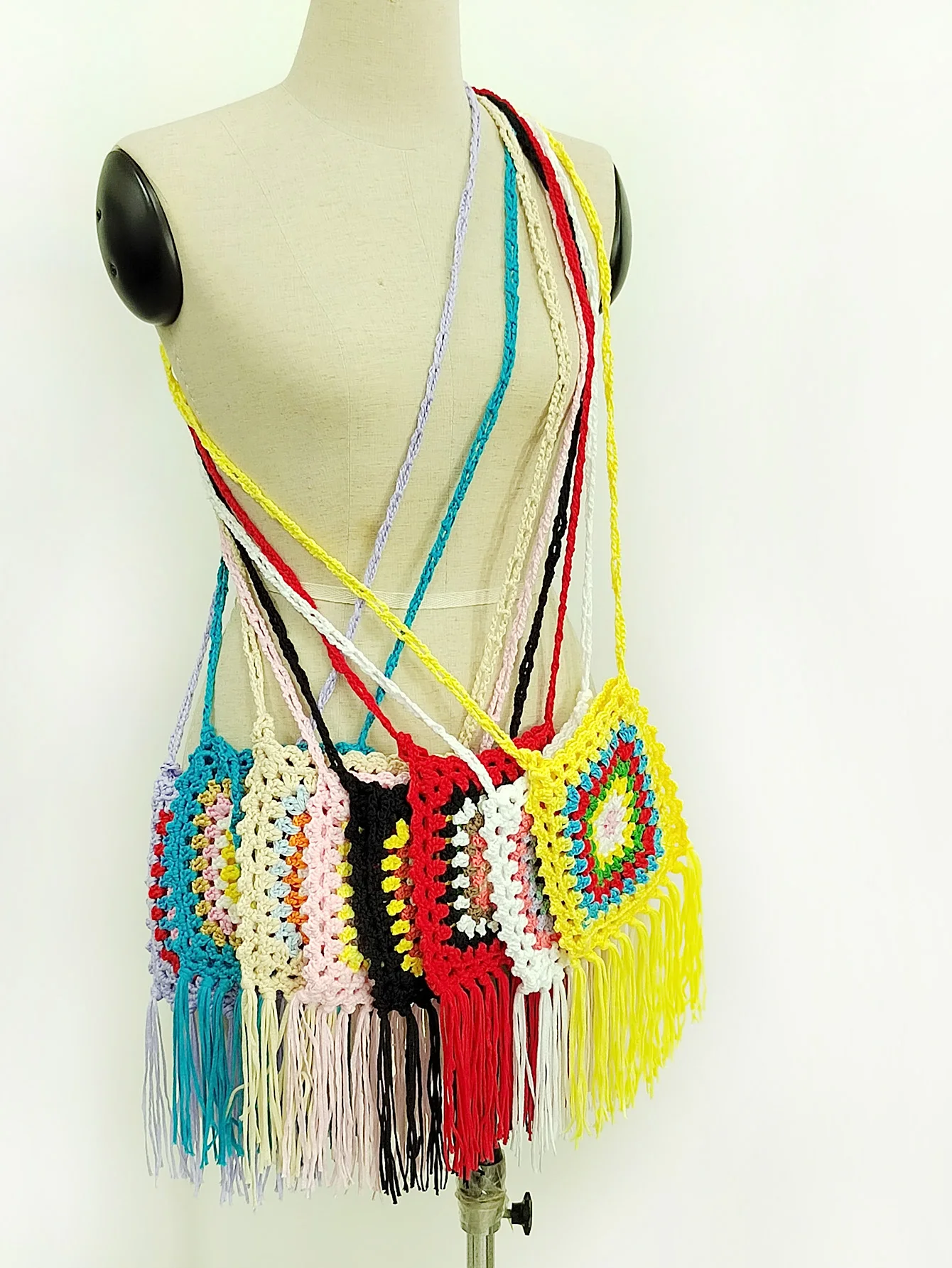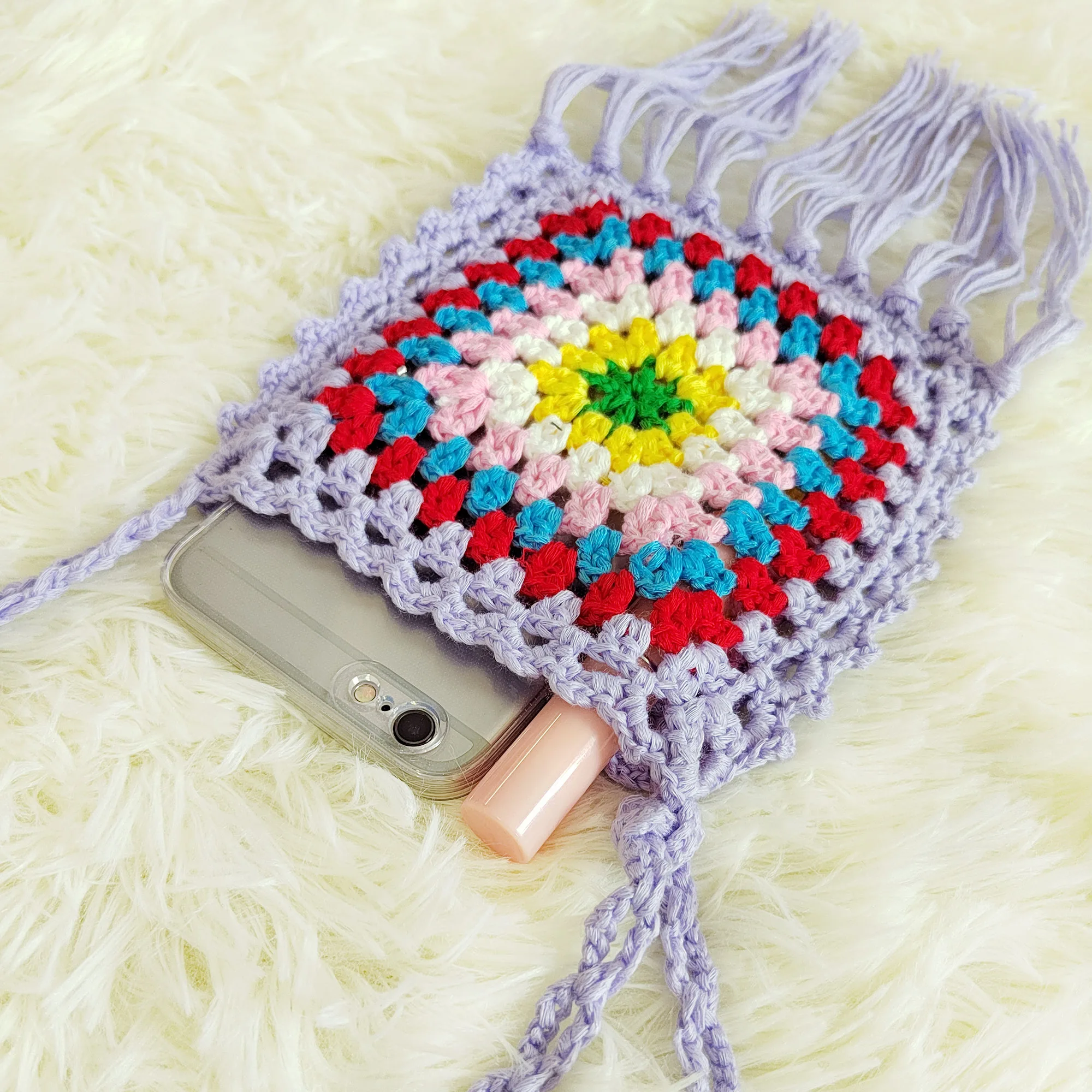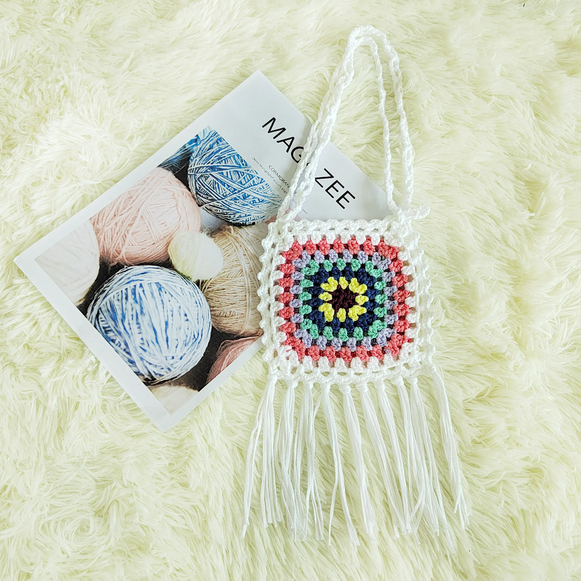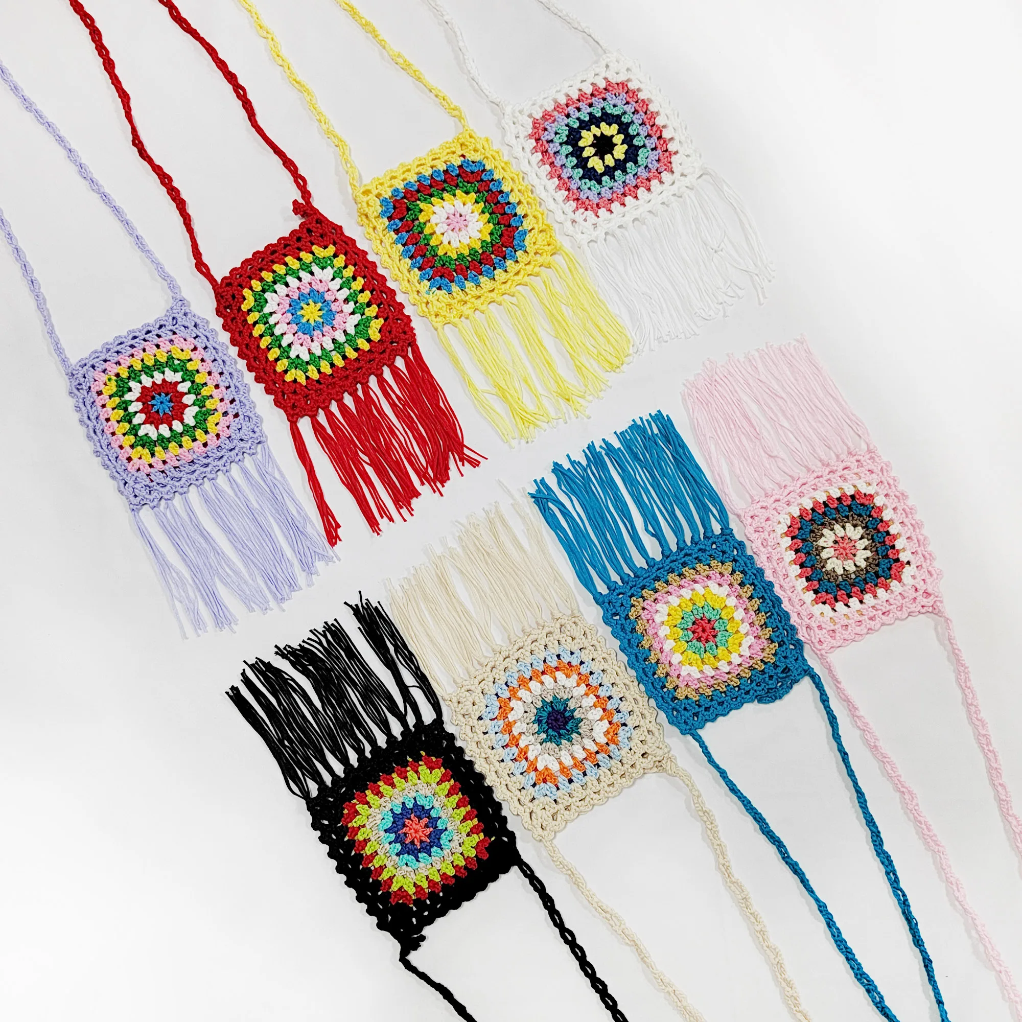 Factory Supply Women Granny Square Crochet Handmade Shoulder Handbag Phone Bag