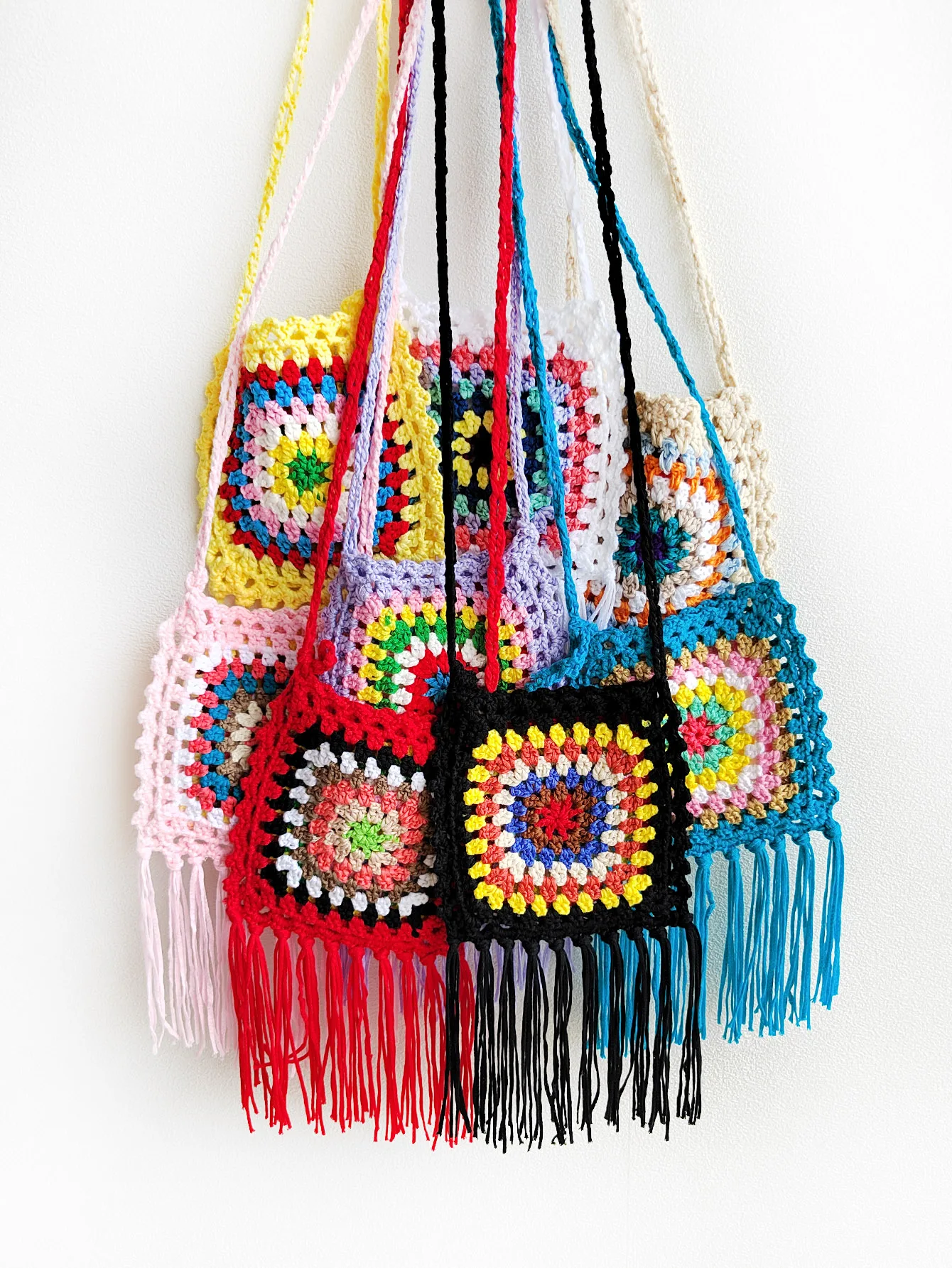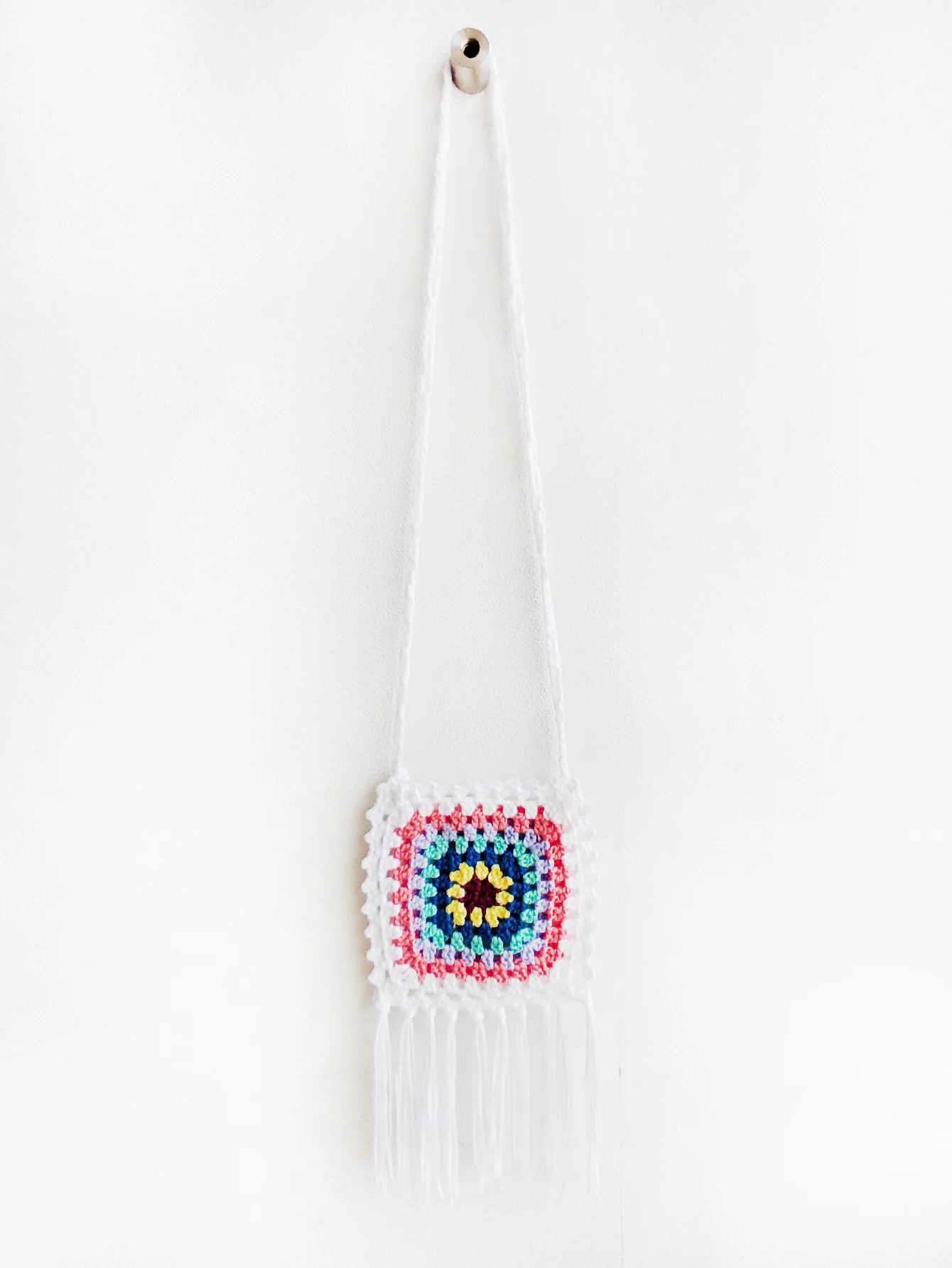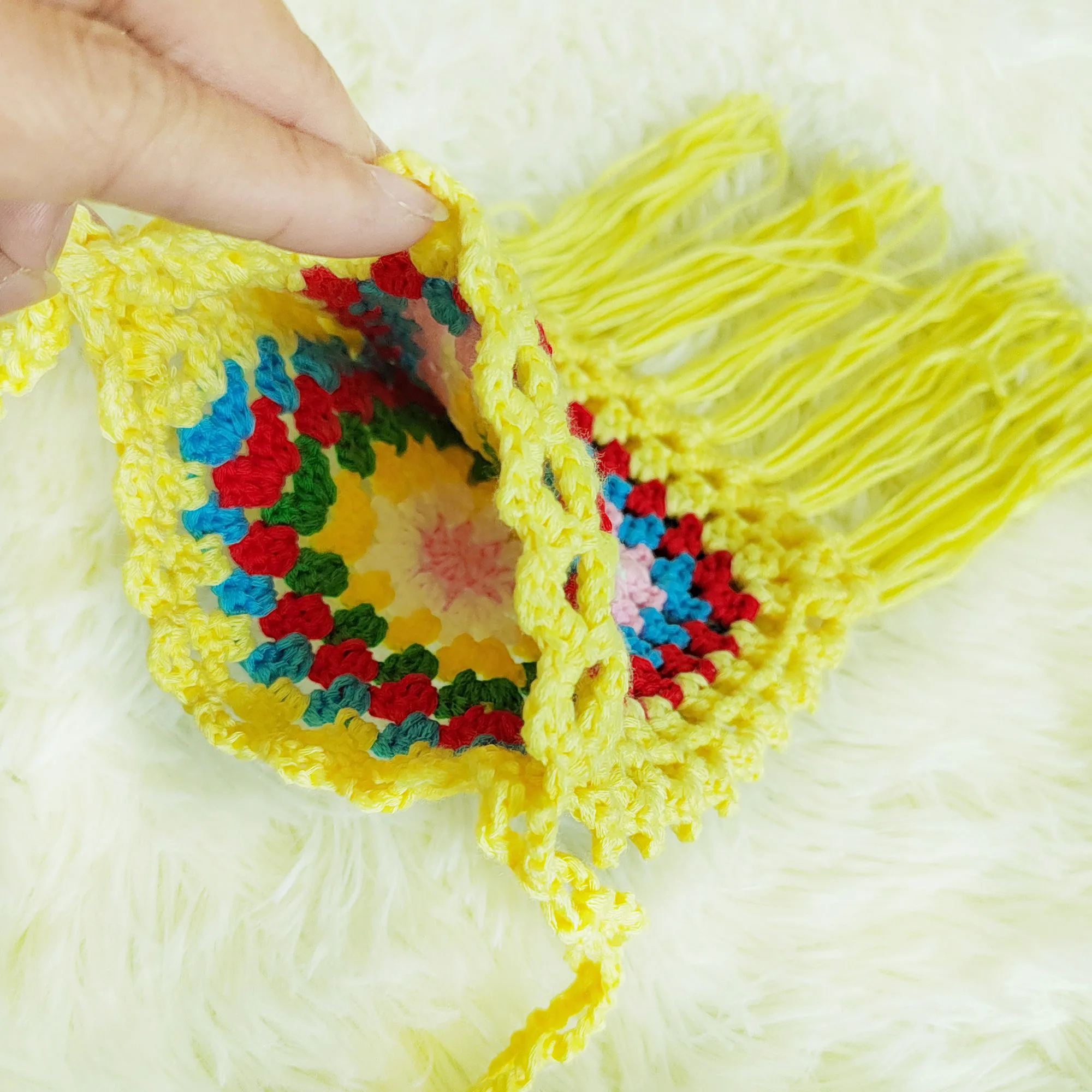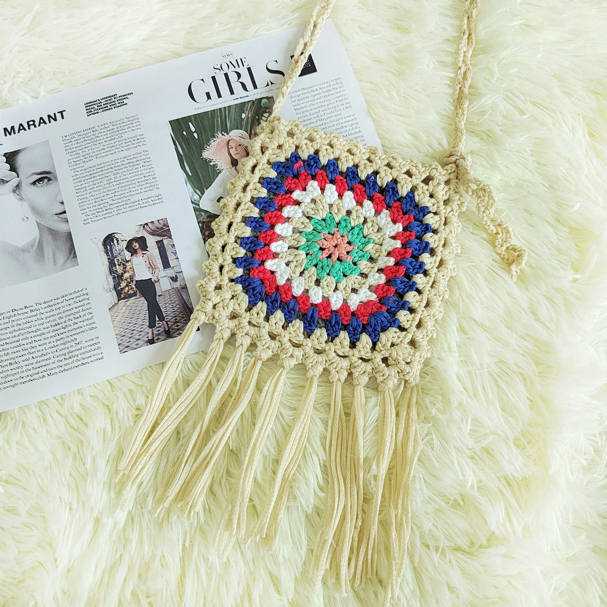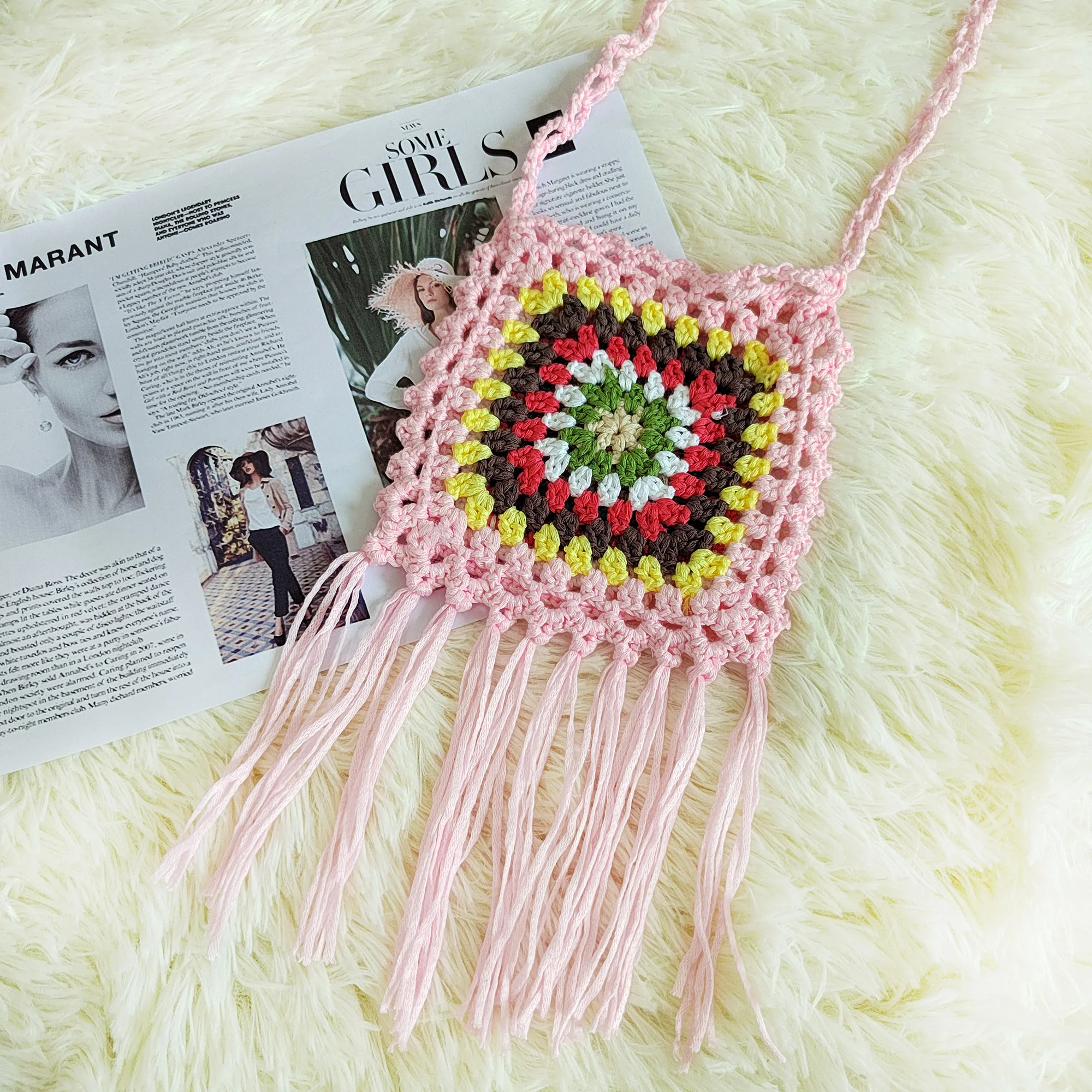 Factory Supply Women Granny Square Crochet Handmade Shoulder Handbag Phone Bag
