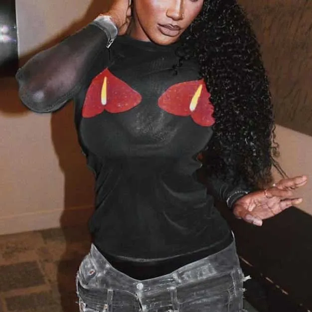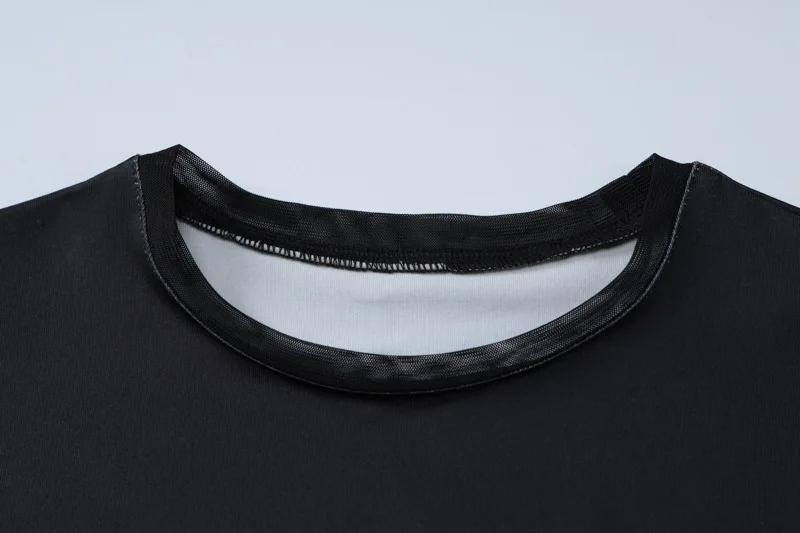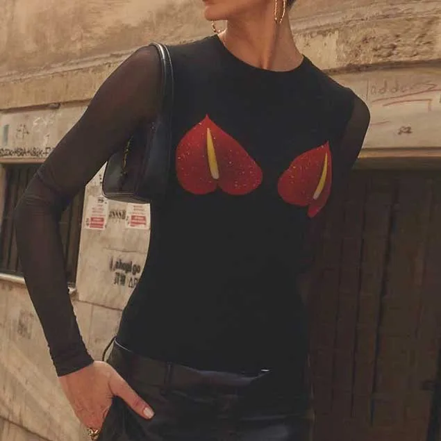Fashion New Arrival Long Mesh Sleeve Bodycon Women's Clothing Tops Lady Streetwear Print Tops