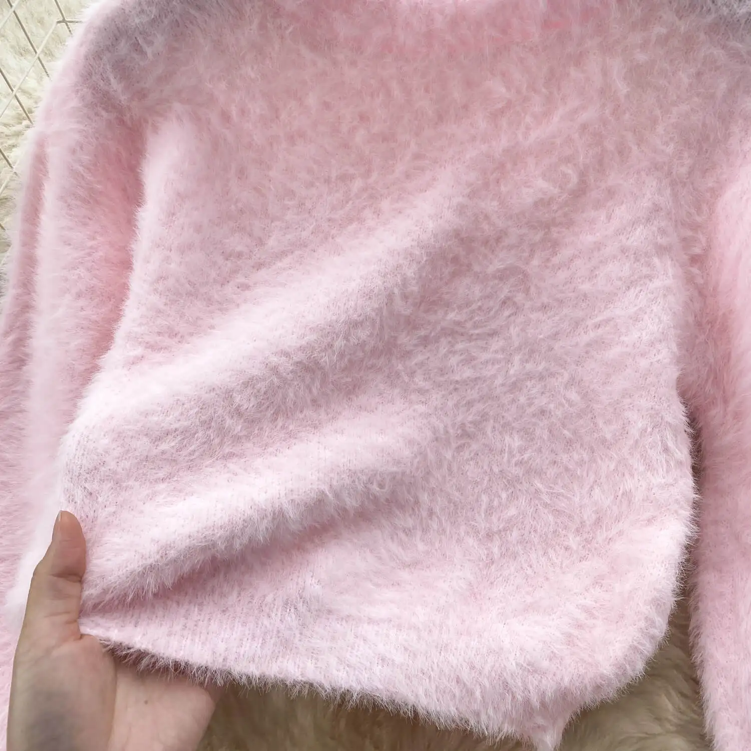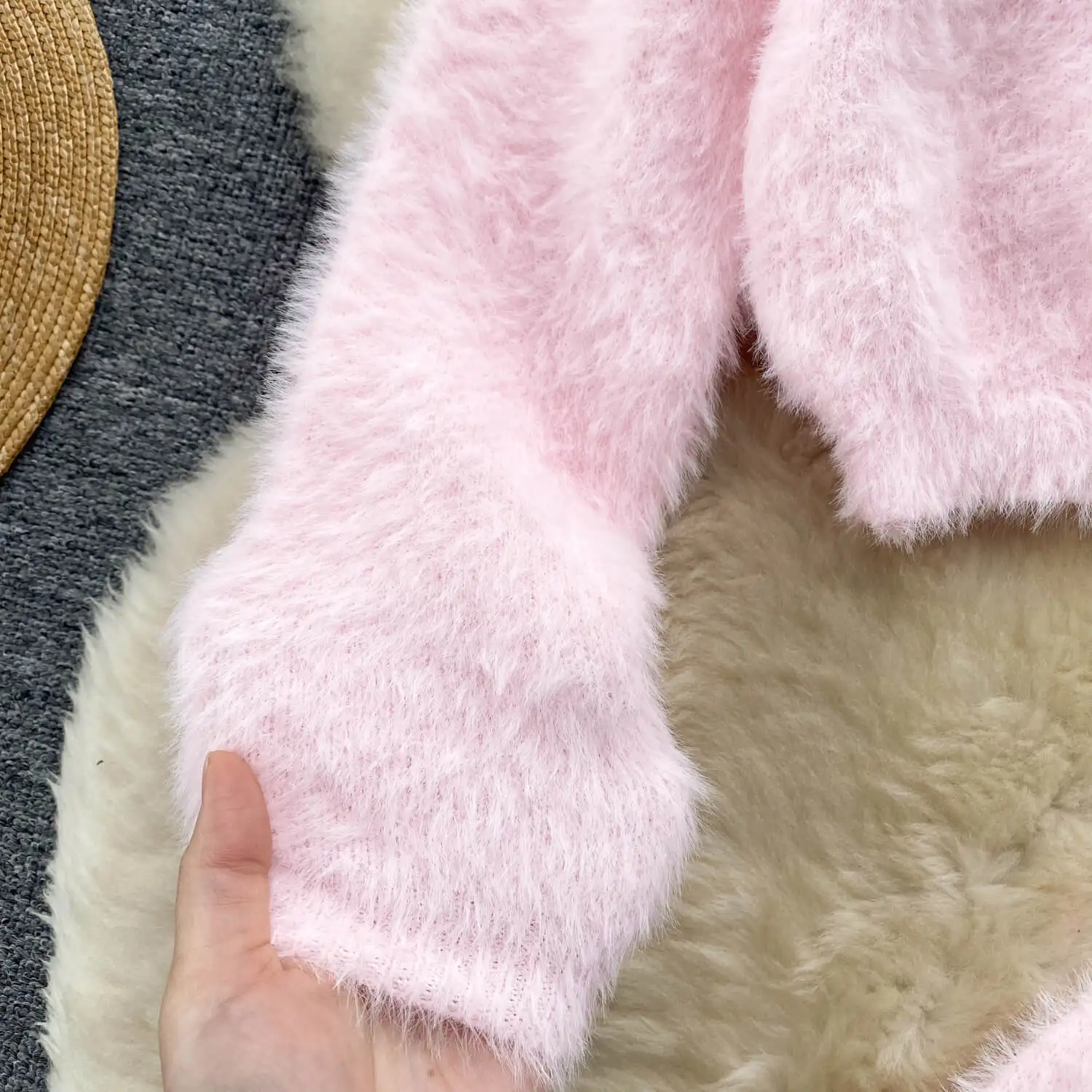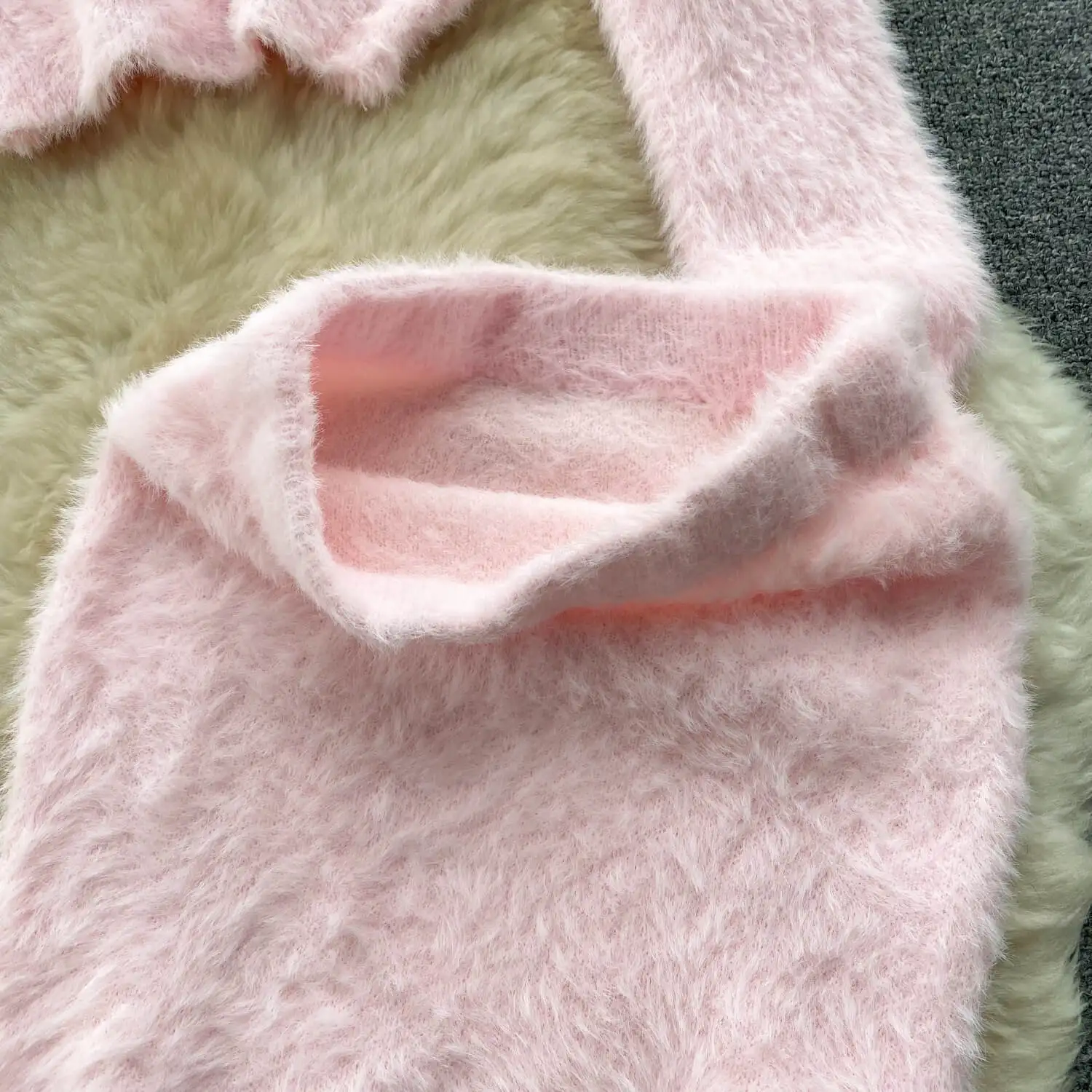 Fashion Set For Women Long-Sleeved Loose Head Plush Knitted Top + Hip Skirt For Two Sets