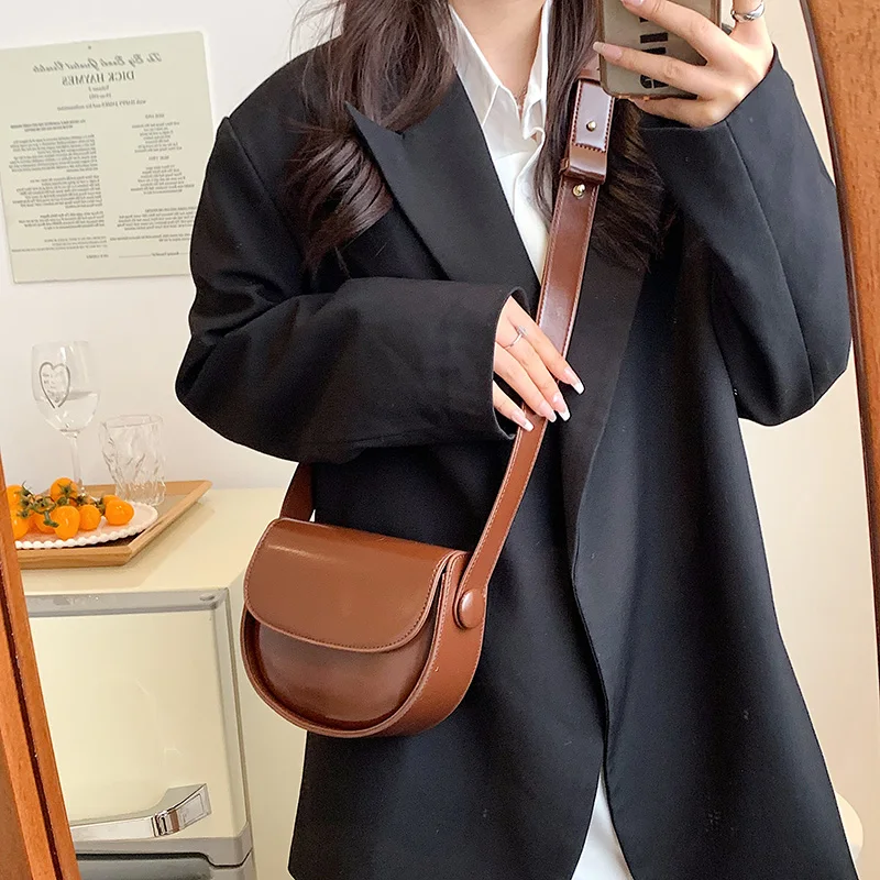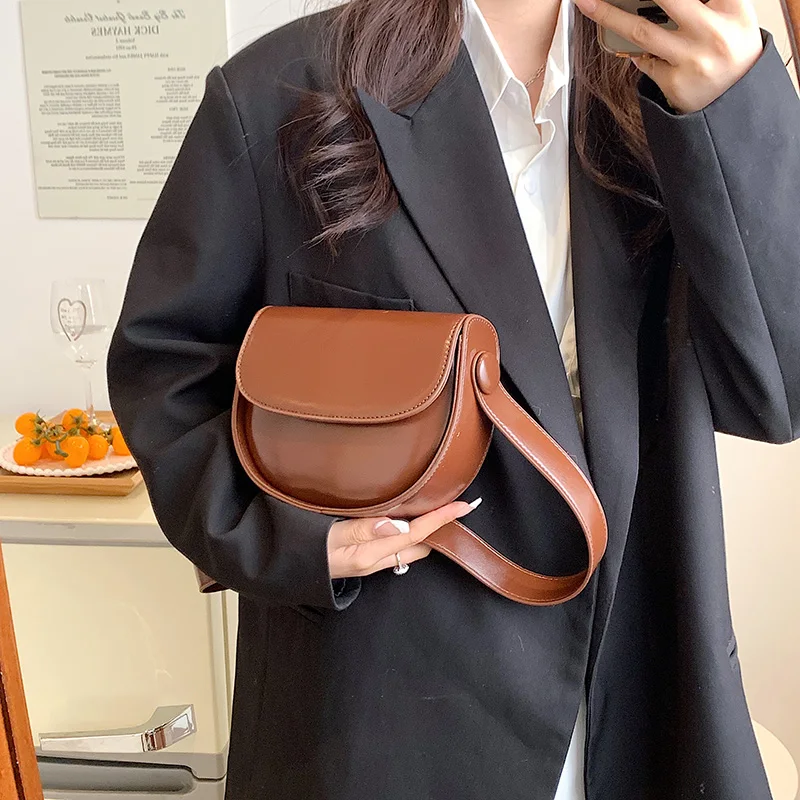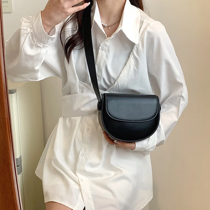 Fashion Small PU Leather Saddle Crossbody Bags for Women 2022 Summer Trend Branded Luxury Shoulder Bag Purses and Handbags