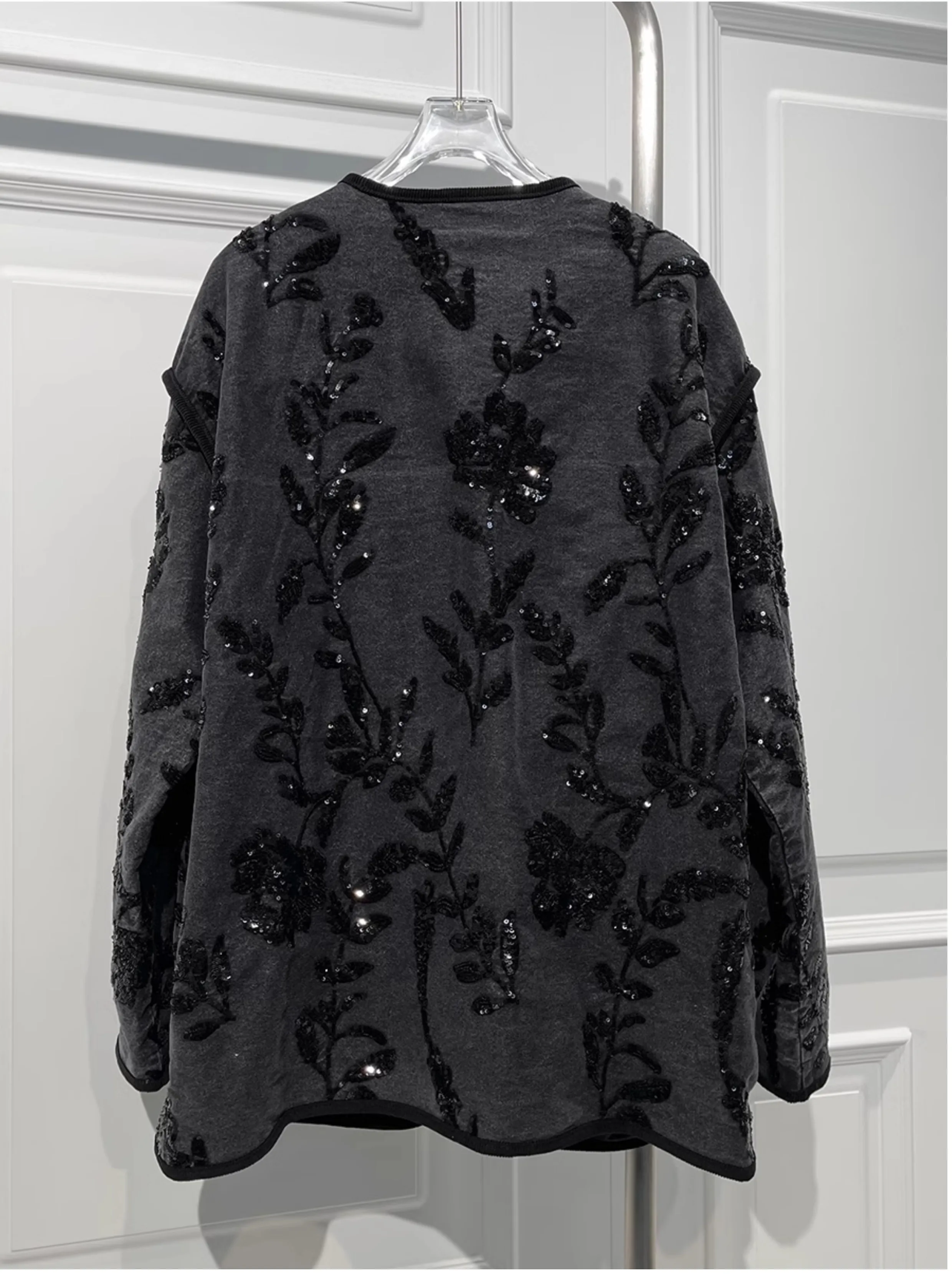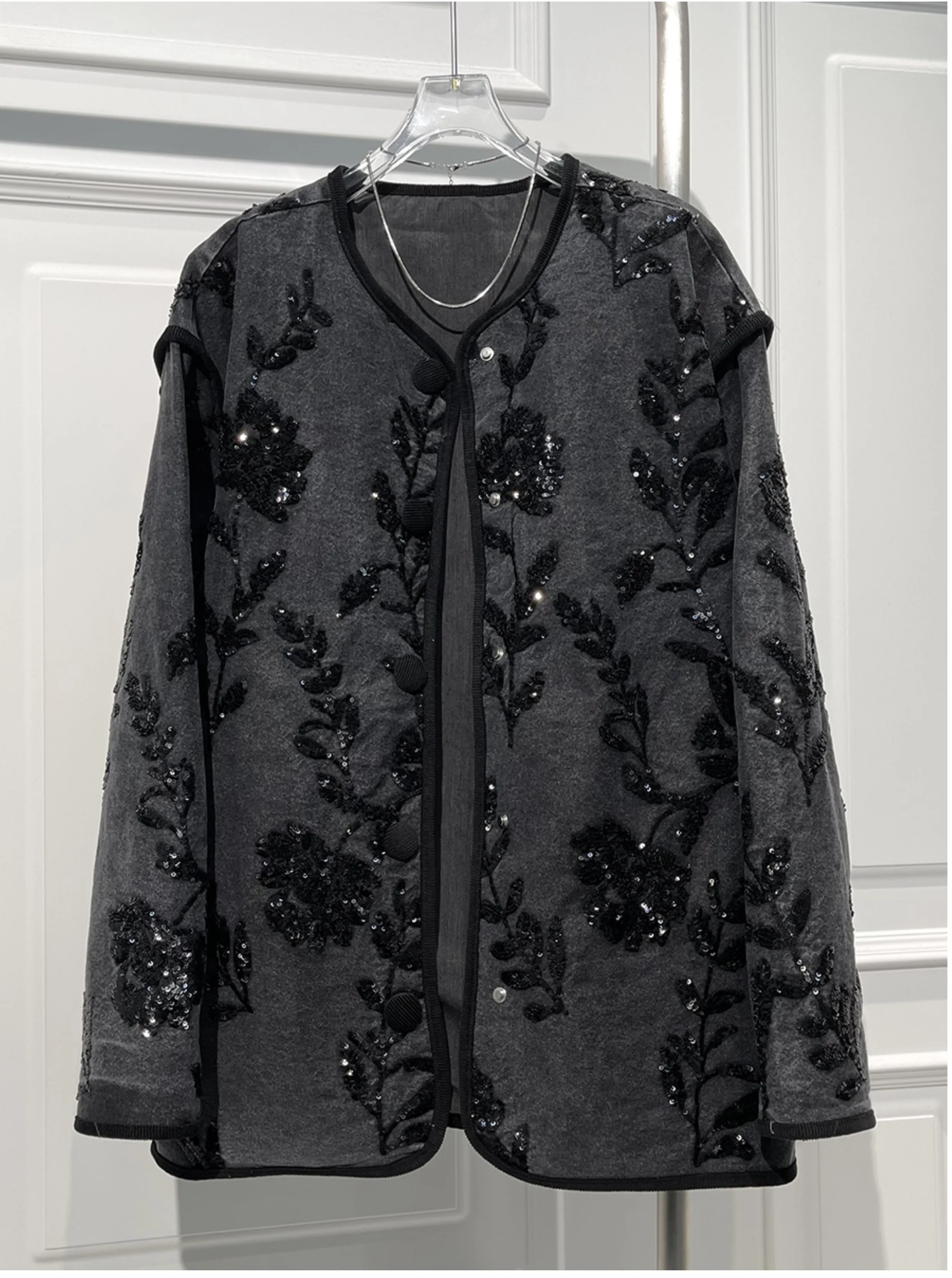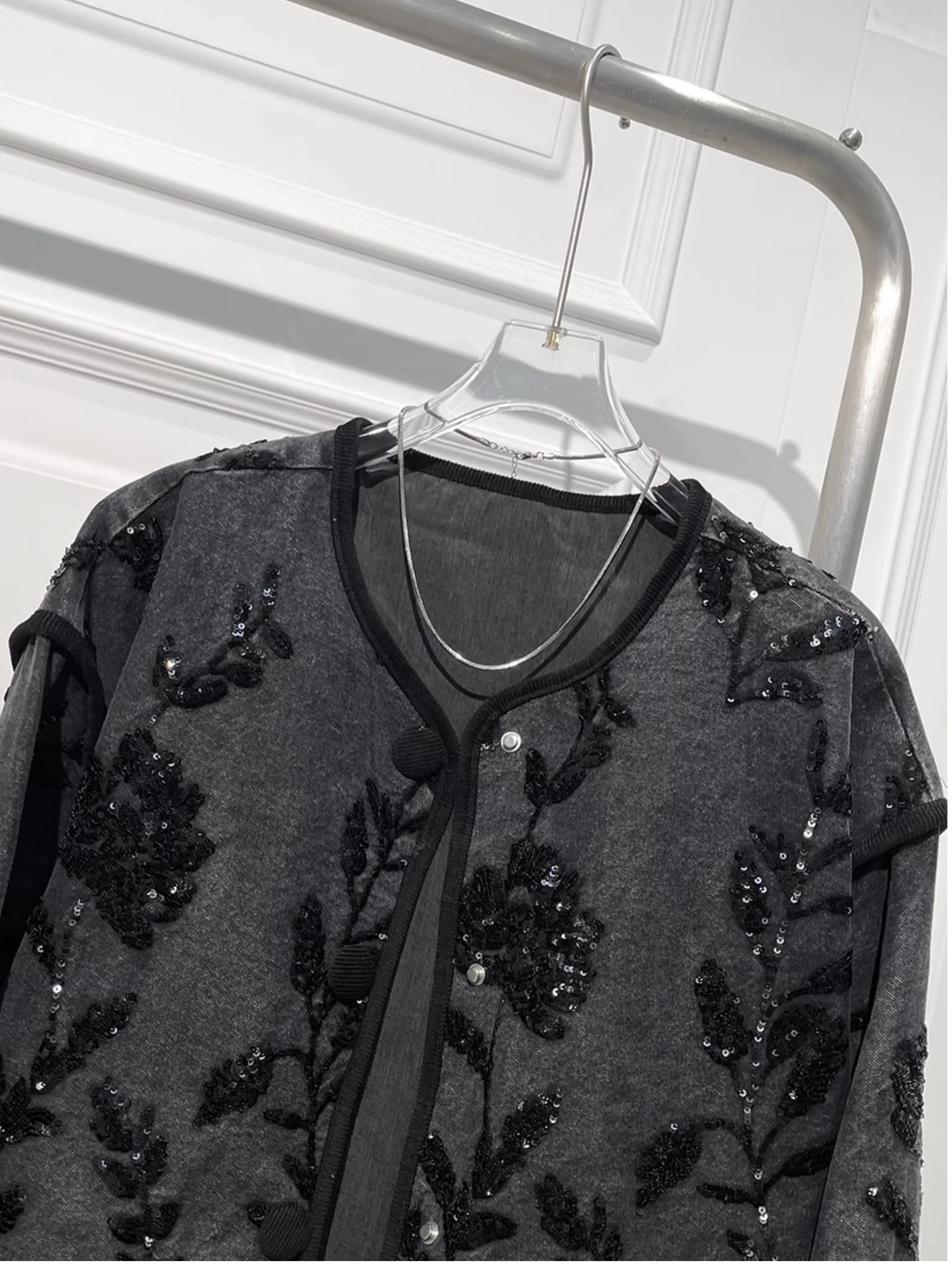 Fashion Versatile Heavy Industry Embroidered Flower Denim Jackets for Women Spring New Loose Casual Mid-length Sequined Jacket
