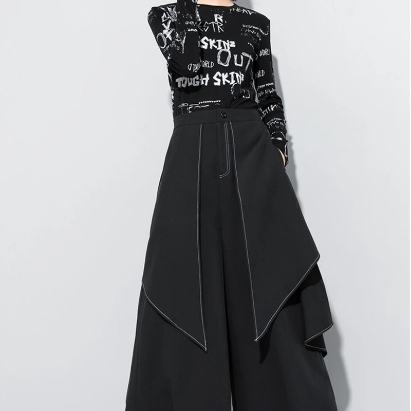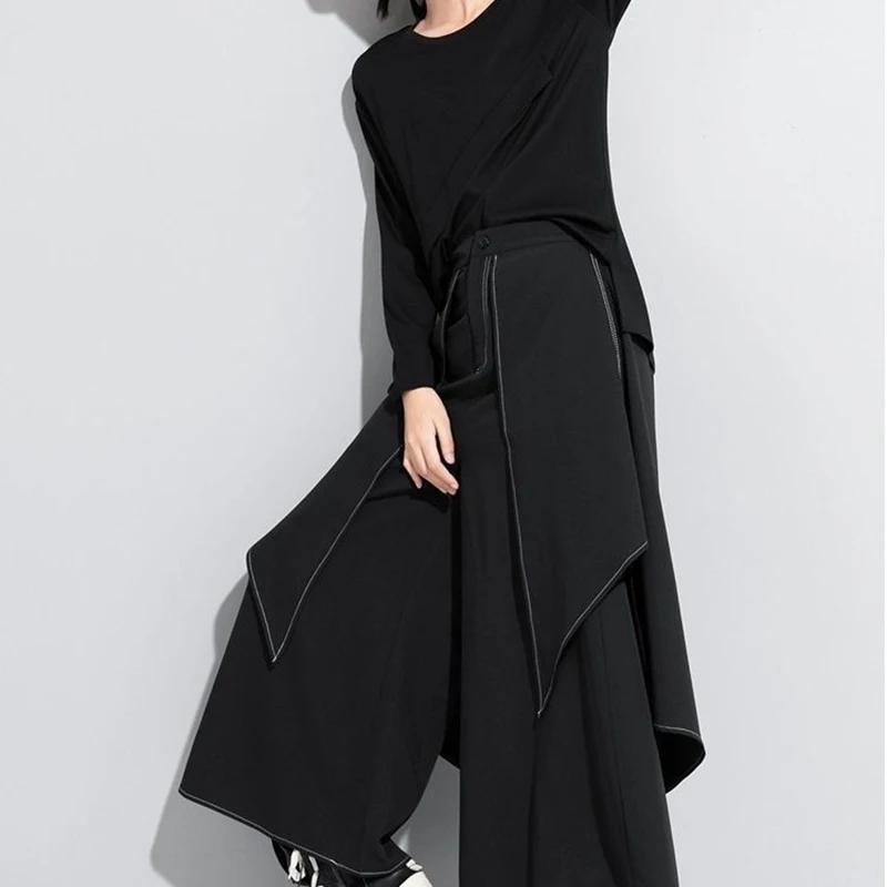 French fashion temperament black wide-leg pants women's spring and autumn new loose plus size casual pants casual skirt pants.