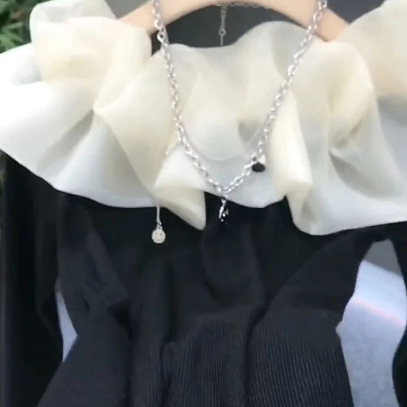 French style T-shirt shoulder splicing T-shirt women's spring and autumn new fashion temperament slim long-sleeved shirt