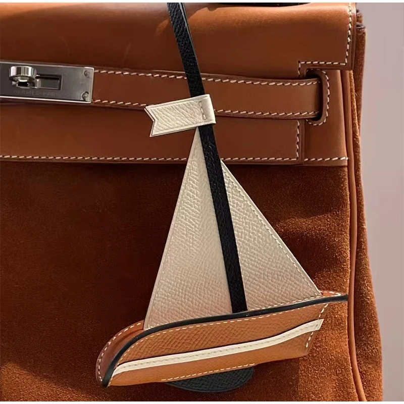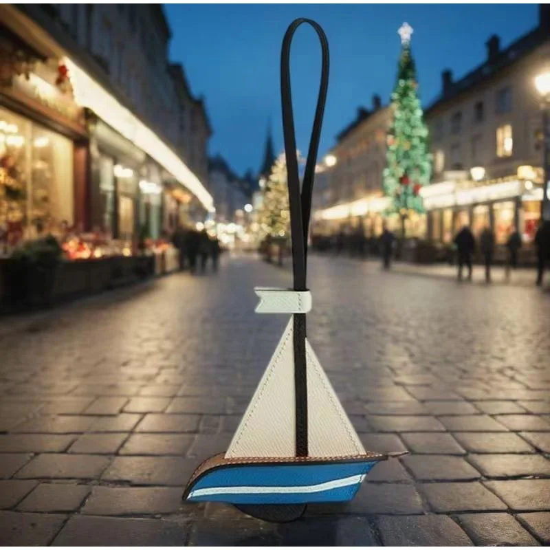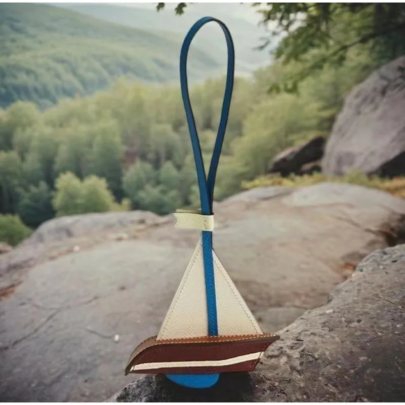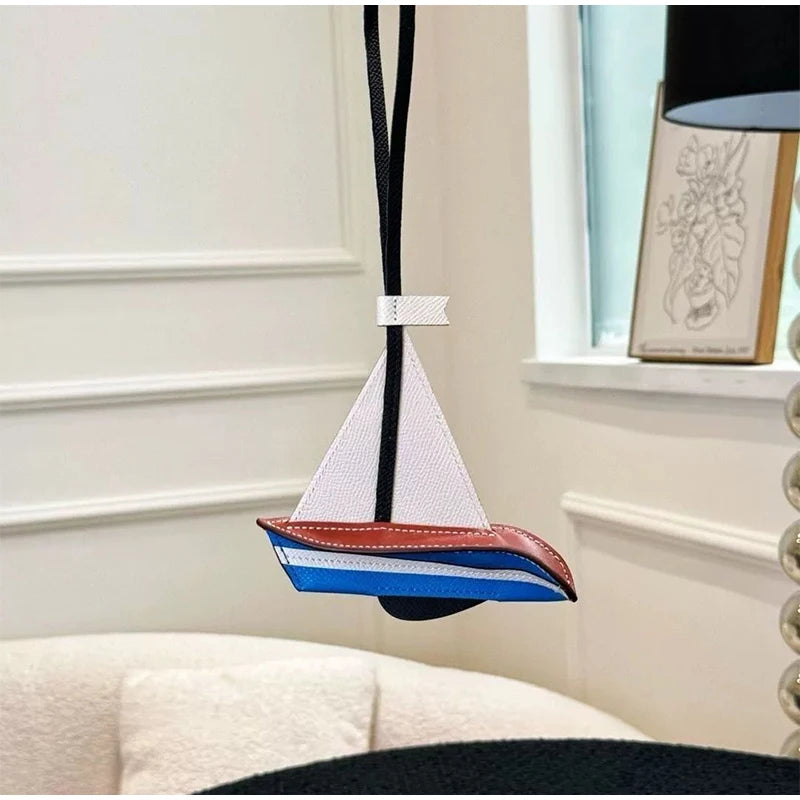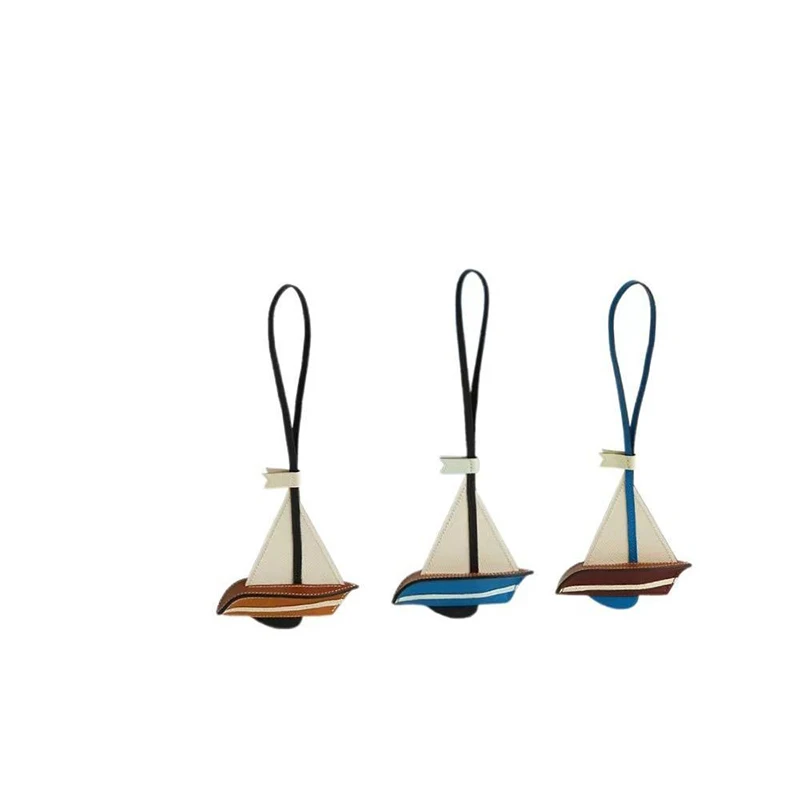 Fresh and elegant handmade calfskin sailboat key bag pendant Navy style natural and unique highlight personality car pendant