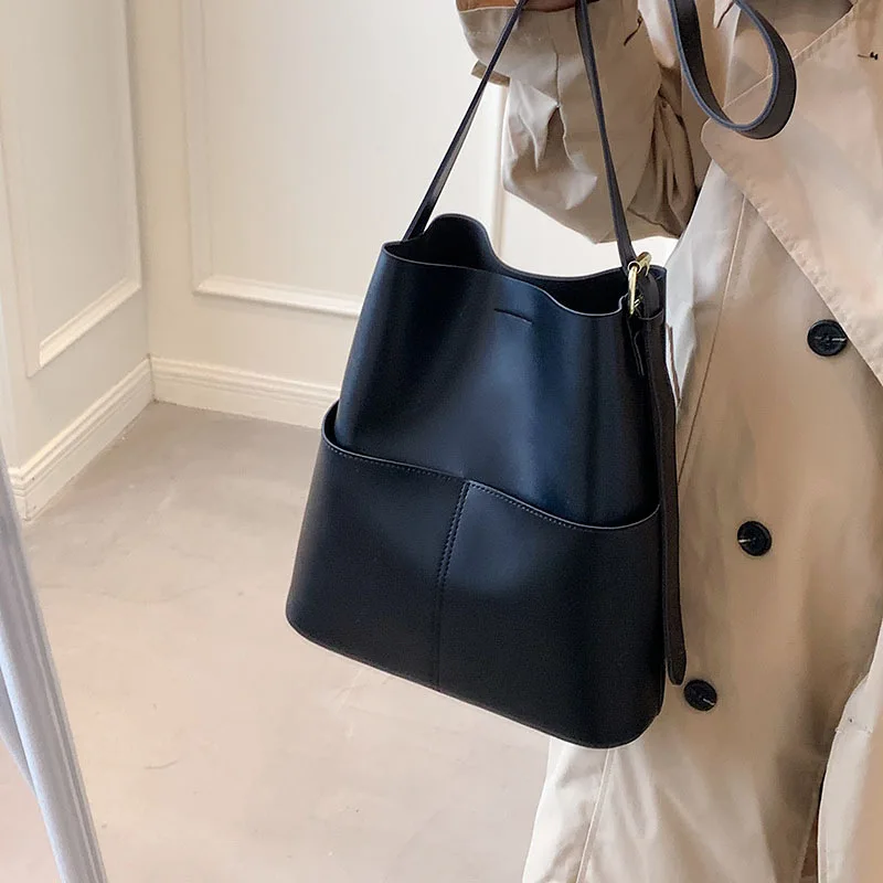 Good Quality solid color casual simple leather tote bag Shoulder Handbags Tote Bags For Women