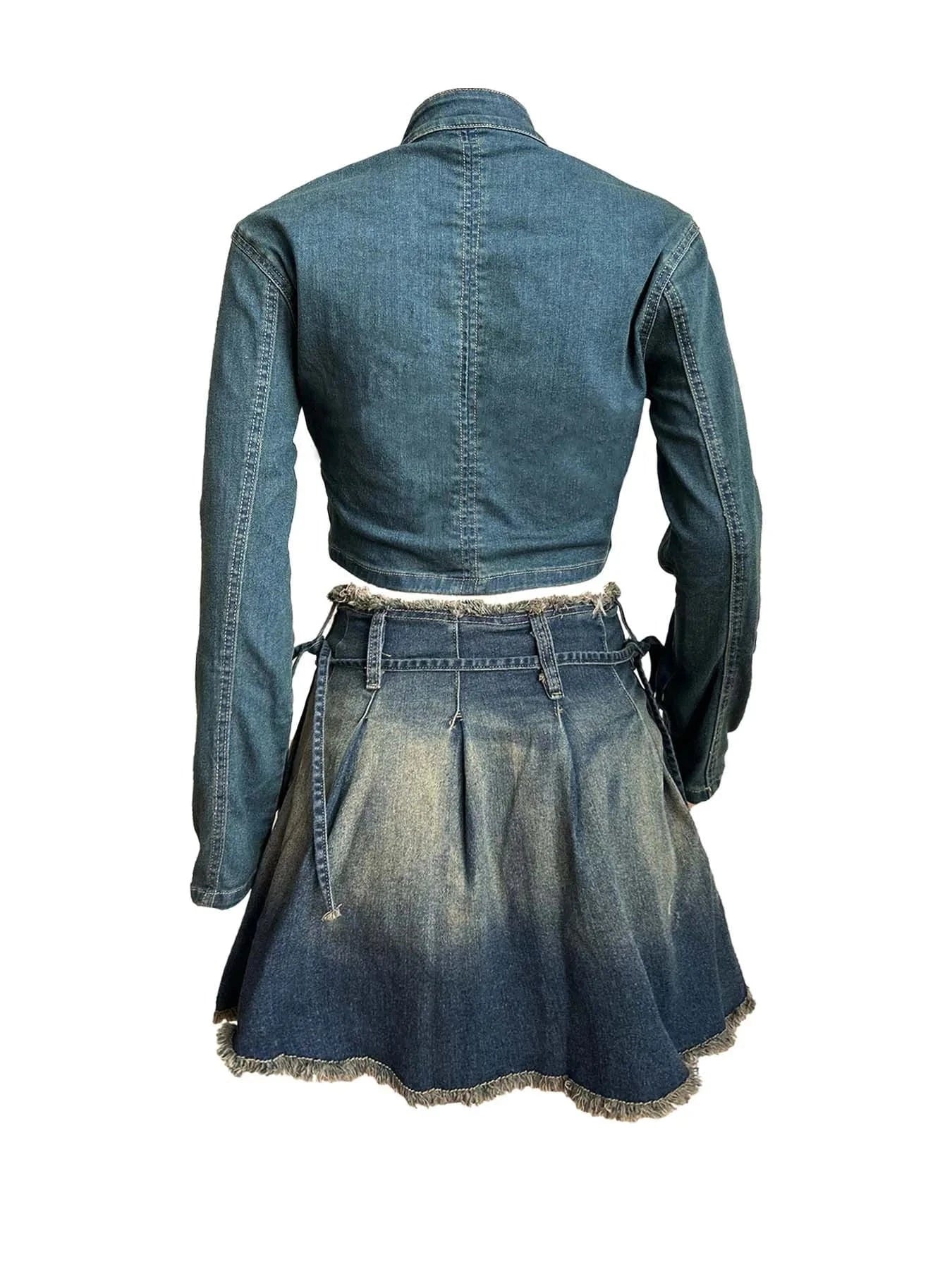 GX8008 Fashion 2024 Clothing Women Boutique Casual Women Denim Outfit Long Sleeve Embroidery Jacket and Mini Skirt 2 Piece Set