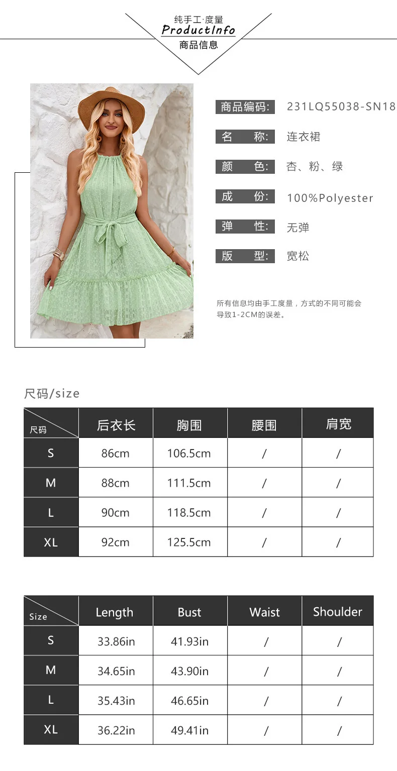 Hot Sale Casual Dresses Summer fashion lace beach Women's Dresses plain Halter Neck Dress With Belt