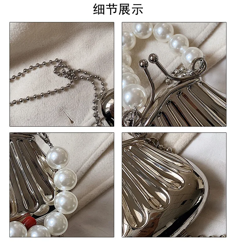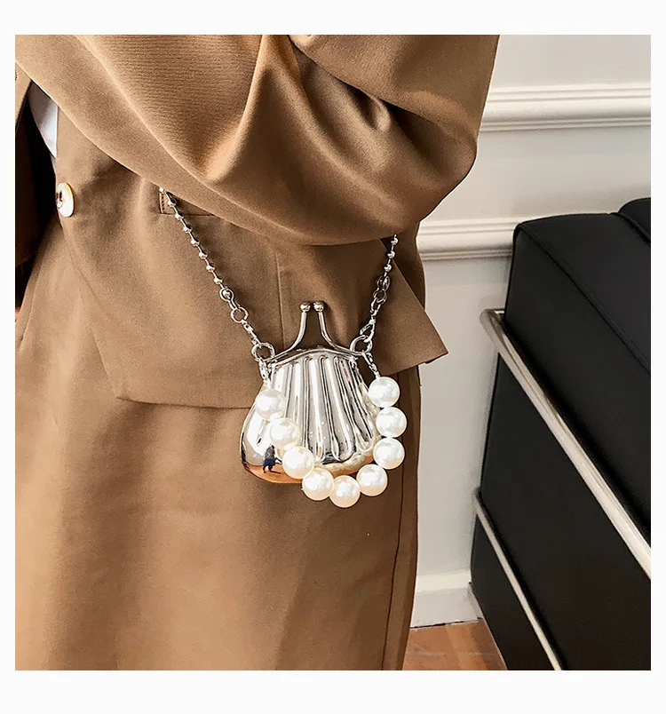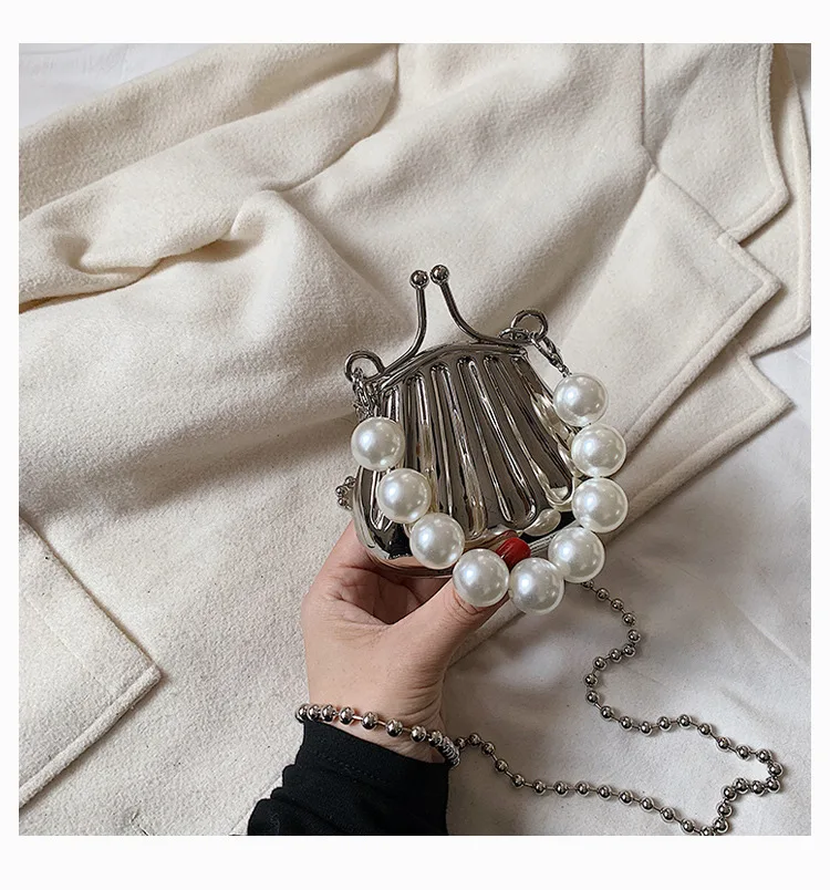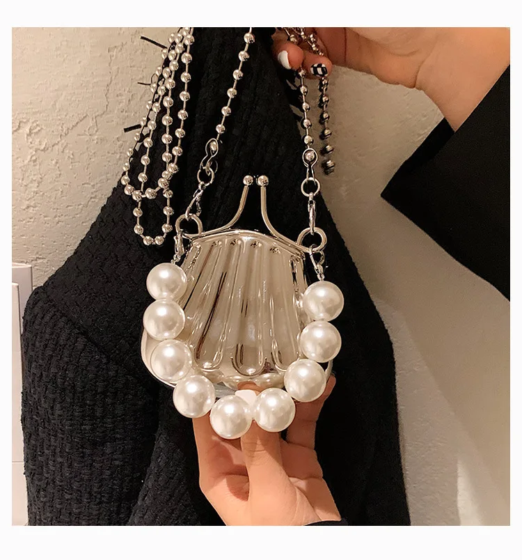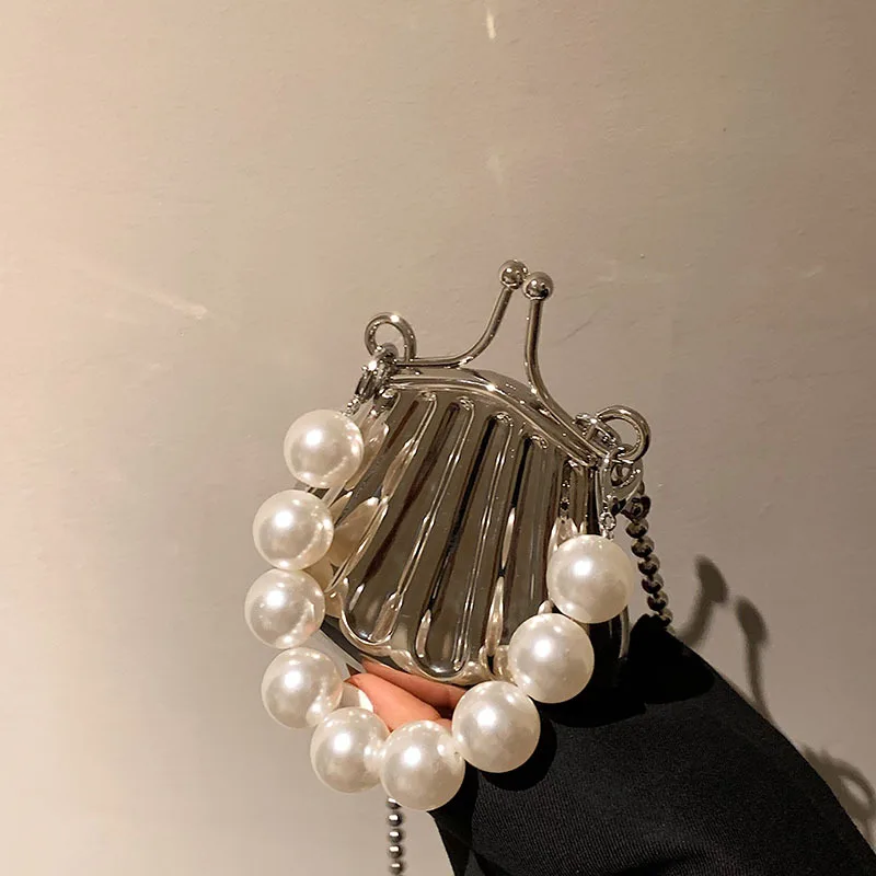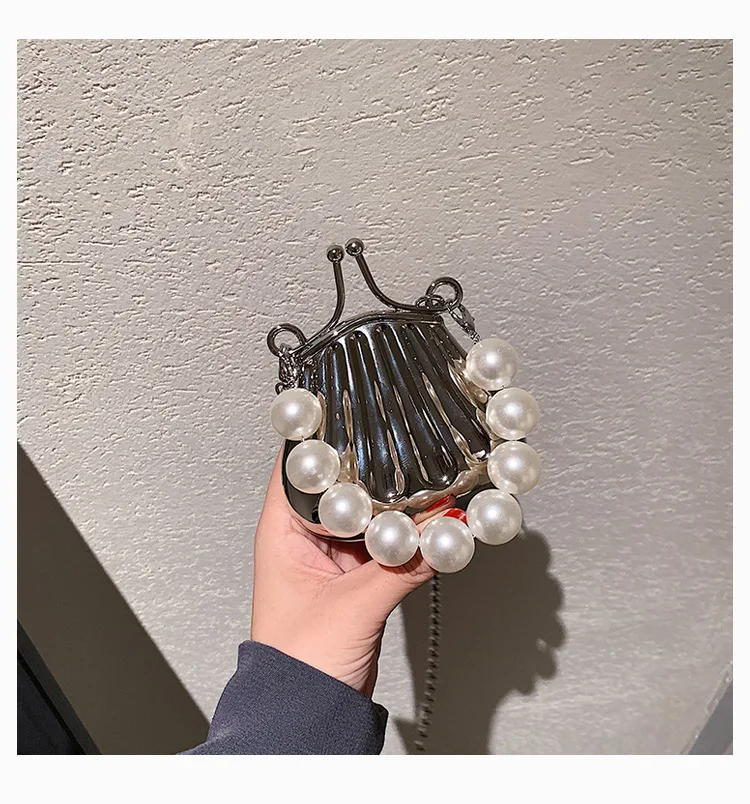 JANHE Luxury Mini Coin Purse Lady Pearl Chain Hand Bag Cute Small Handbag Women Purse Clutch Evening Bags