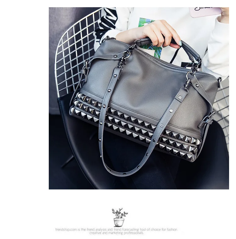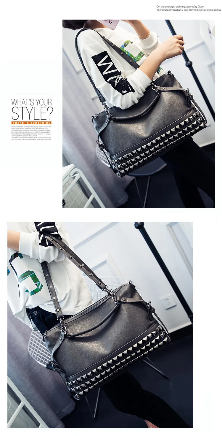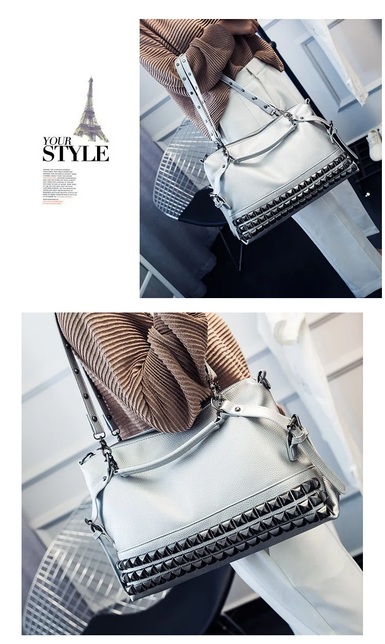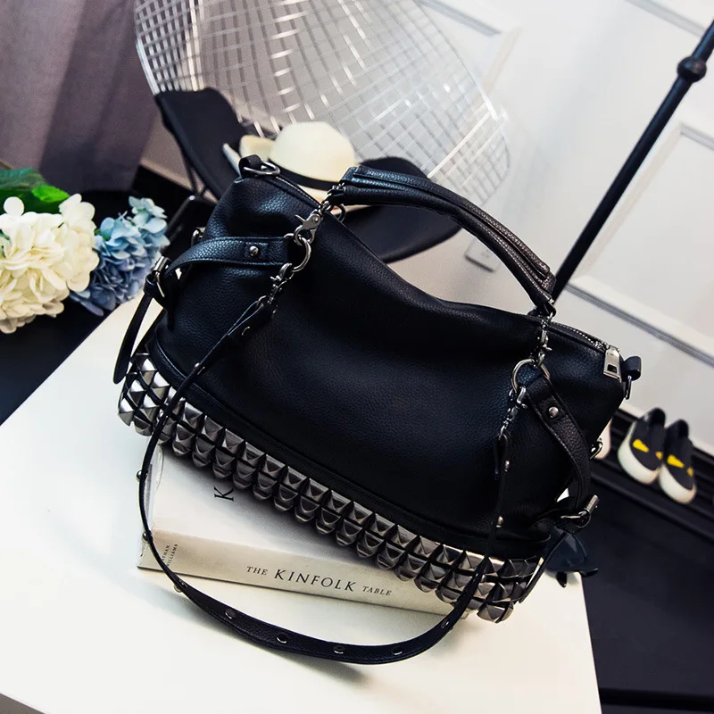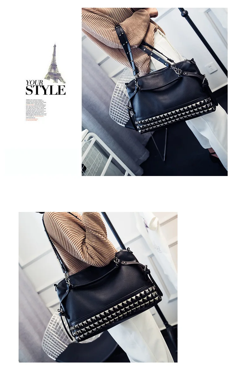 JANHE sac a main bolsa feminina Designer Women Large Purse Chi Ladies Pu Leather Messenger Black Rivet Tote Bag Handbags