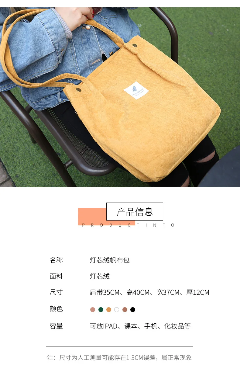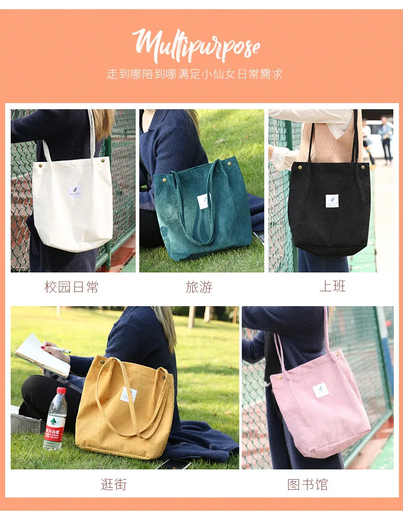 JANHE Wholesale Girls sac a main large shopping bags Female Shoulder Tote Handbags Corduroy Bags For Women
