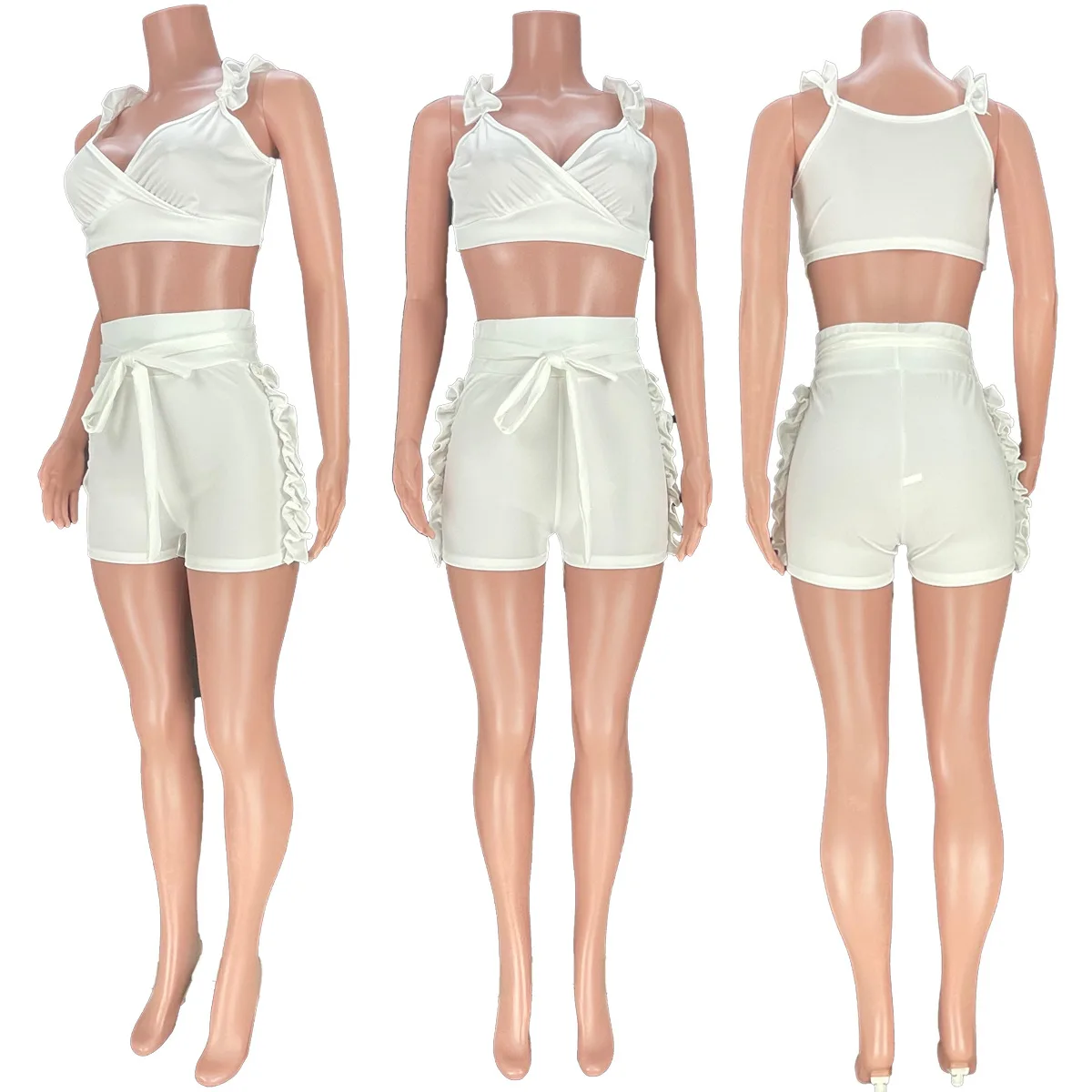 JL5232 HOT Sale Women Tank Tops and Ruffle Shorts set Women Lotus Two Piece Set Women Summer Outfit Clothing