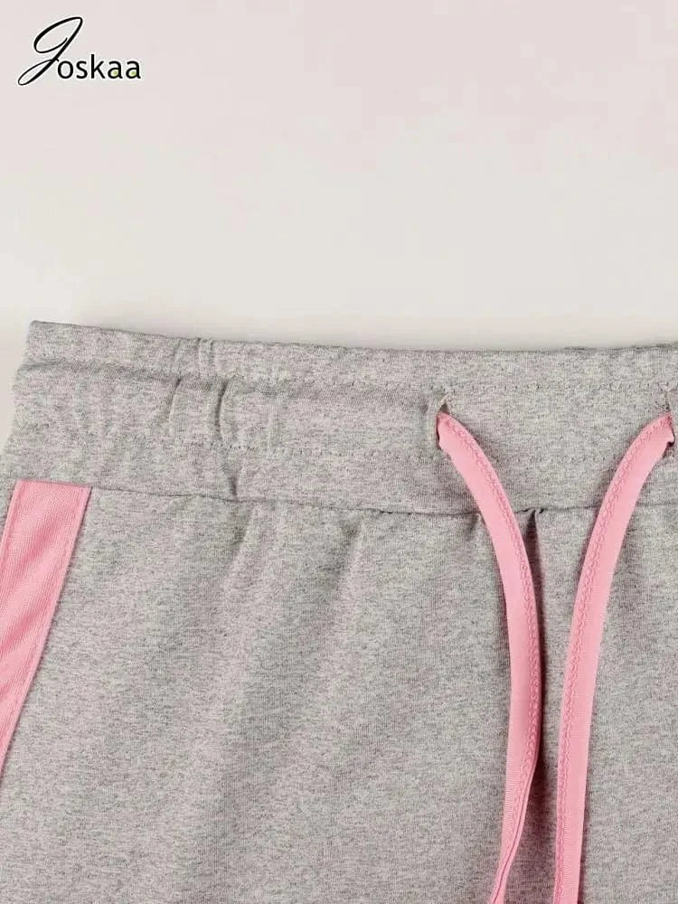 Joskaa 2025 Women's Color Block Sporty Two Piece Set Casual Halter Low-Neck Backless Camisole+Drawstring Skirts Match Tracksuits