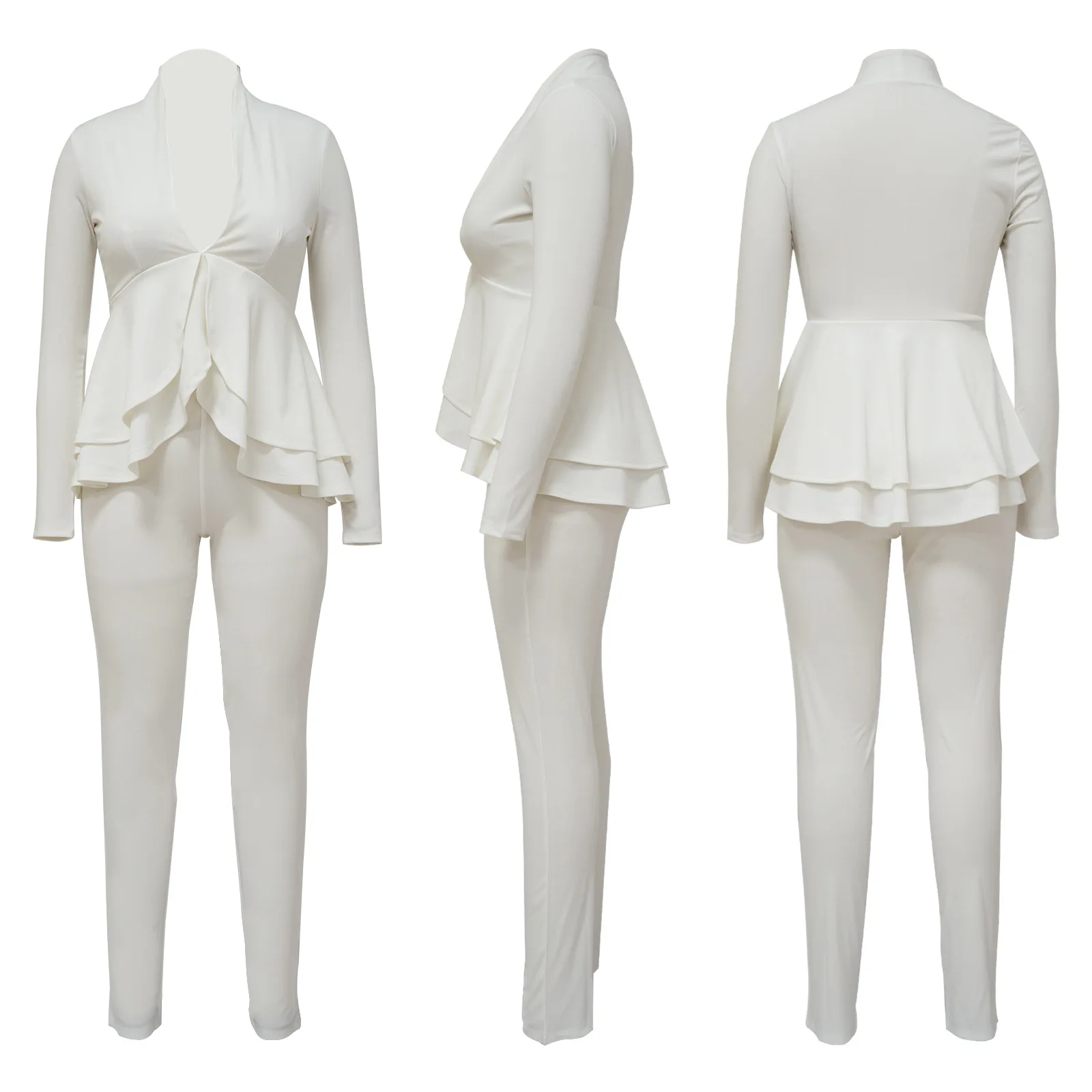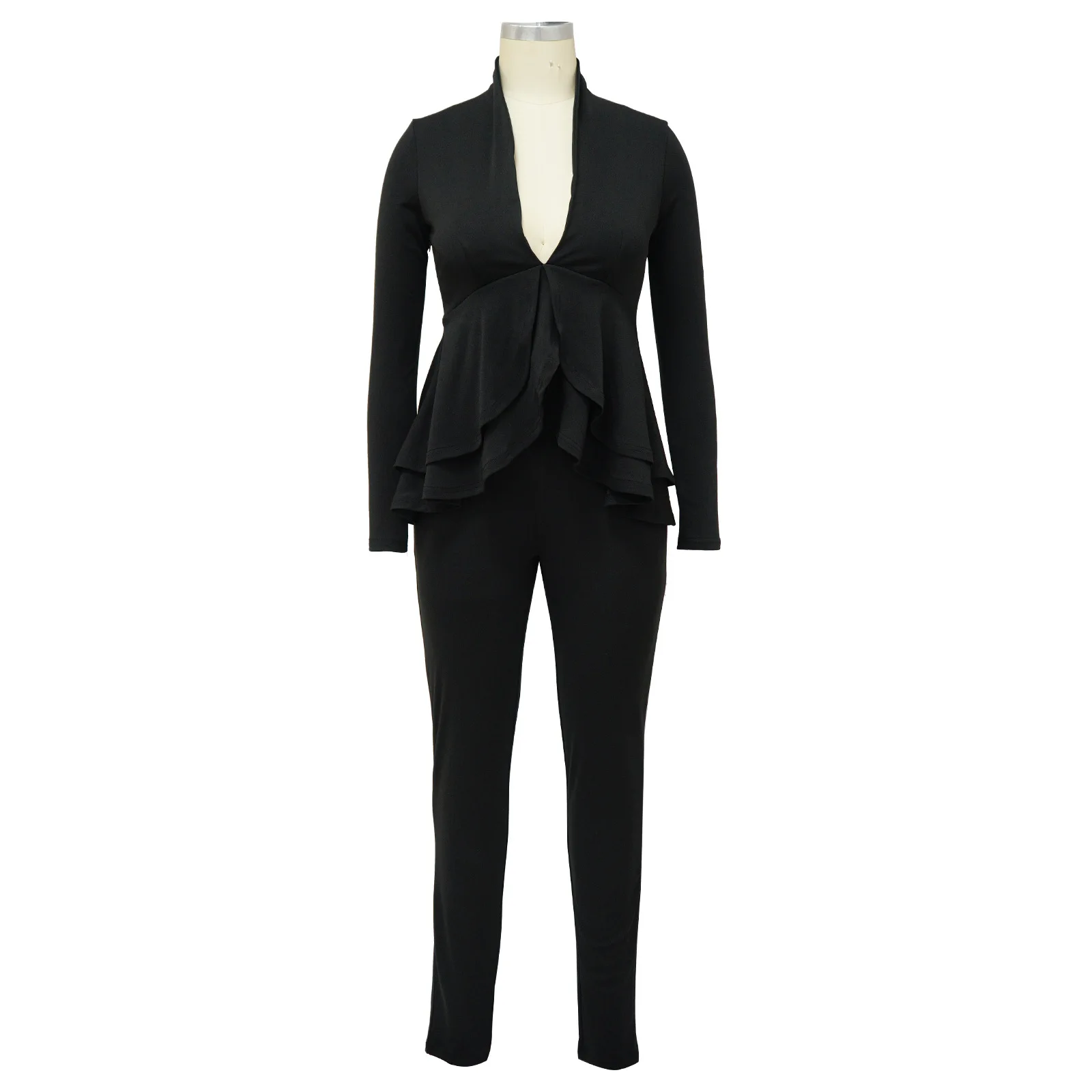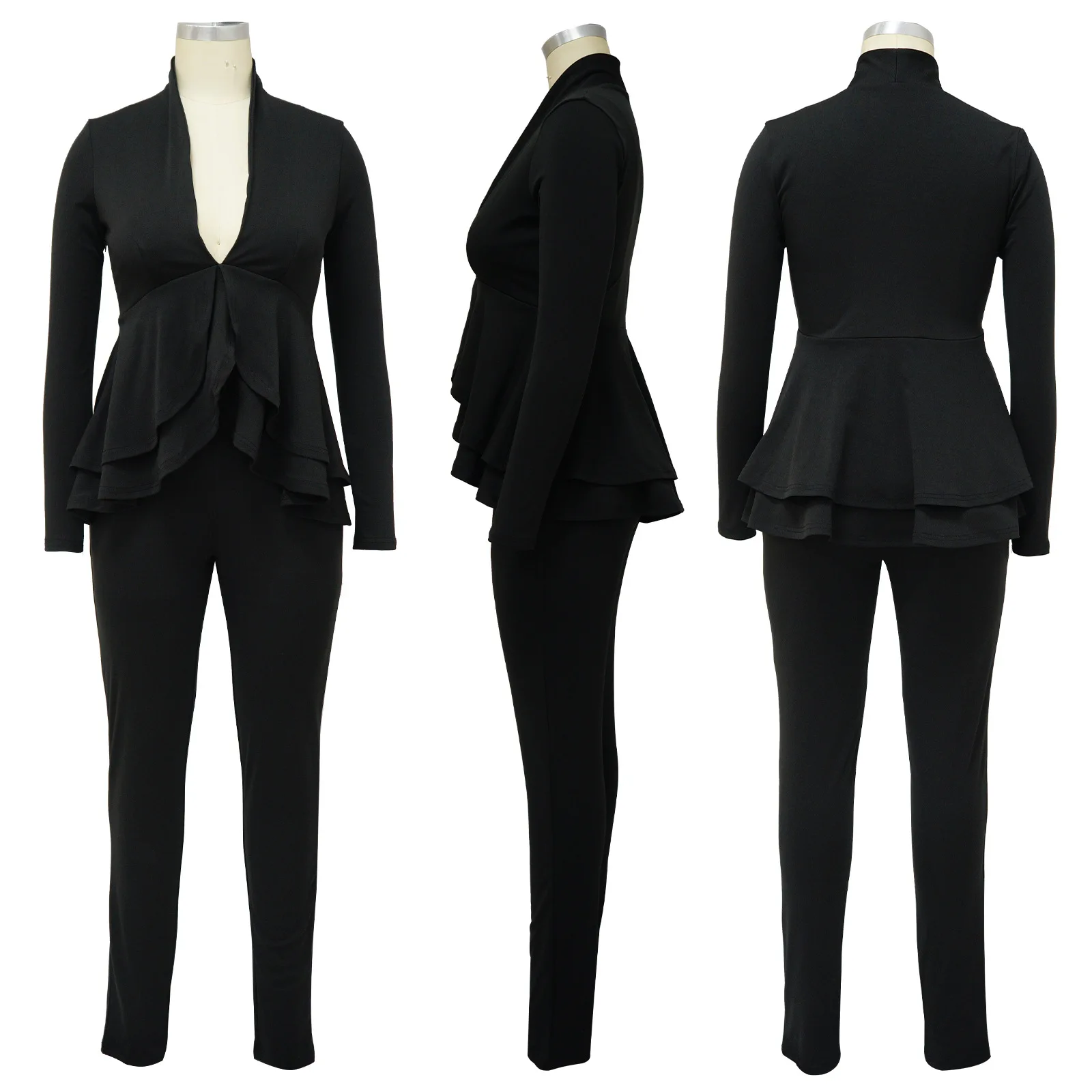 K10303 New Arrivals High Quality Women Ladies Formal Office Wear 2 Piece V Neck Shirt And Pants Set Clothing For Office Lady