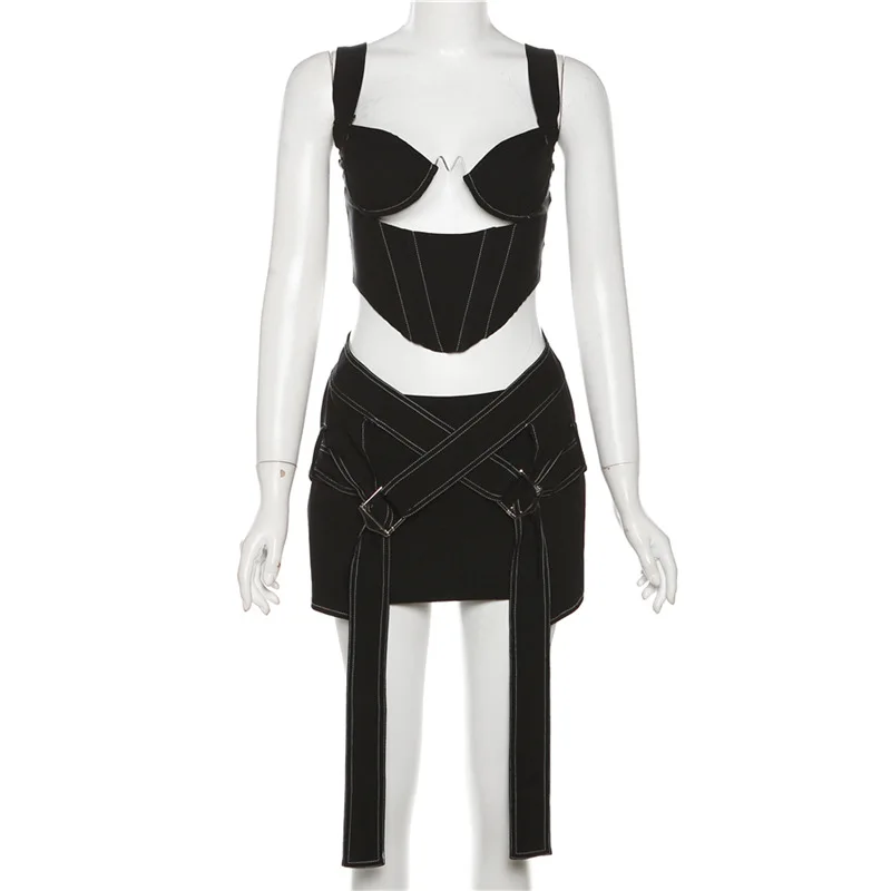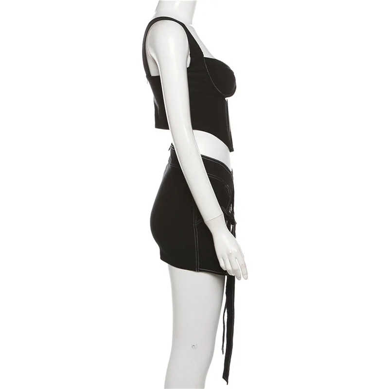 K23s38240 New 2024 Spring Patchwork Sleeveless Cami Crop Top And Short Skirt 2 Piece Set Solid Bodycon Sexy Women's Set