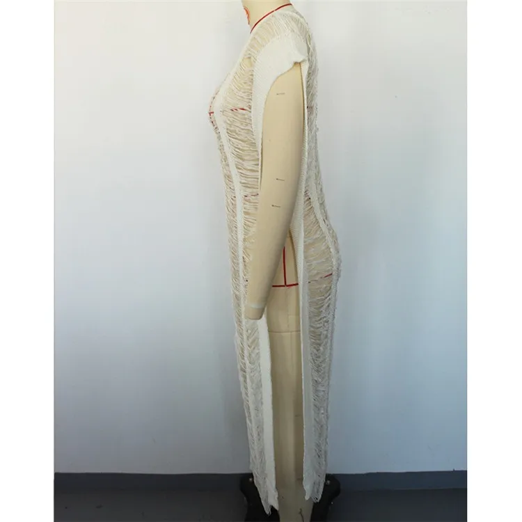 Knitted Beach Cover Up Crochet Pareo Bikini Cover Up Bathing Suit Cover Ups Tassel Long Beach Dress