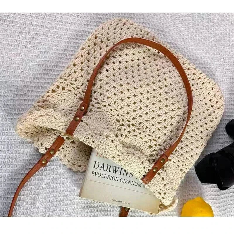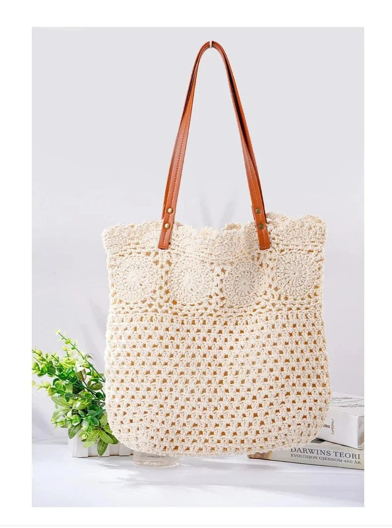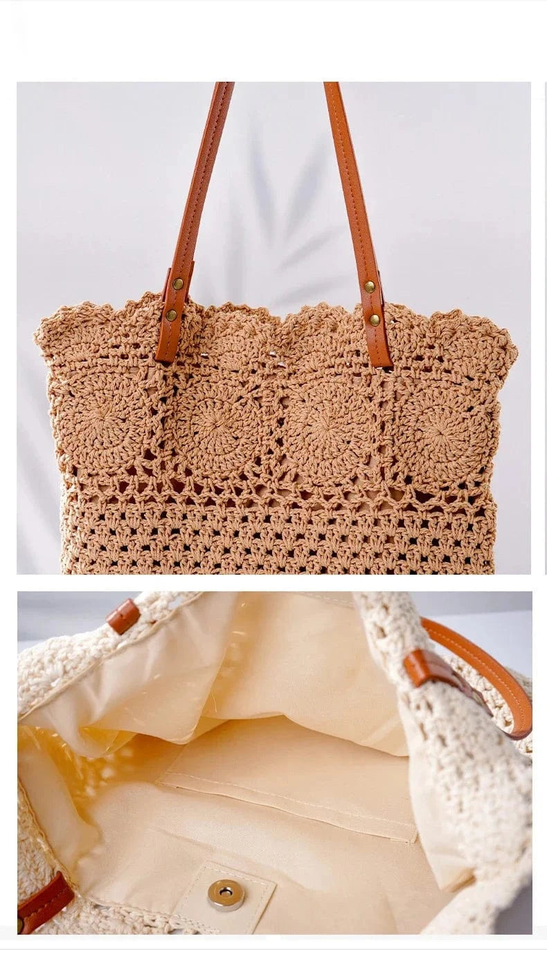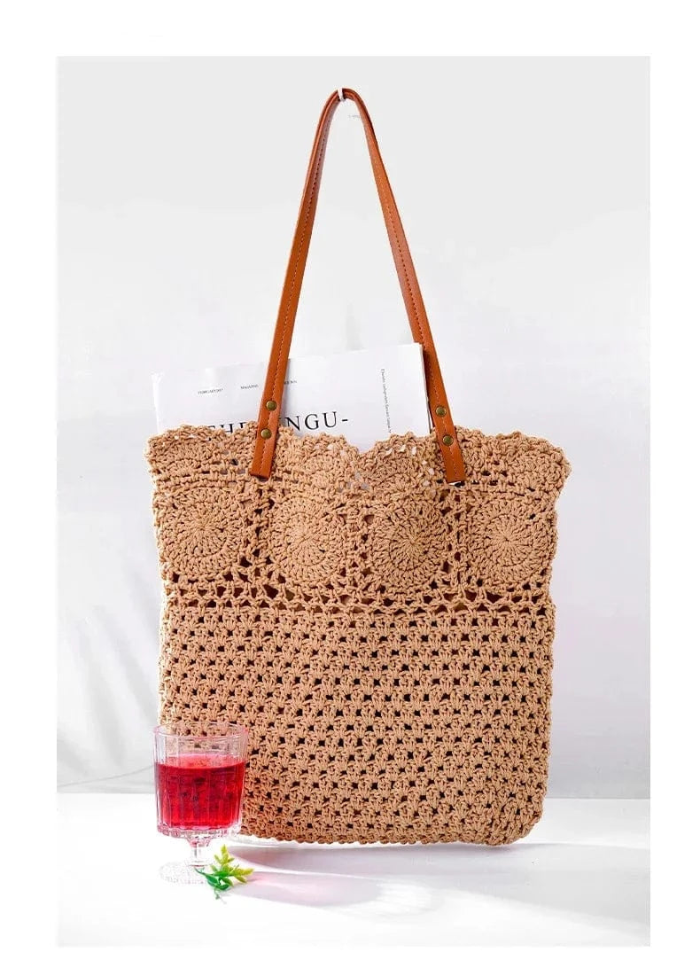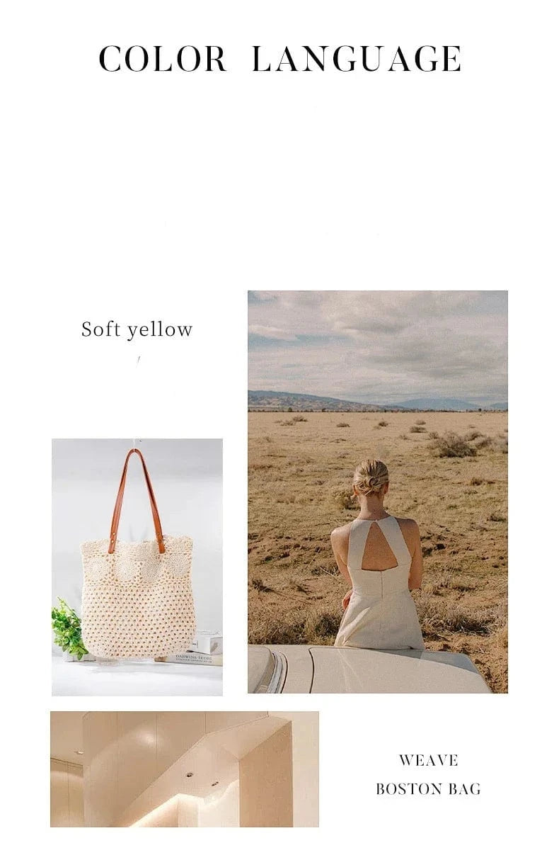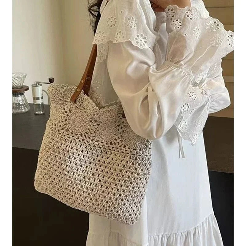 Ladies Beach Leisure Shoulder Bags Women's Summer Artistic Weaving Crochet Tote Handbags Female Retro Hollow Solid Crossbody Bag