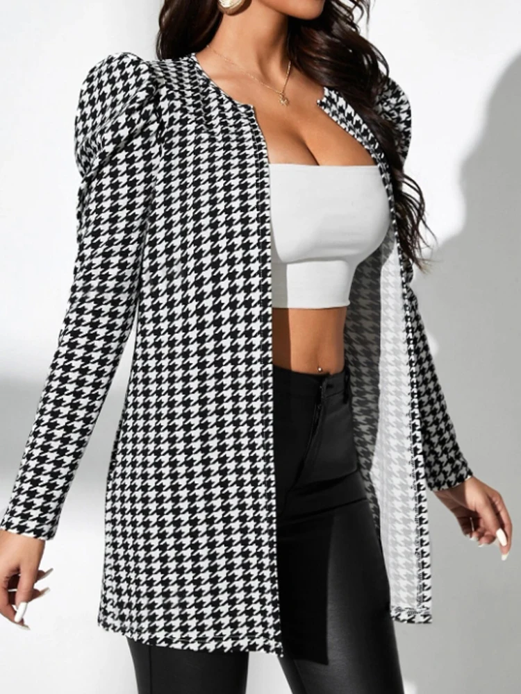 Ladies Plaid Print Long Sleeve Open Cardigan Elegant Spring Autumn Jacket Outerwear Fashionable Stylish Casual