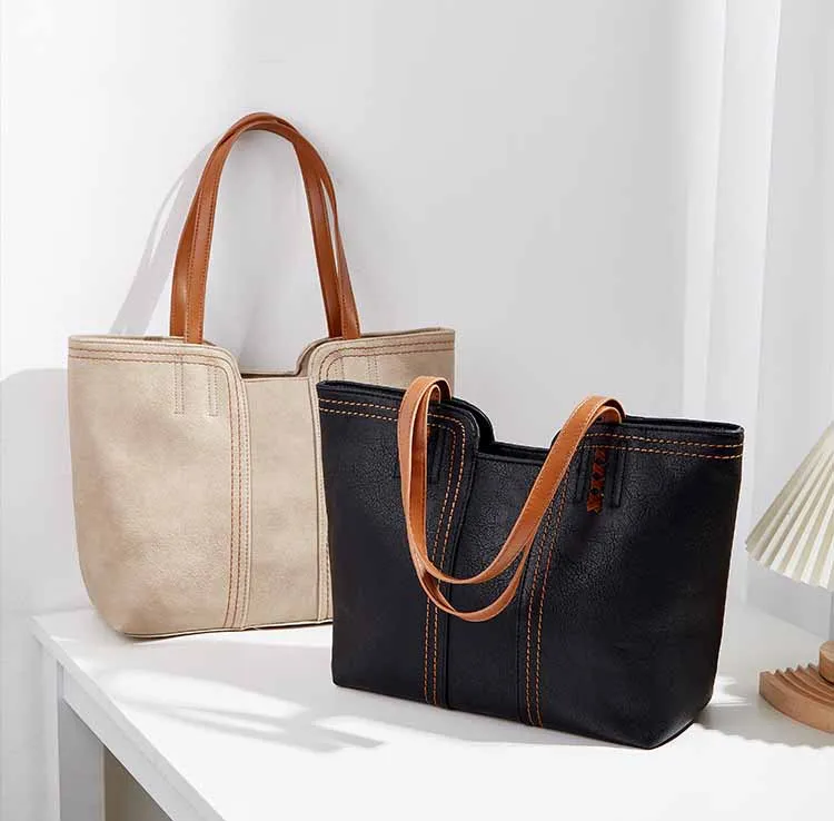 Large capacity vegan leather ladies handbags custom logo luxury designer women tote bags