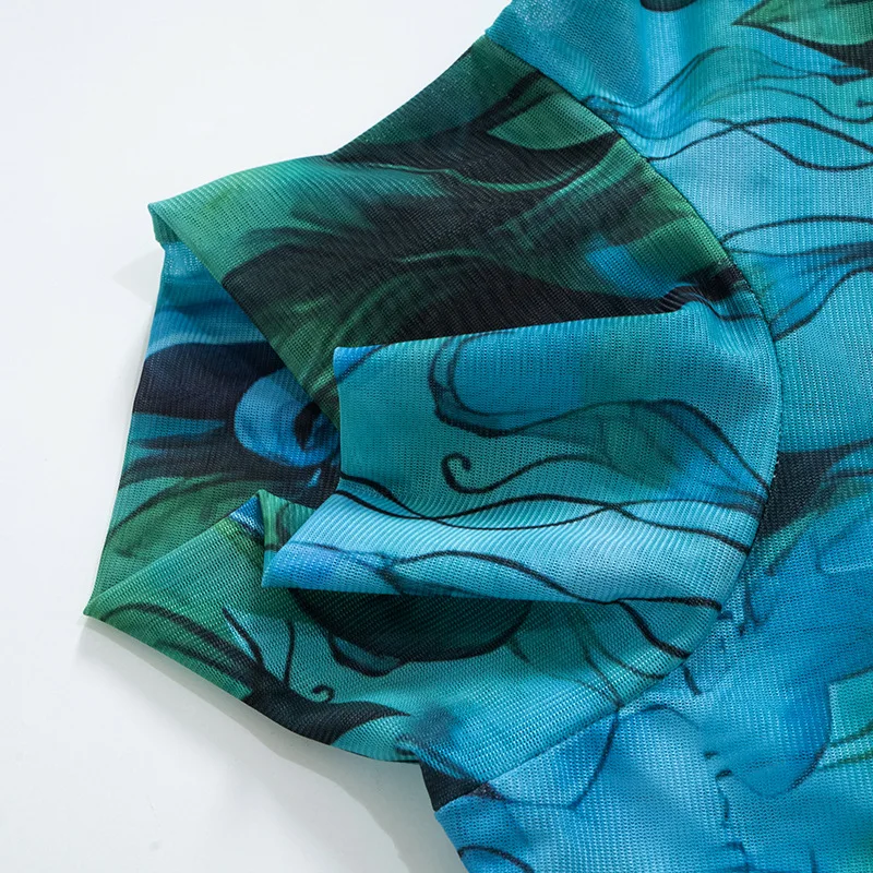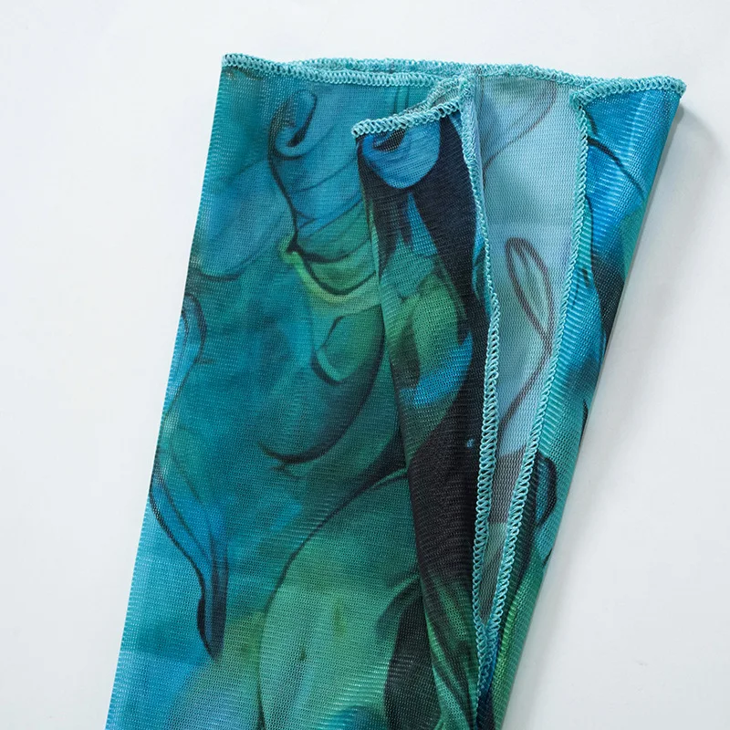 Liu Ming Fall New Arrivals Women Casual Graffiti Printed Party Mesh Sheer Bodycon Mini Dress