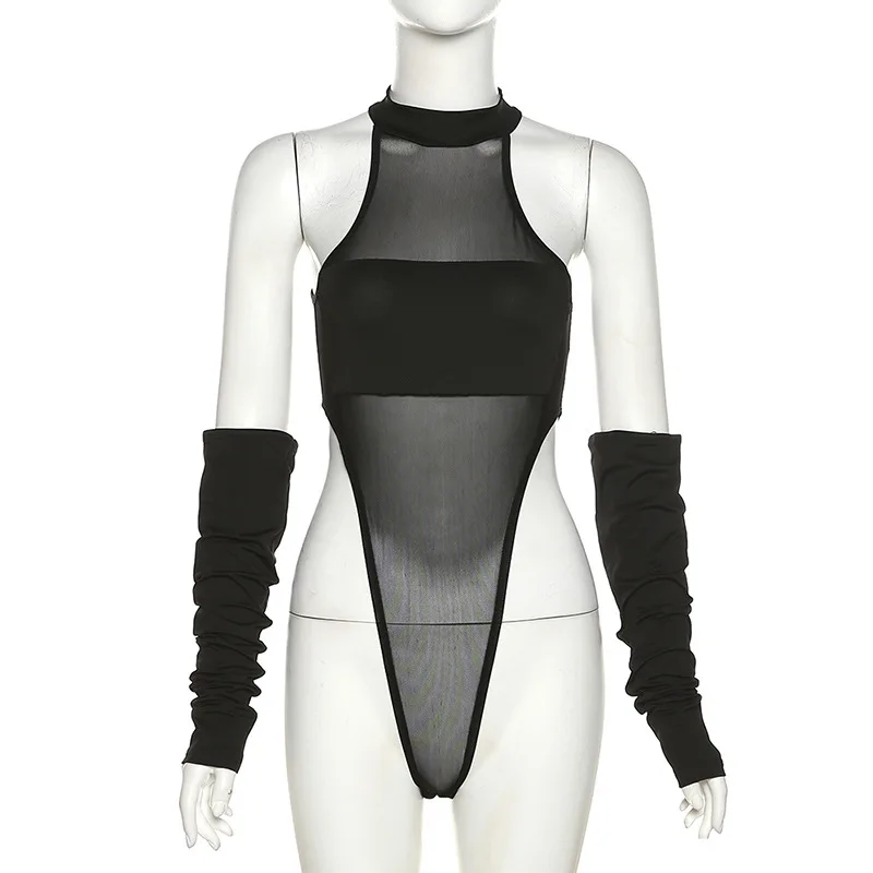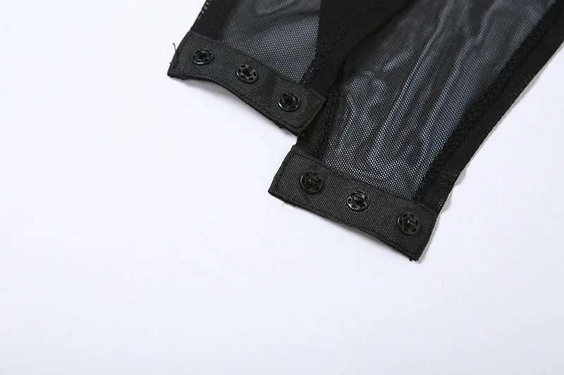 Liu Ming Fall New Style Women Sexy Mesh See Through Thong Bodysuits Romper Jumpsuit