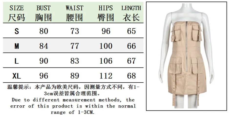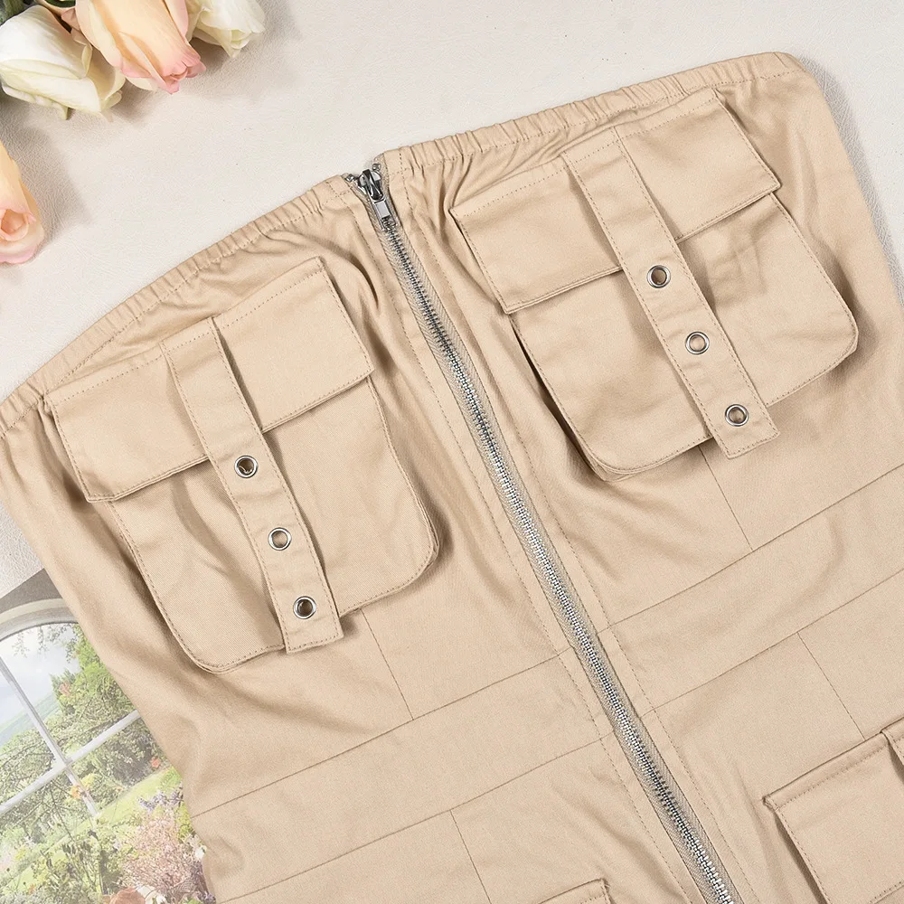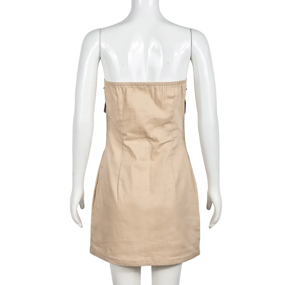 Liu Ming Y2k Fashion New Arrivals 2024 Women Clothing Strapless Casual Multi Pocket Backless Zipper Slim Mini Dresses