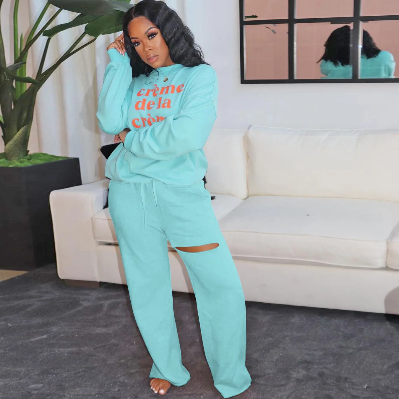 Long Sleeve Fall Winter Loose Sweatshirt Suit Jogger Sweatsuit Outfits For Women Clothing Casual Two Piece Pants Set Tracksuit