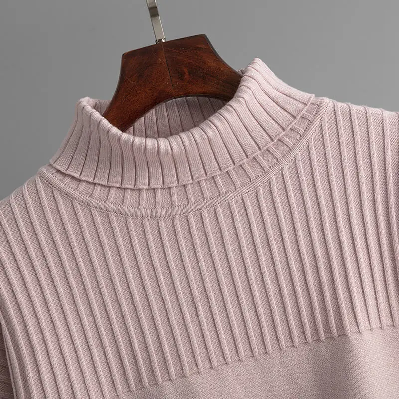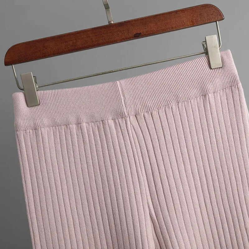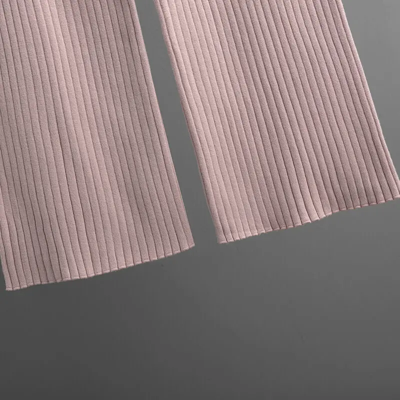 Loose Long Sleeve High Neck Top Wide Leg Pants Ladies Clothing Two Piece Knit Sweater Set