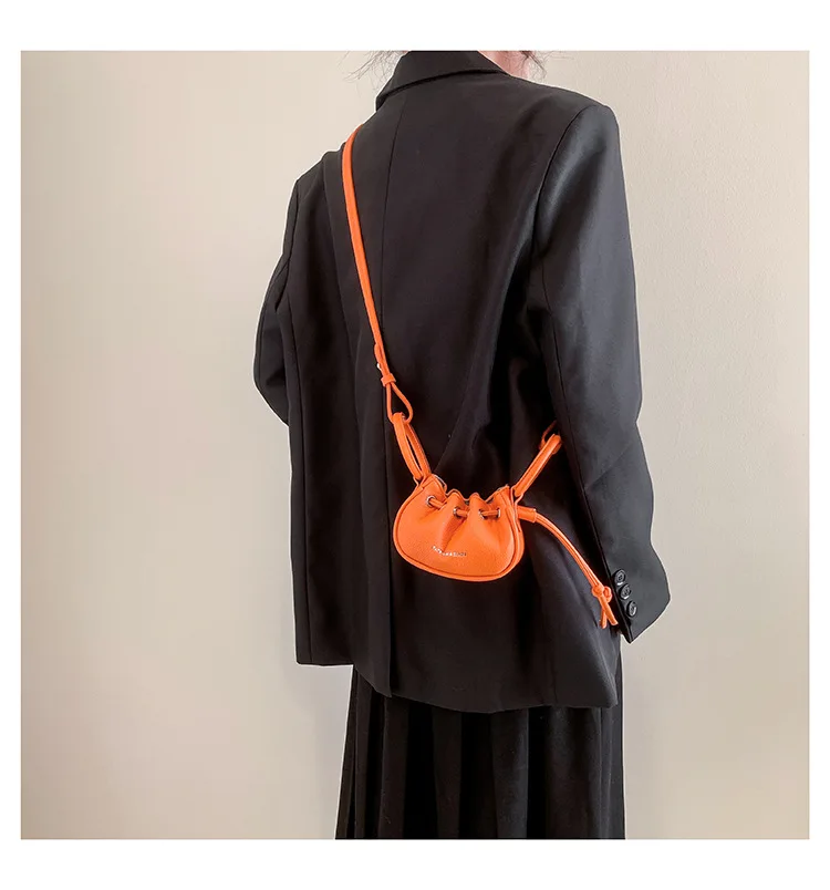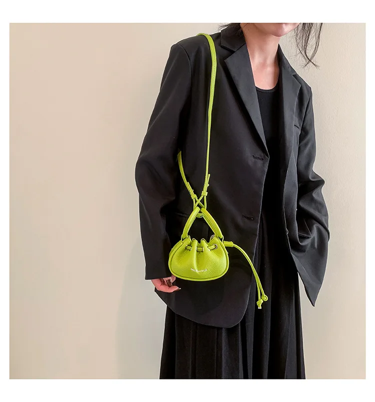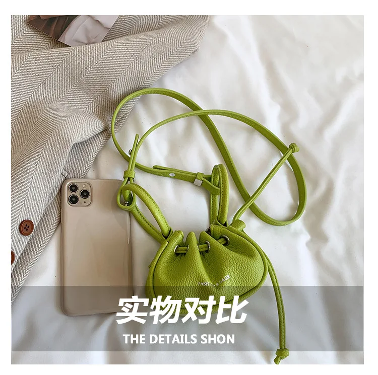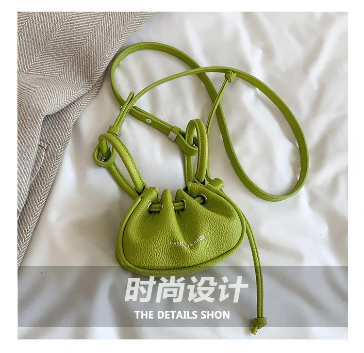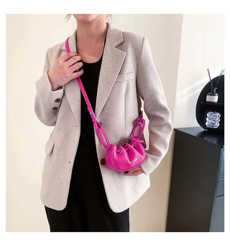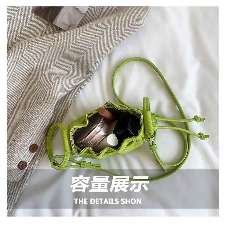 Mini Ruched Drawstring Handbag Girls Shoulder Bag Soft Leather Crossbody Bag Top Handle Small Pouch Lipstick Keys Bags