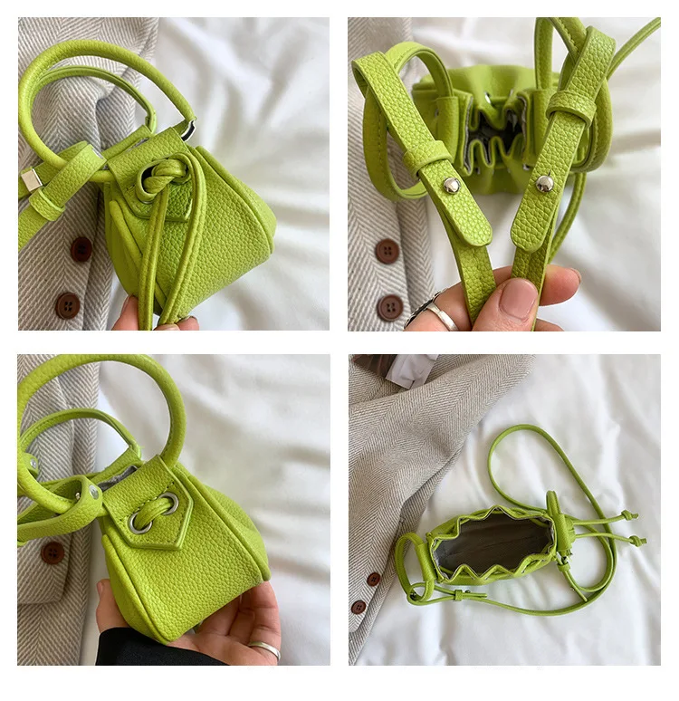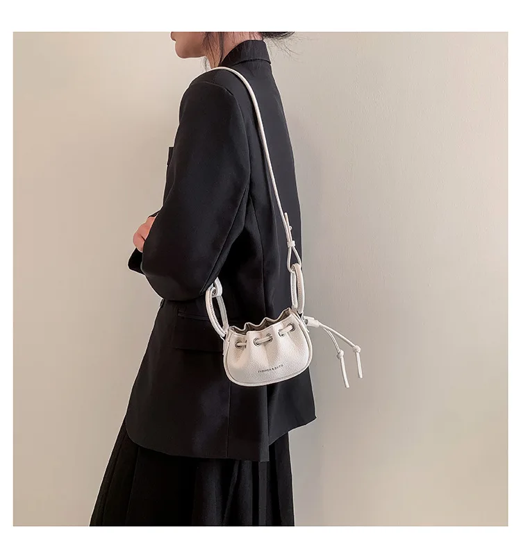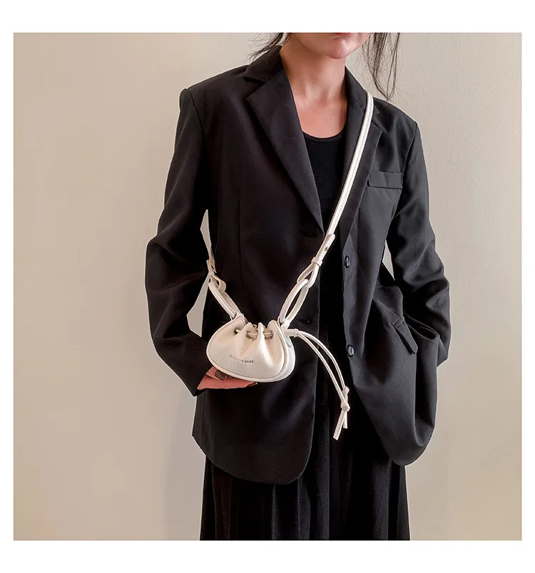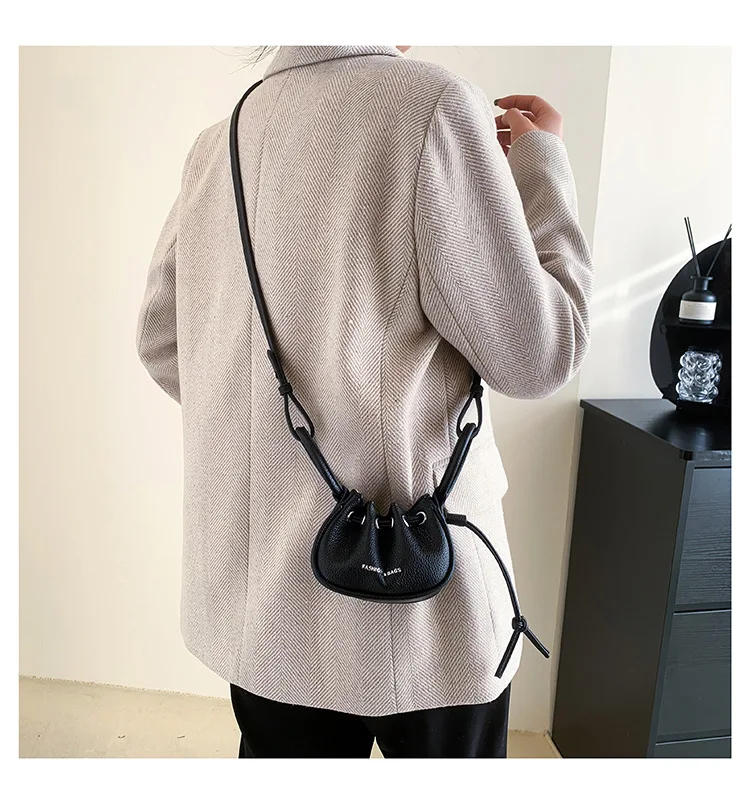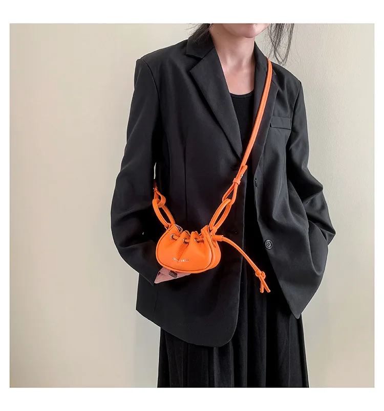 Mini Ruched Drawstring Handbag Girls Shoulder Bag Soft Leather Crossbody Bag Top Handle Small Pouch Lipstick Keys Bags
