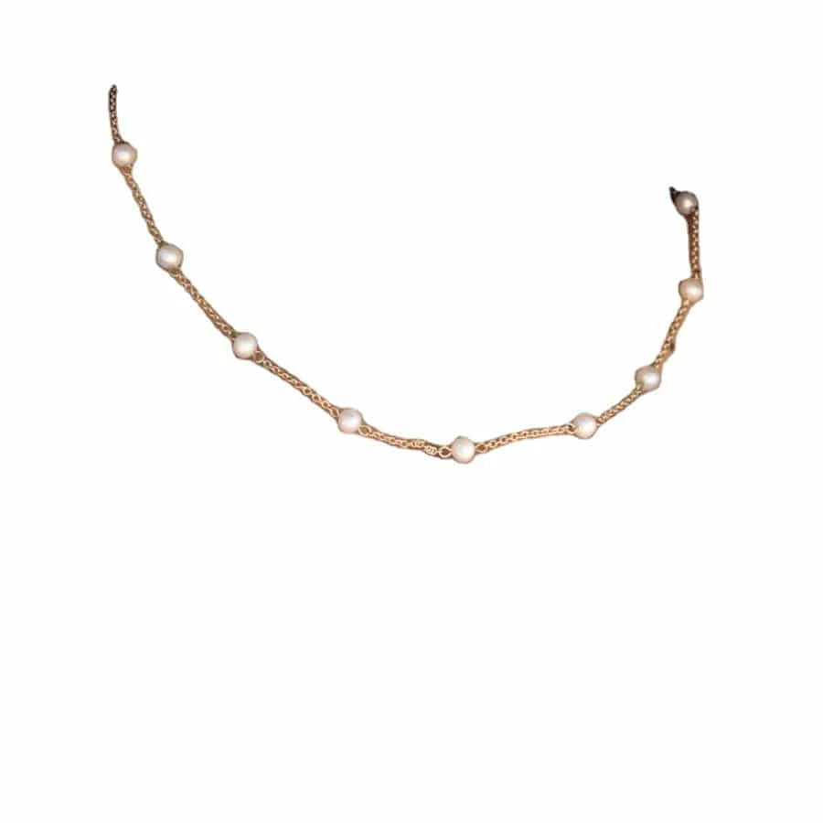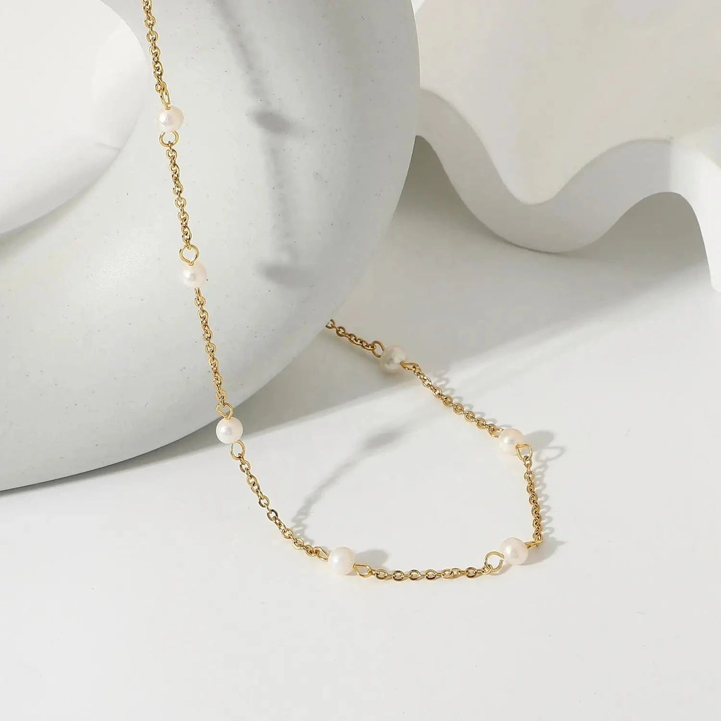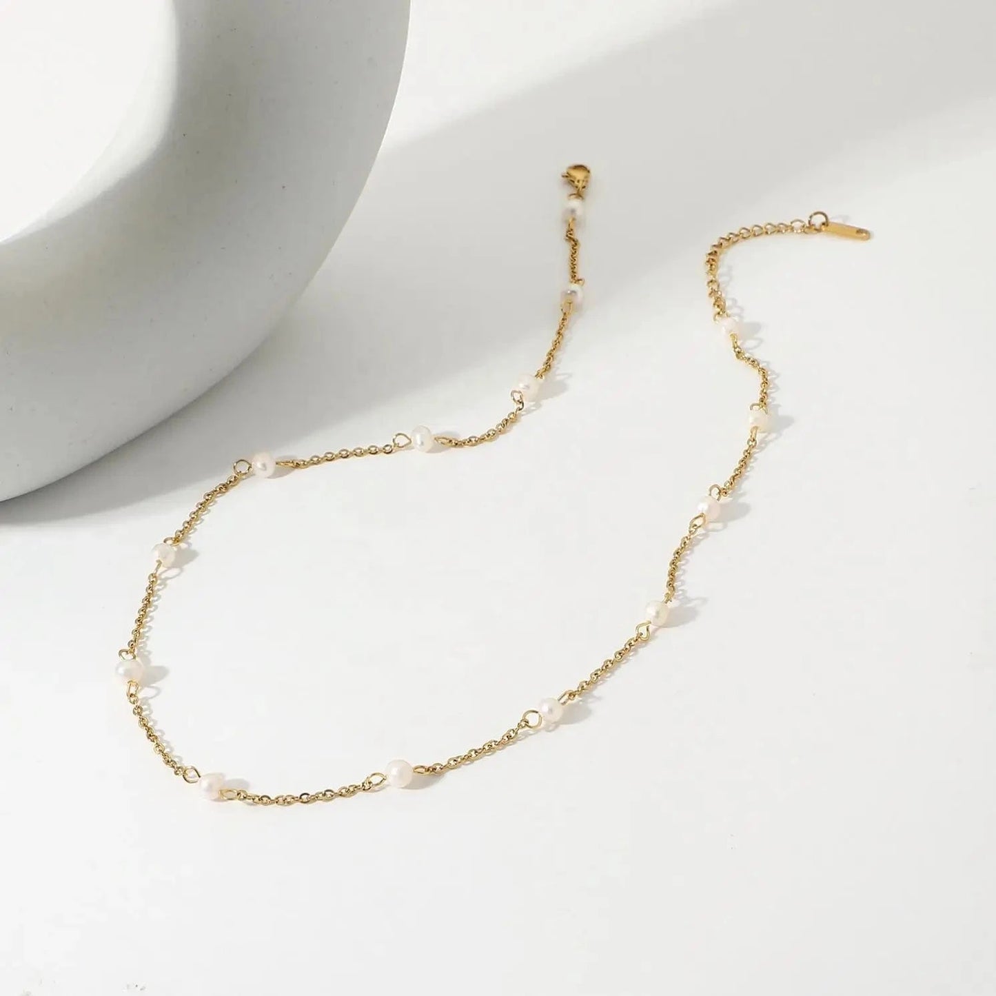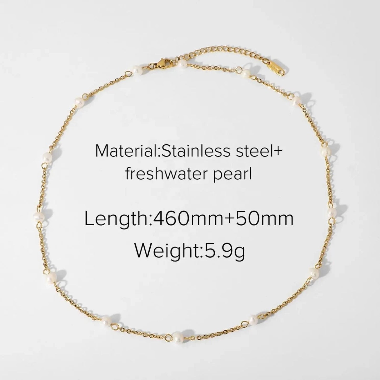 N2507 New Arrival 18K Gold Plated Pearl Charms Necklace Stainless Steel Link Chain Small Pearl Necklace