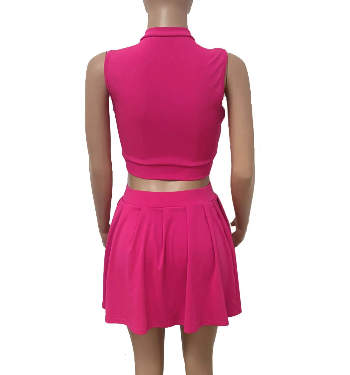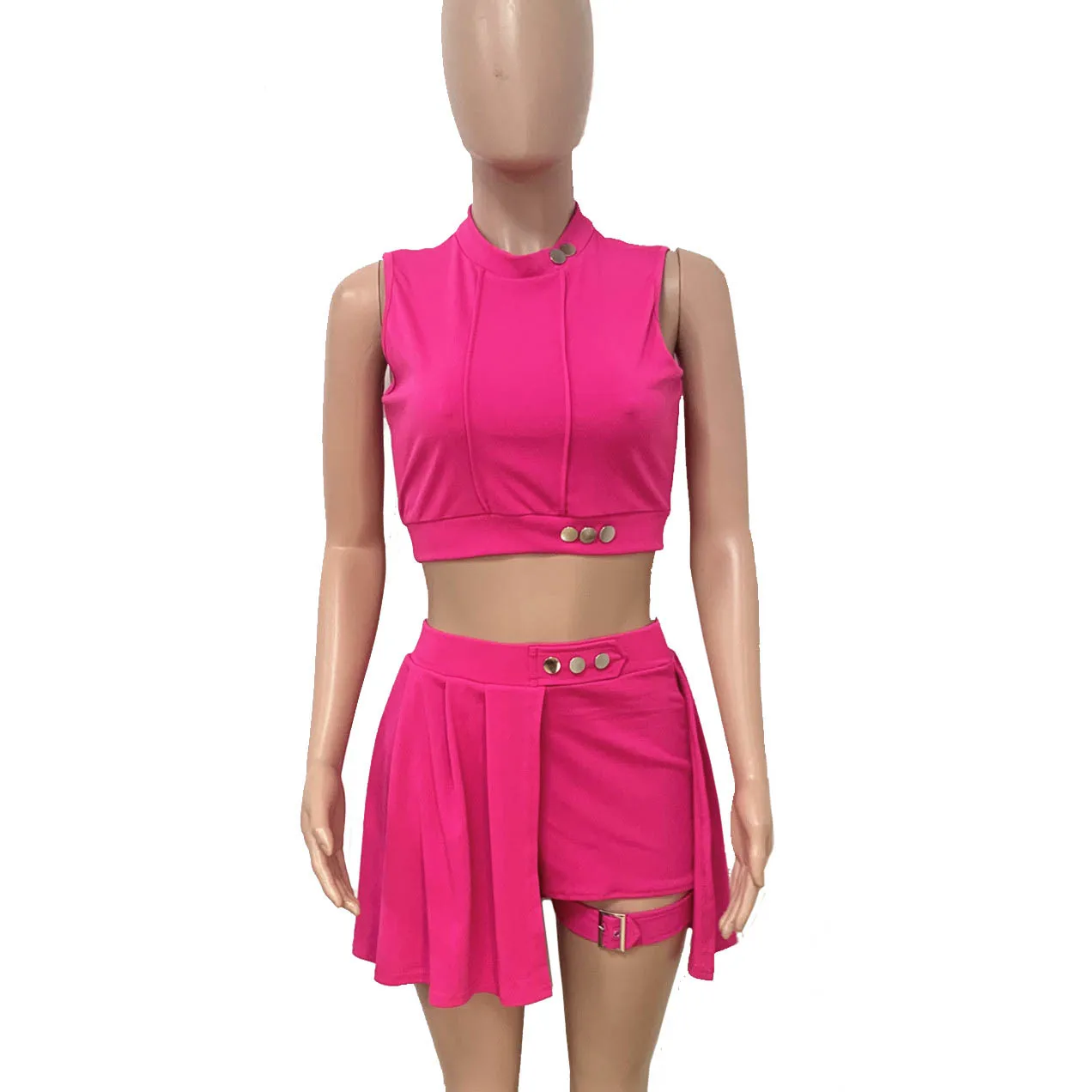 New Arrival Two Piece Skirt Sets Women Clothing Solid Sleeveless 2 Piece Skirt Suit Set for Ladies