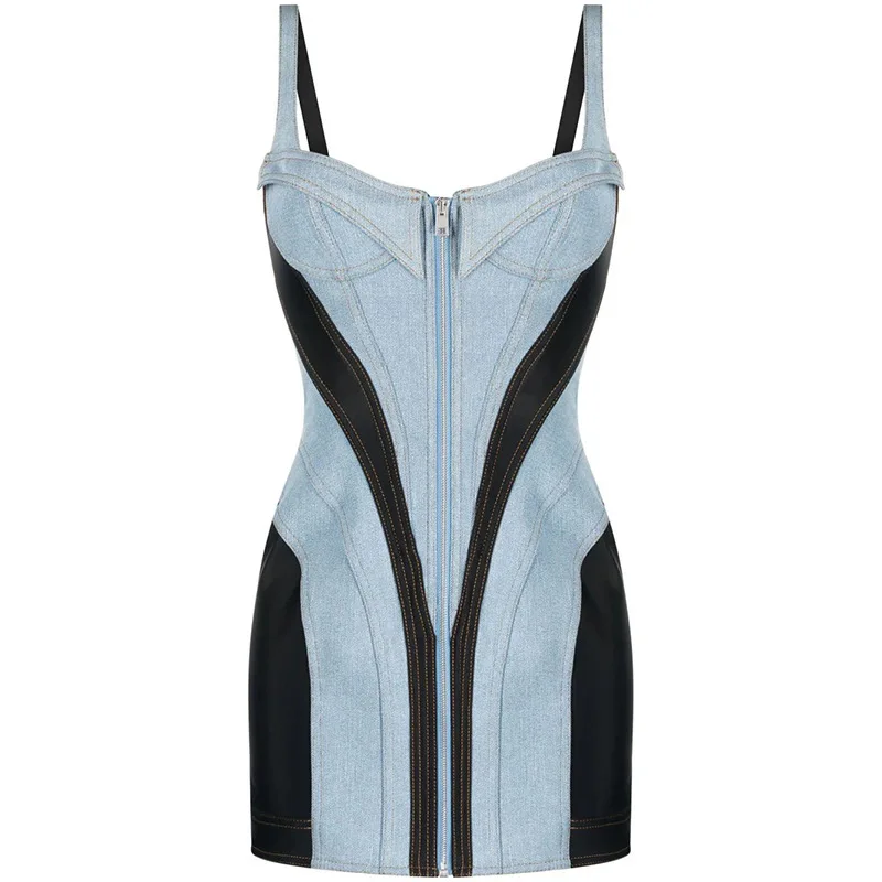 New Arrivals Multi Color Sling Sleeveless Dress Sexy Strapless Mini Dress Patchwork Denim Bodycon Dresses