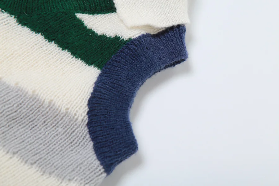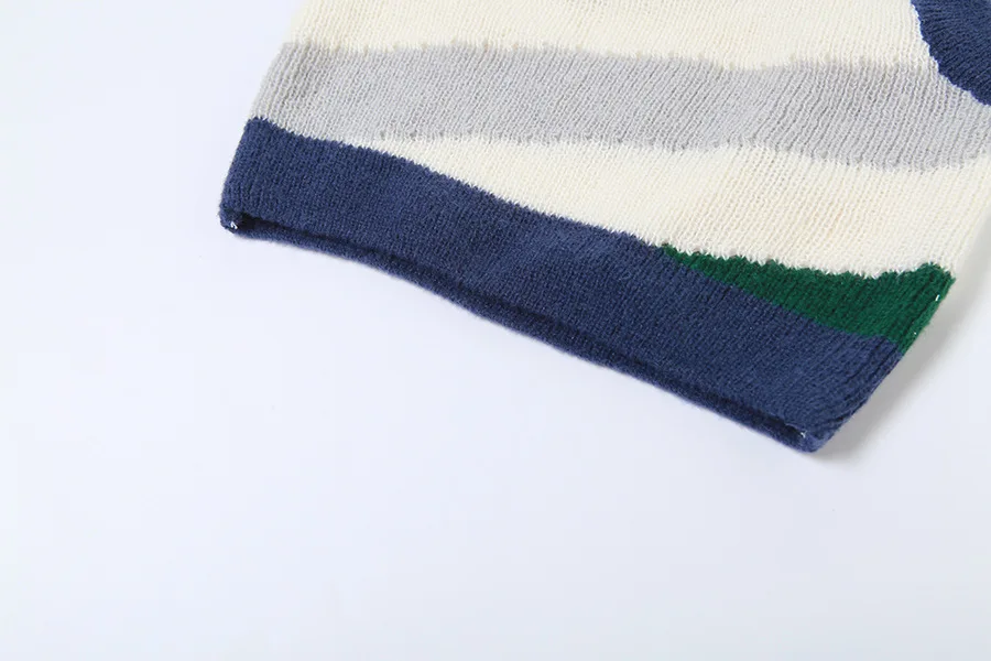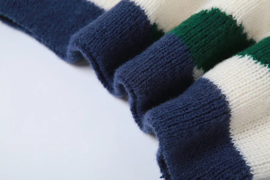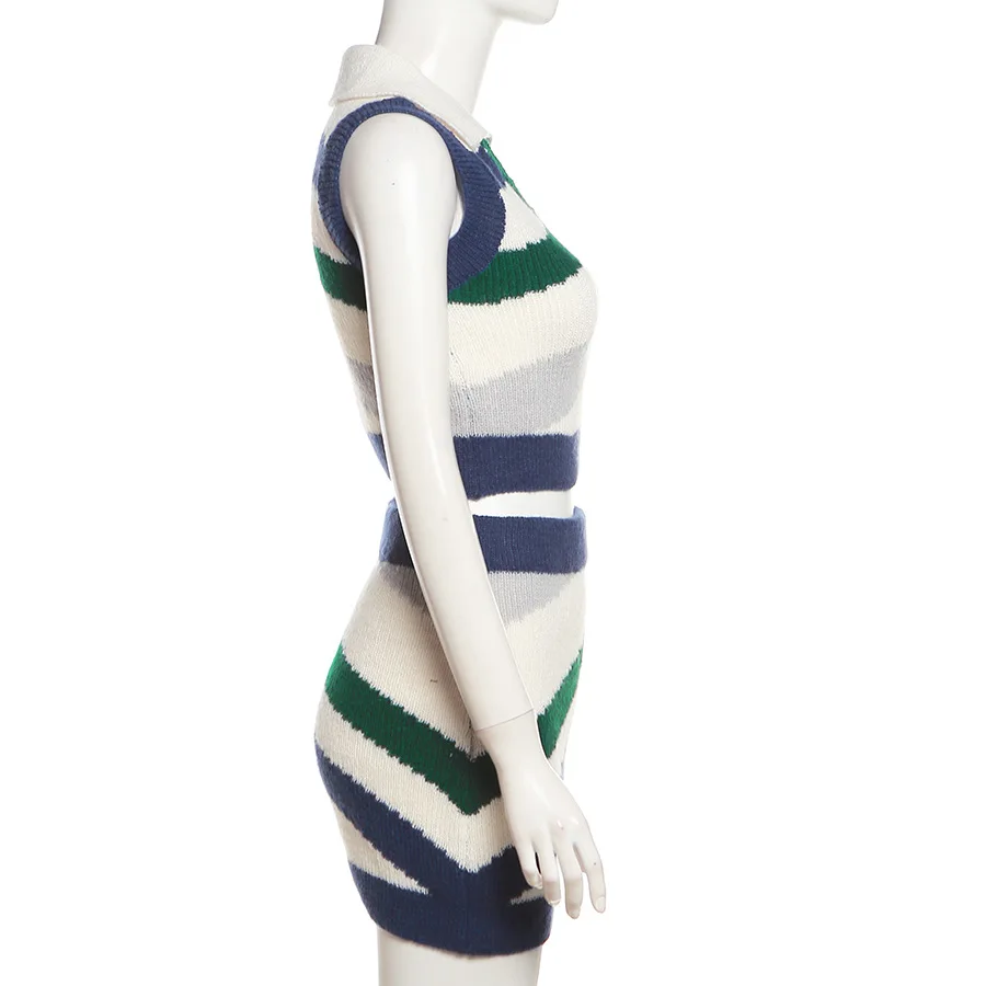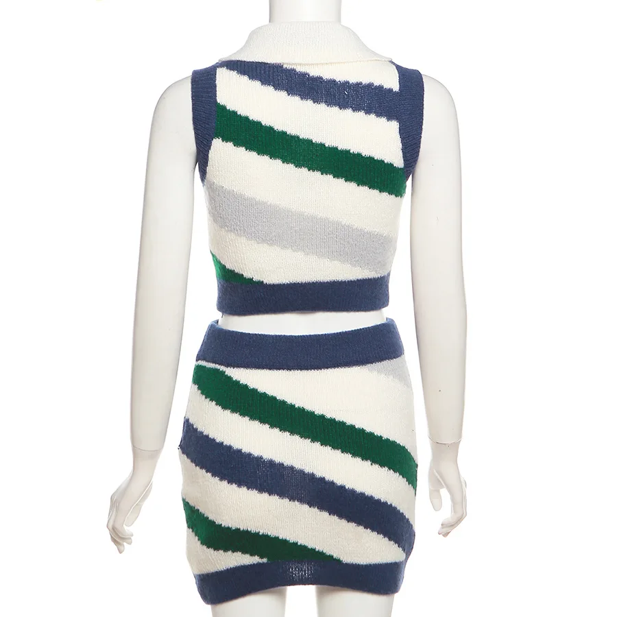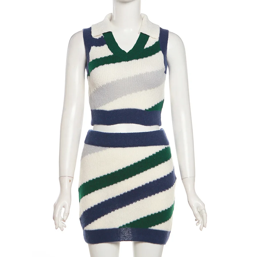 New Arrivals Polo Neck Crop Top And Mini Skirt Winter Women's Clothing Fashion Striped Knitted 2 Piece Skirt Set