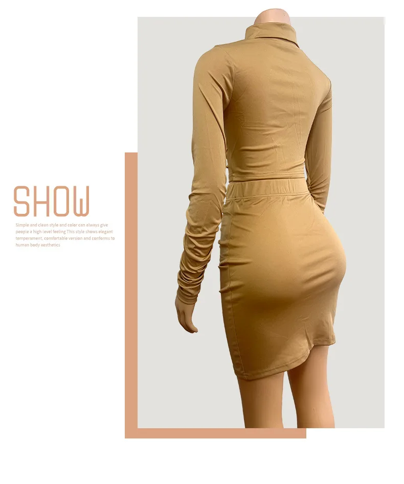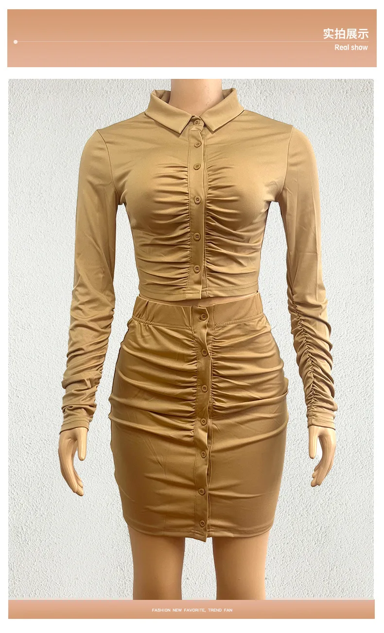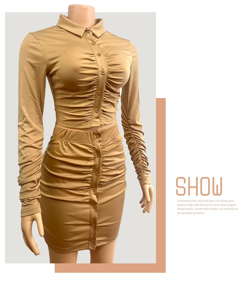 New Arrivals Women's Clothing Long Sleeve Crop Shirt And Bodycon Skirt Set Fashion Sexy Wrinkle Two Piece Set