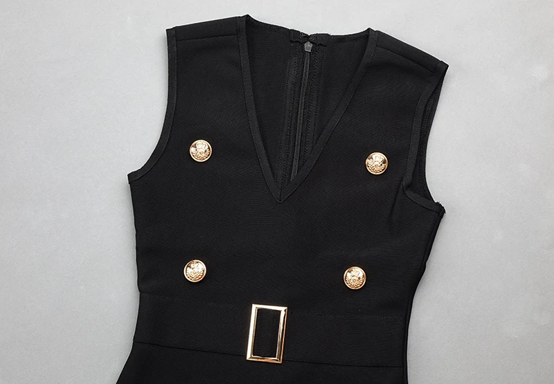 New design sleeveless deep v-neck bodycon bandage dresses with belt sexy ladies evening party black outfits clothing